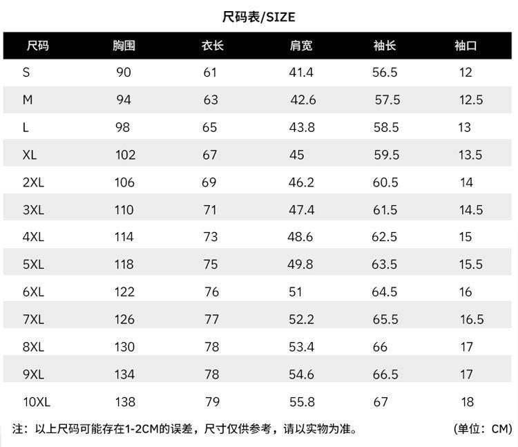 M, L, XL, 2XL, 3XL, 4XL, 5XL