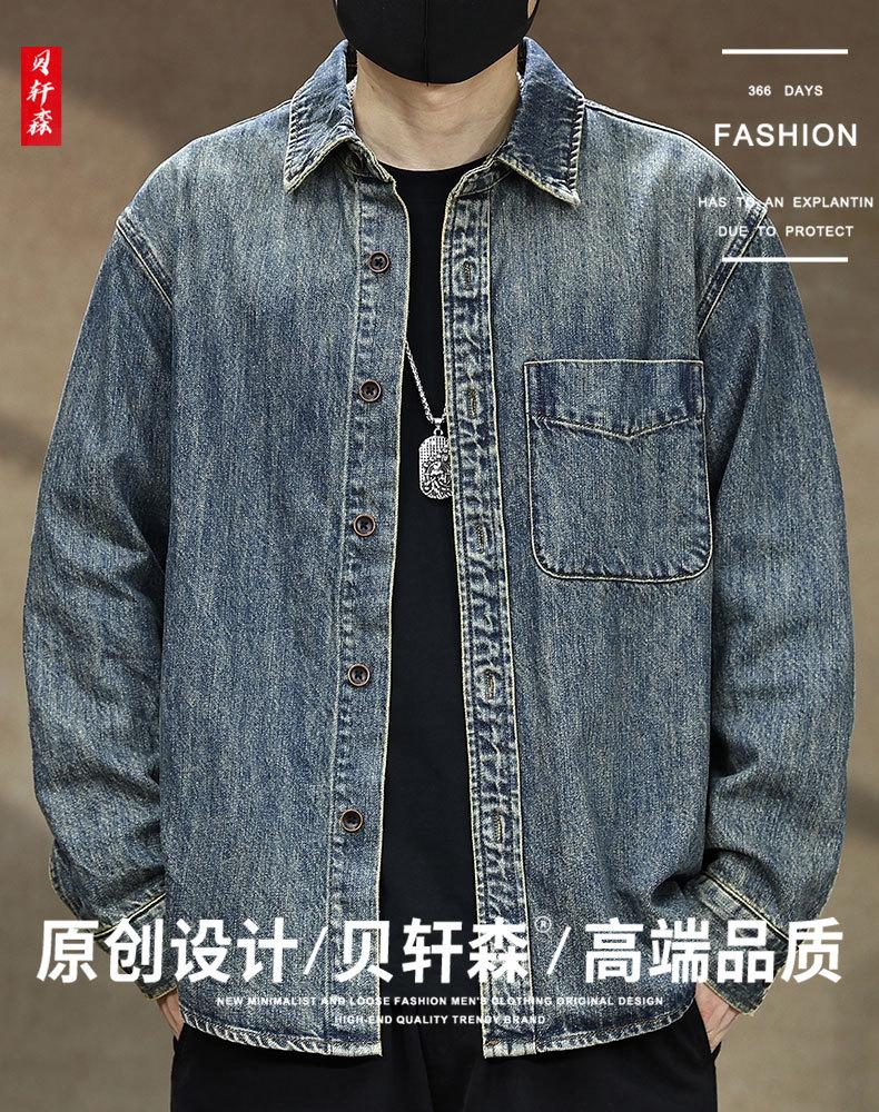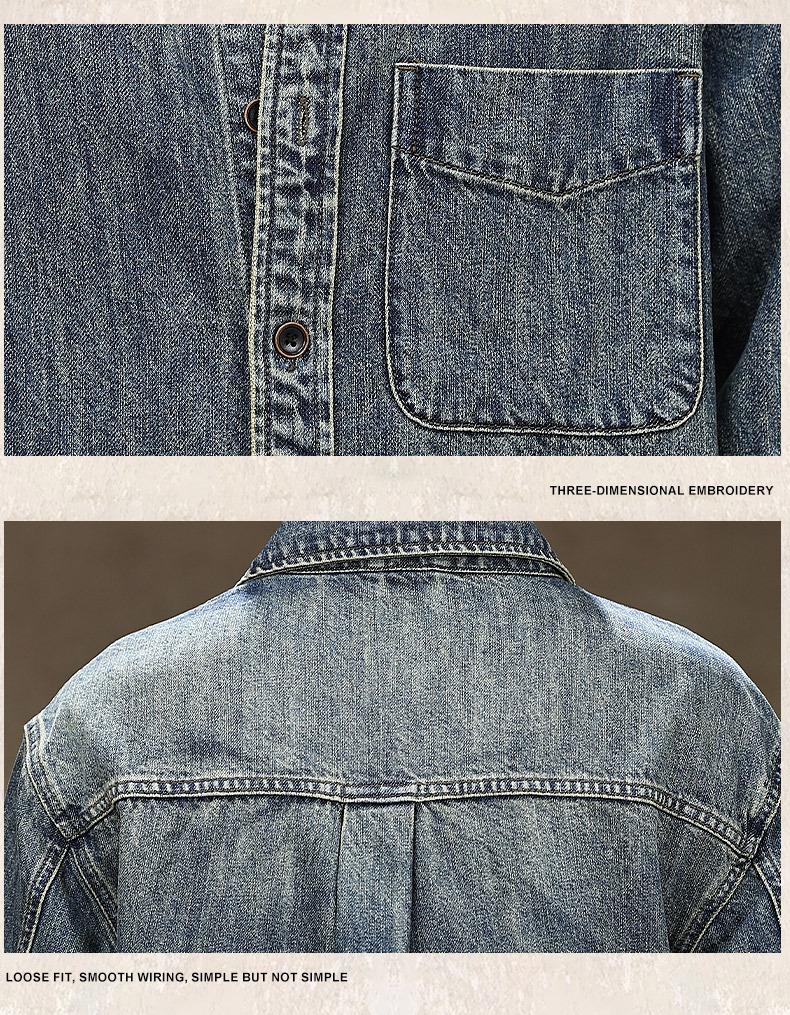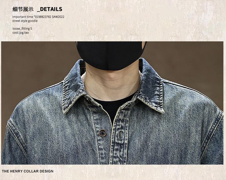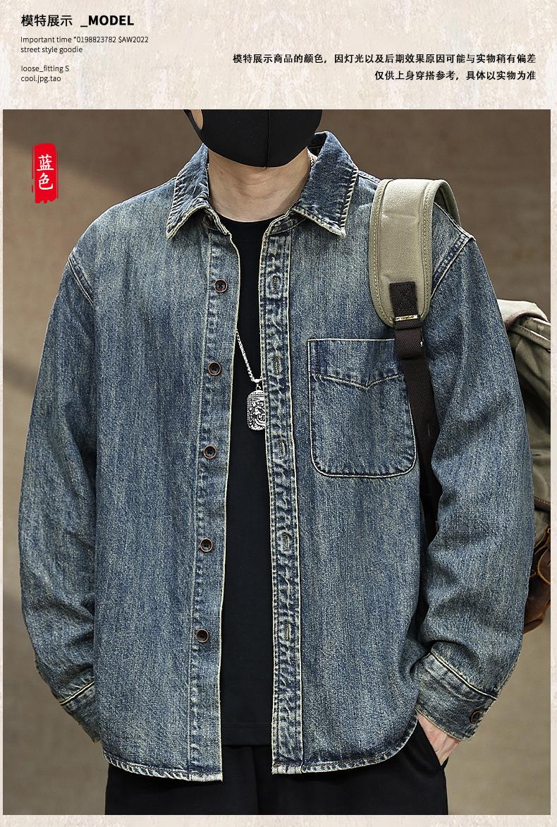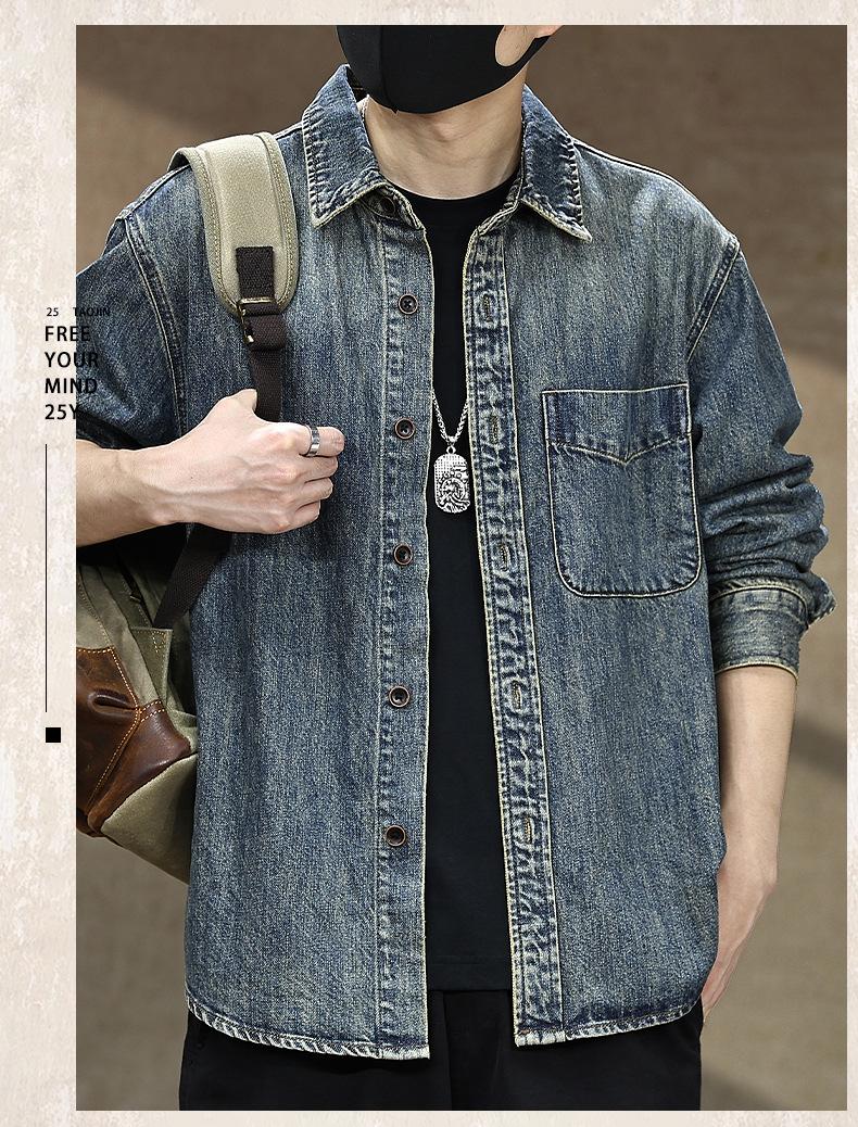 Compra Camisa de mezclilla retro lavada para trabajo americano para hombre, top de manga larga para primavera y otoño, chaqueta holgada de marca moderna para hombre al por mayor en Joom.pro