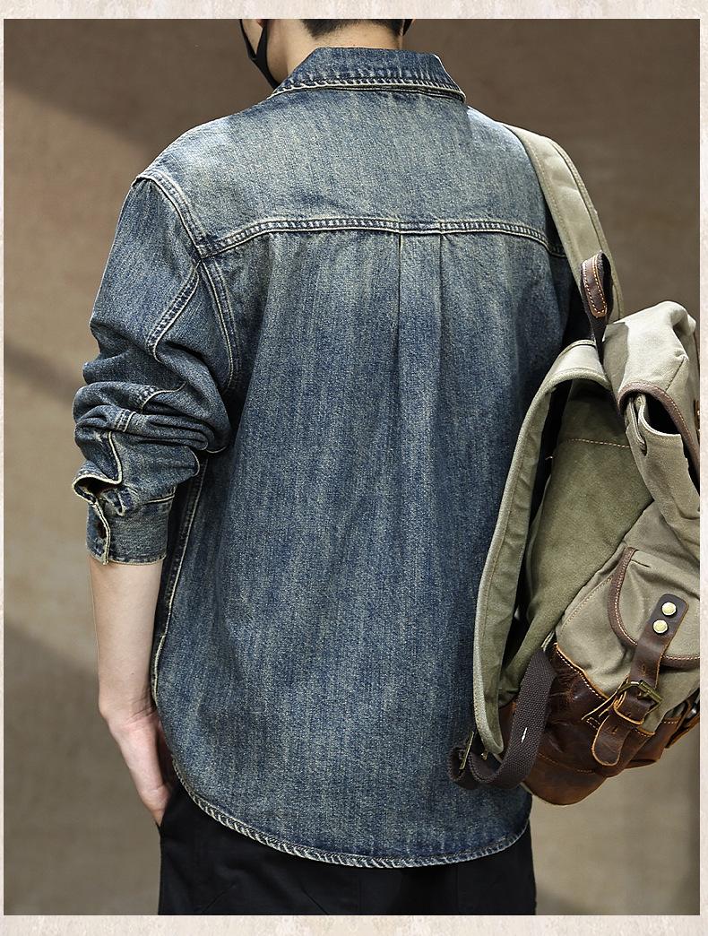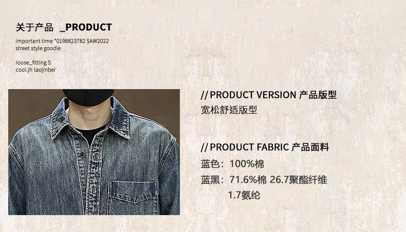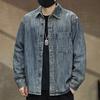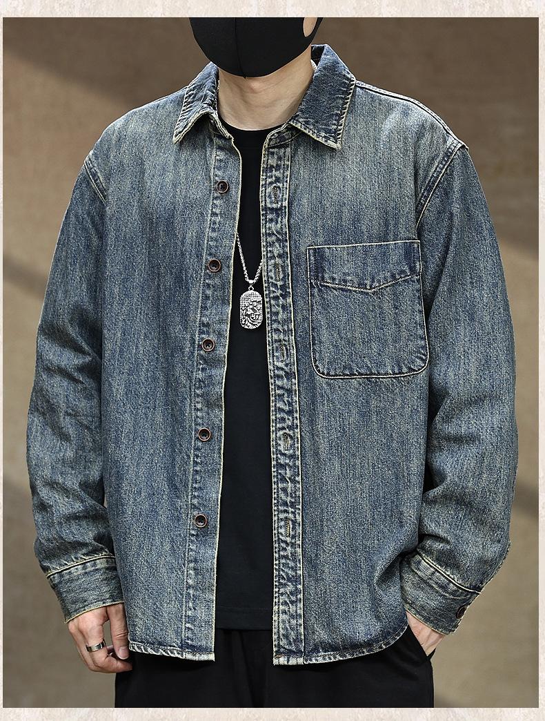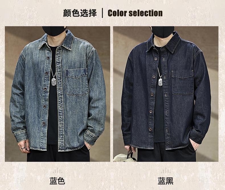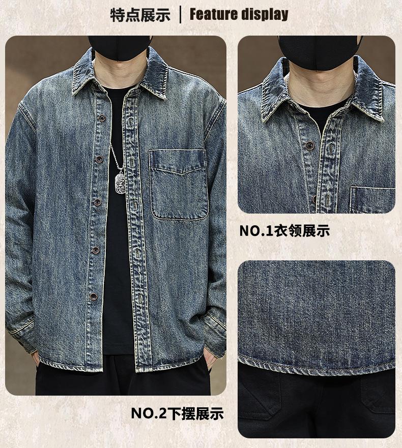 Compra Camisa de mezclilla retro lavada para trabajo americano para hombre, top de manga larga para primavera y otoño, chaqueta holgada de marca moderna para hombre al por mayor en Joom.pro