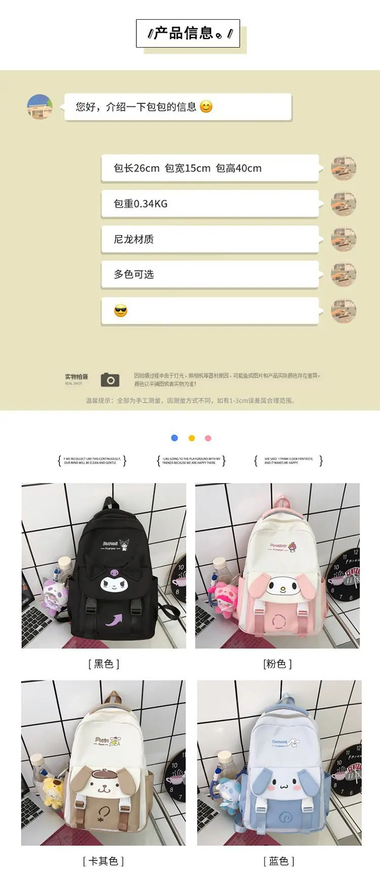 Mochila infantil de dibujos animados Sanrio, mochila para estudiantes de secundaria y preparatoria, mochila de gran capacidad, bolsa para computadora, bolsa de viaje