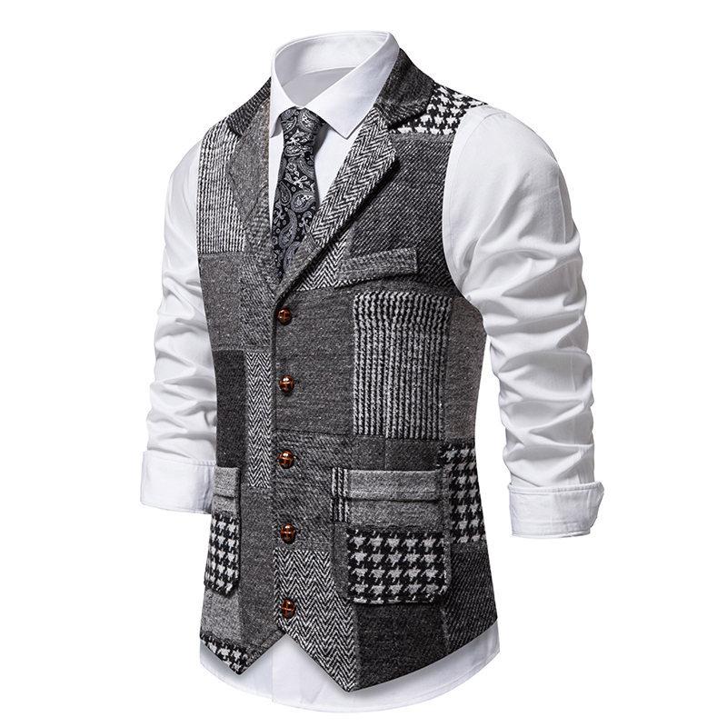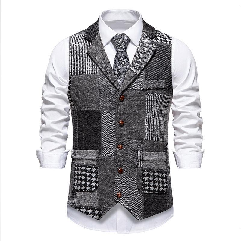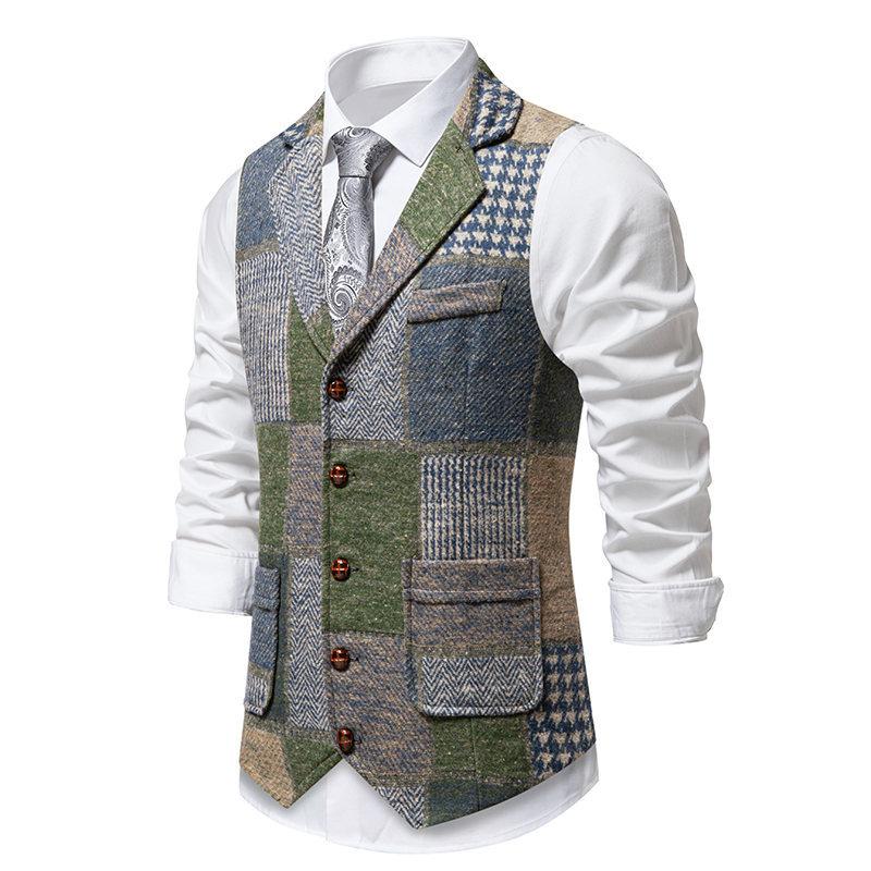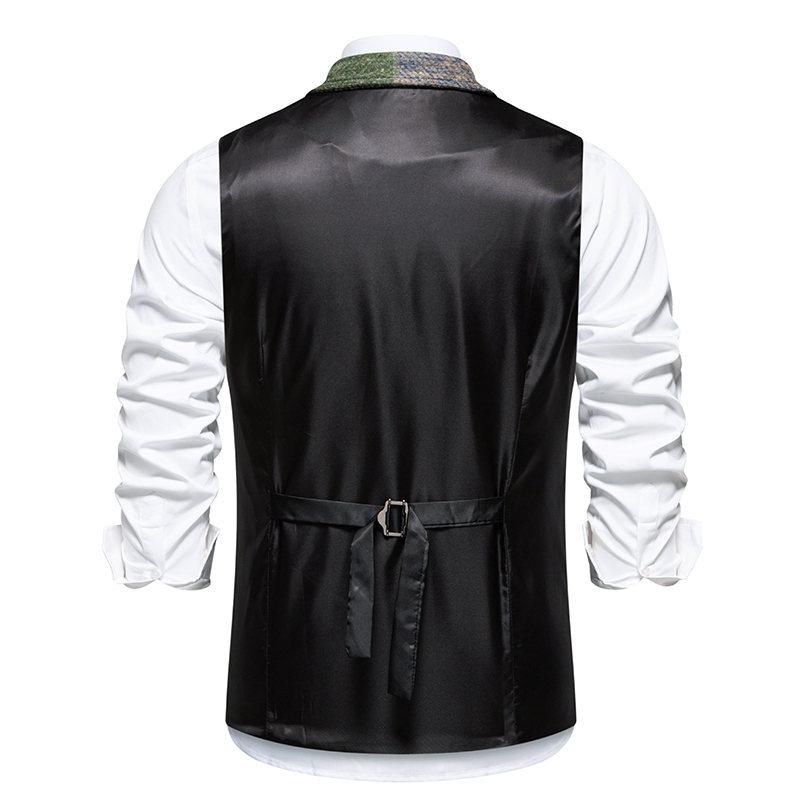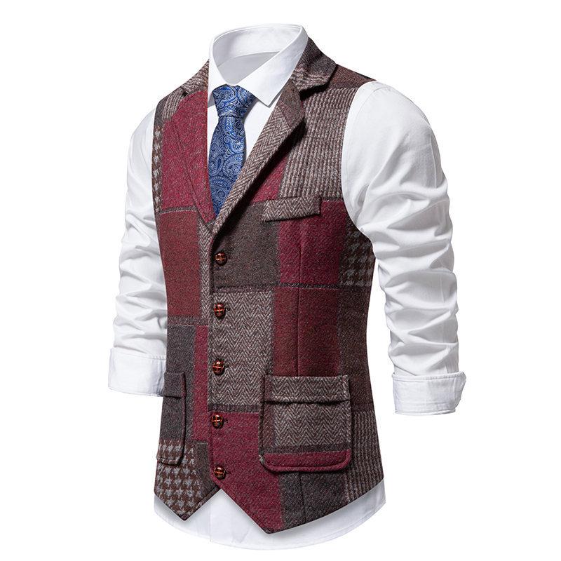 Amazon Transfronterizo Nuevo Chaleco Individual para Hombre Estilo Británico Juvenil Caballero Bloque de Color Combinación de Color Un Solo Botón Ajustado Chaleco