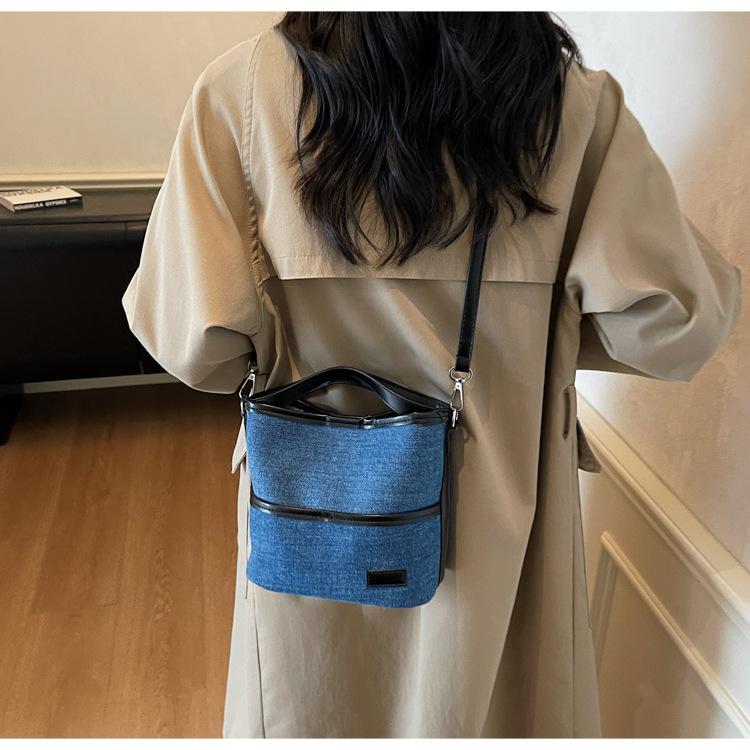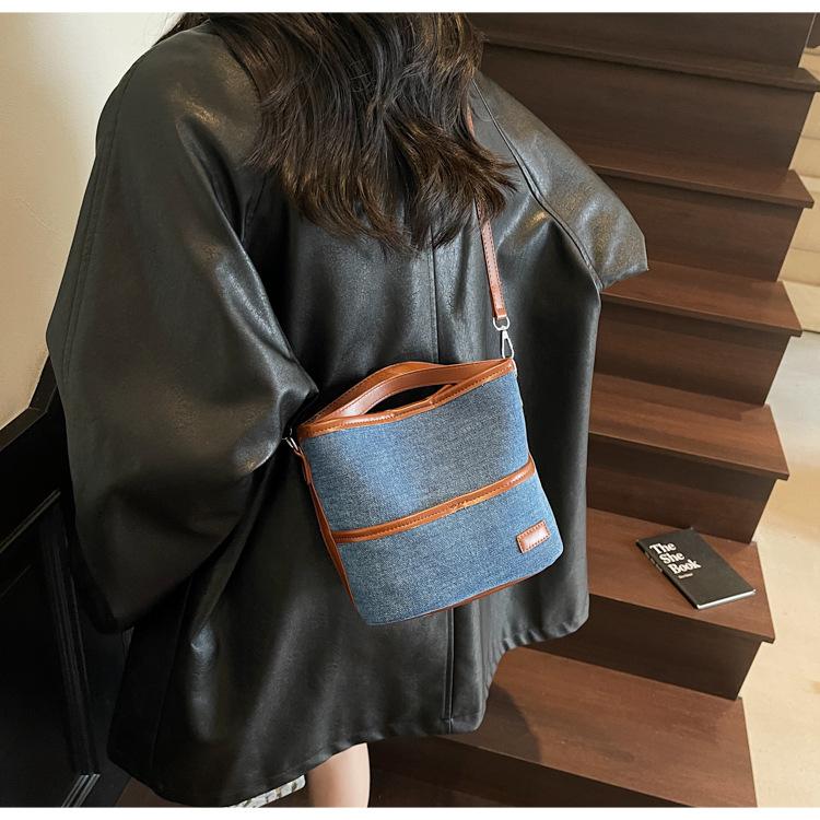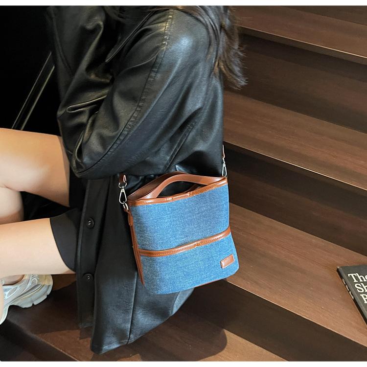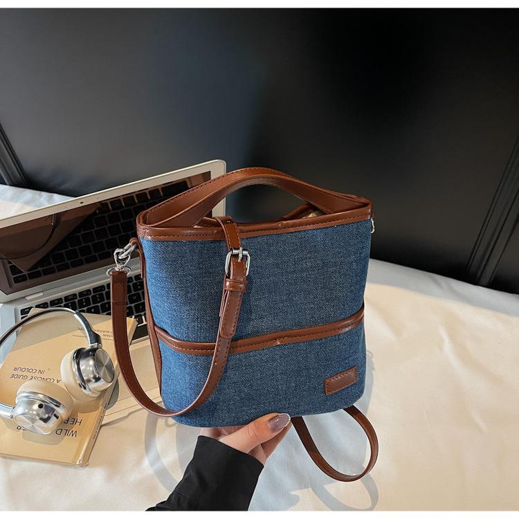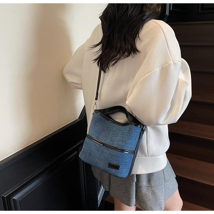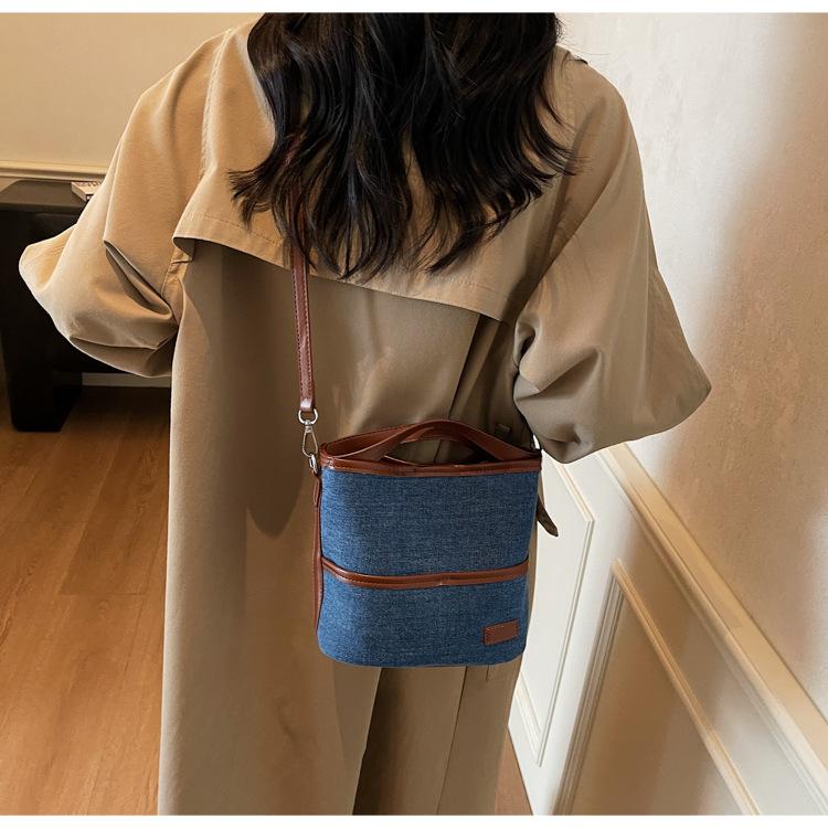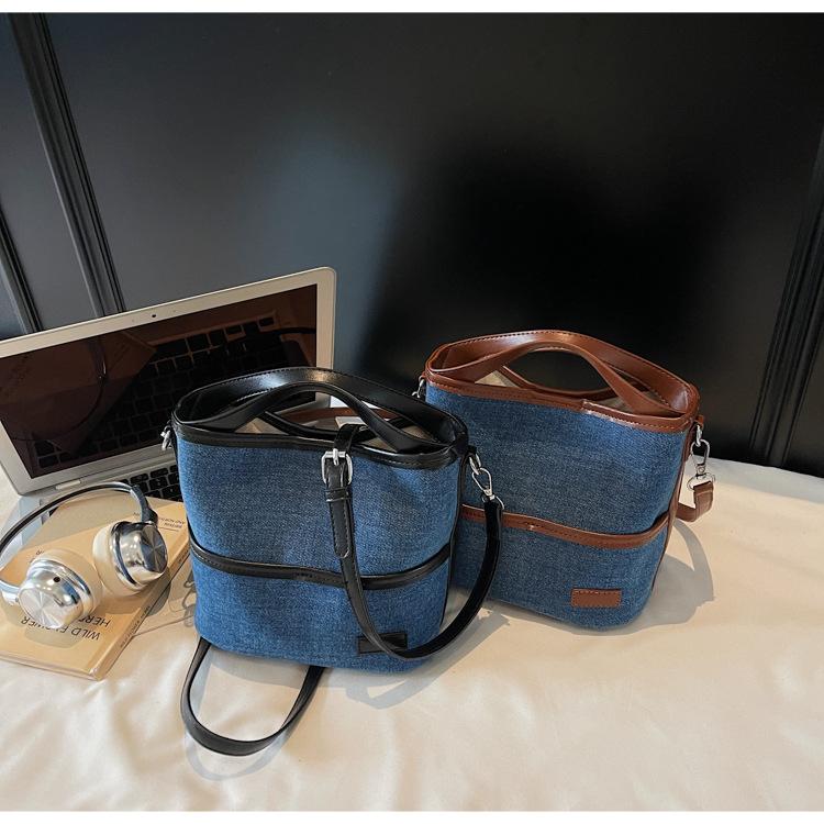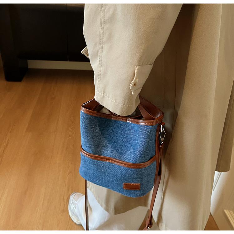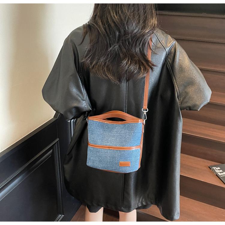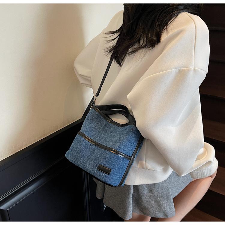 Bolso Tote de Lona Niche Color Block 2025 Otoño Nuevo Versátil Bolso Cruzado para Mujer Bolso de Mano Pequeño de Moda Bolso Bucket