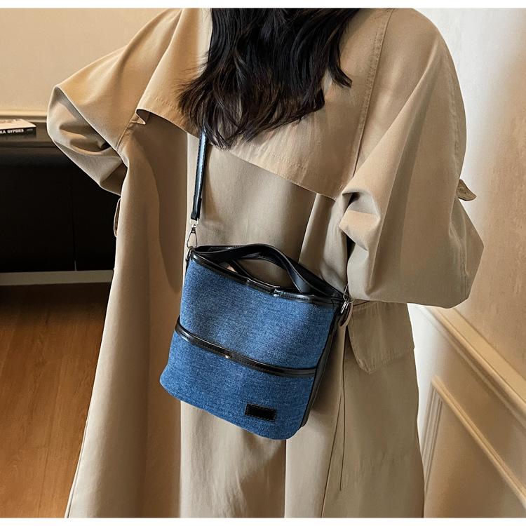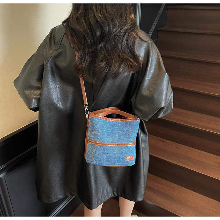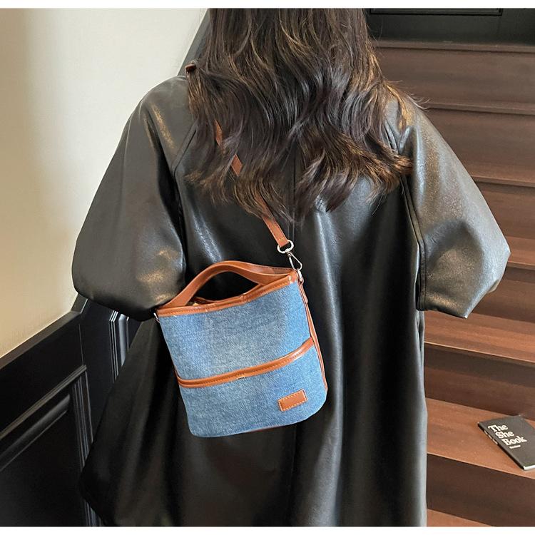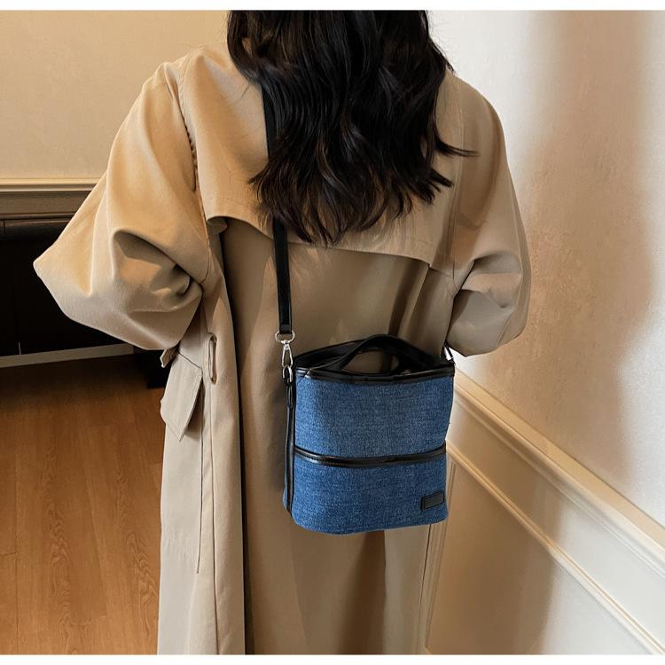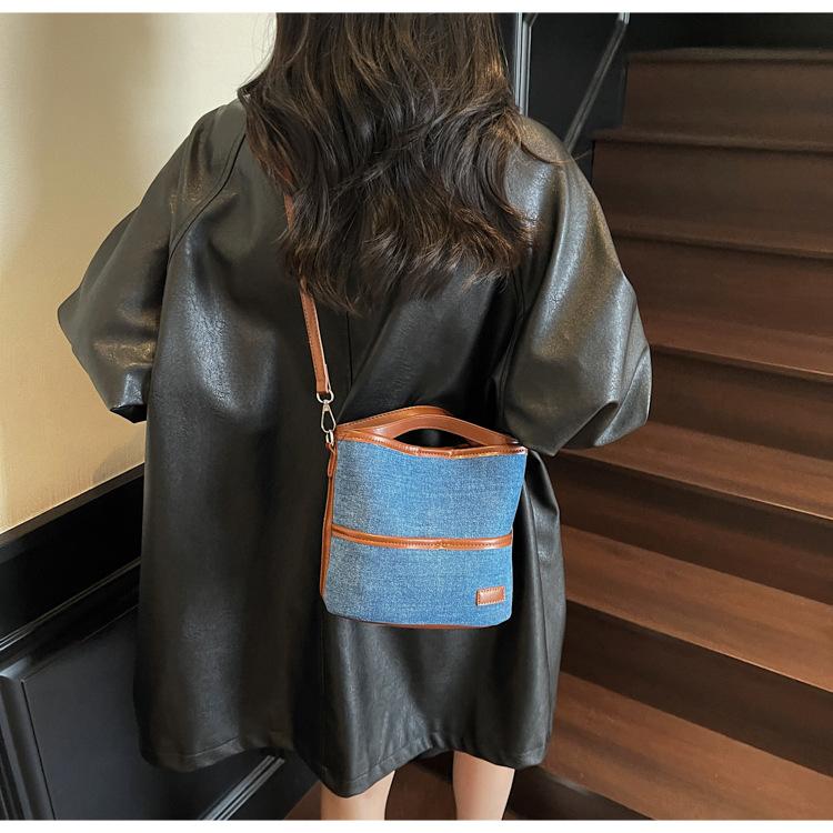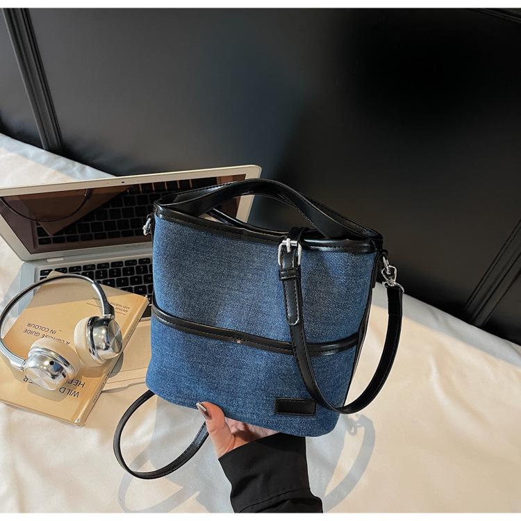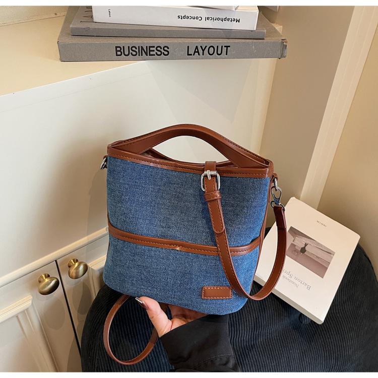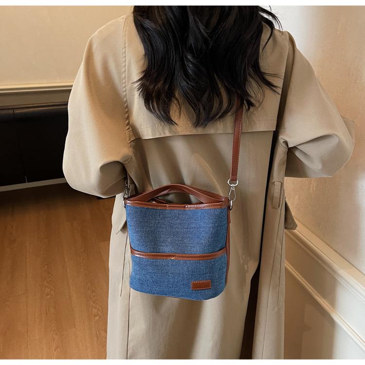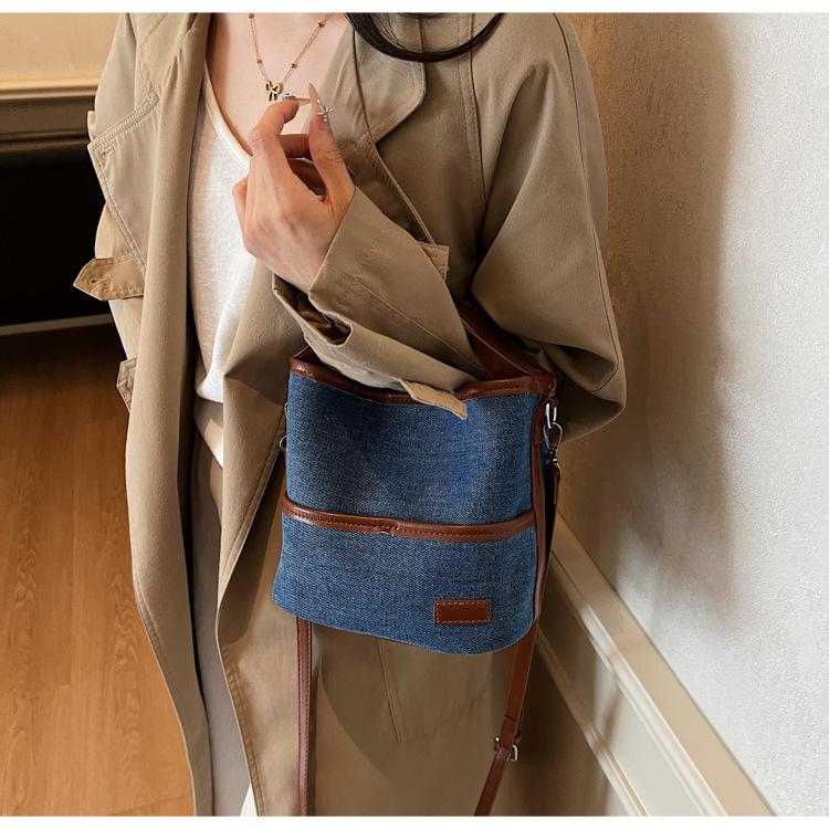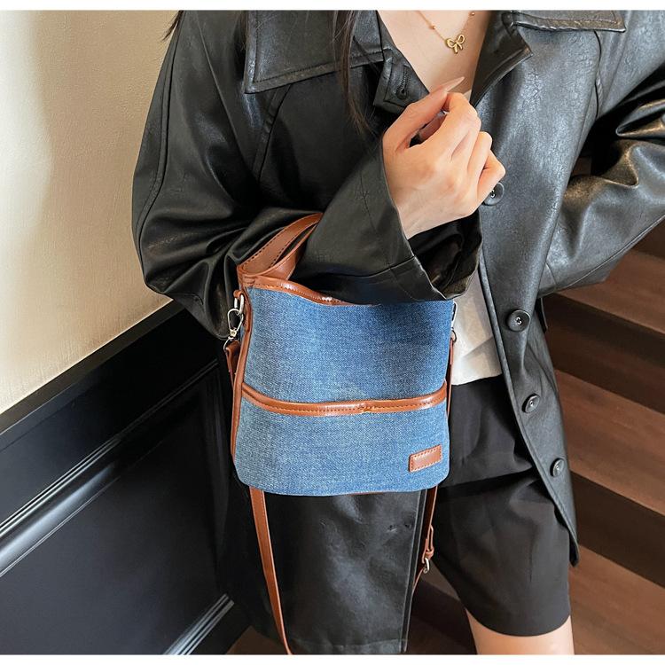 Bolso Tote de Lona Niche Color Block 2025 Otoño Nuevo Versátil Bolso Cruzado para Mujer Bolso de Mano Pequeño de Moda Bolso Bucket