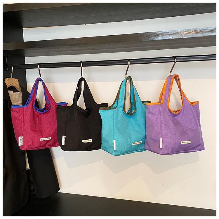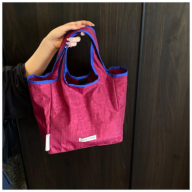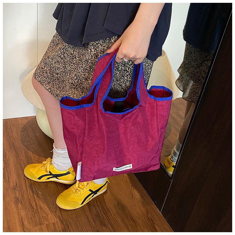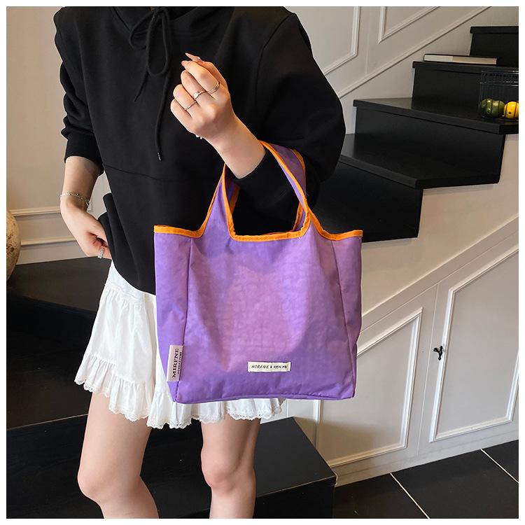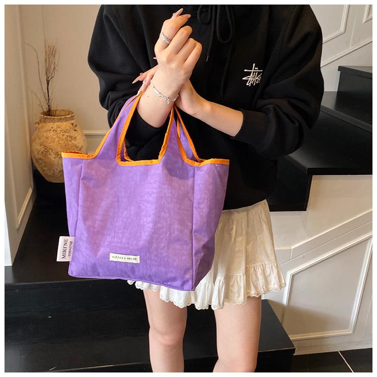 2025 Verano Nuevo Bolsa de Lona Dopamina Bolso de Mano Color Block Bolso Tote Plegable Bolso de Hombro