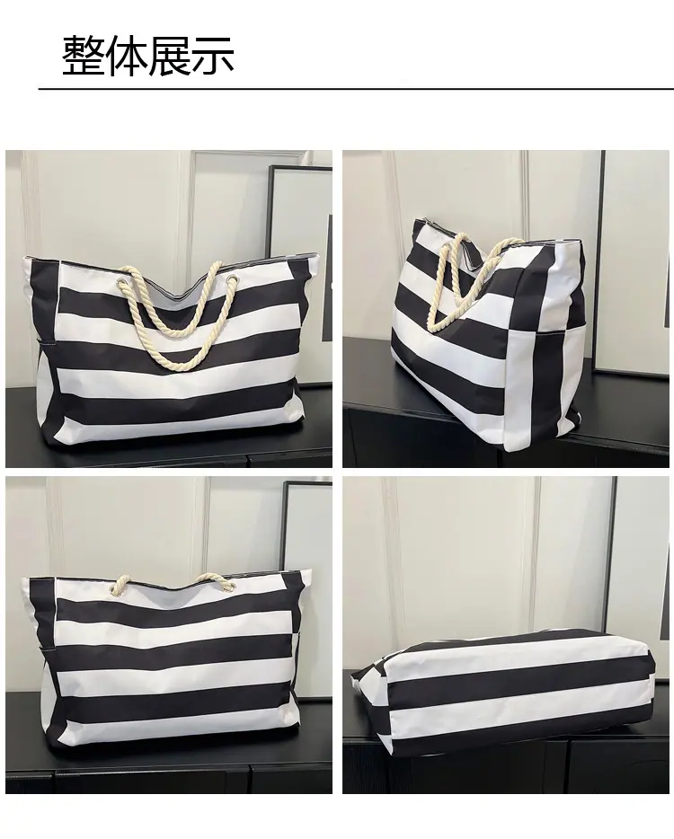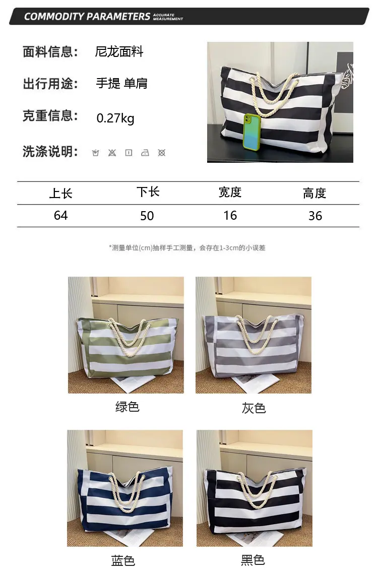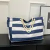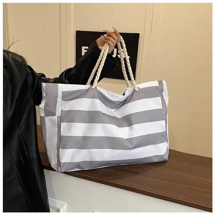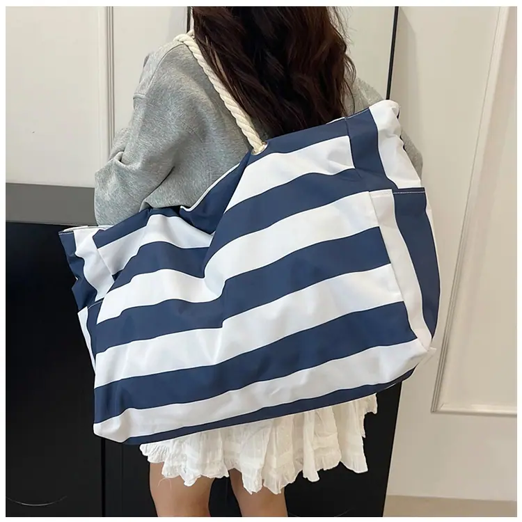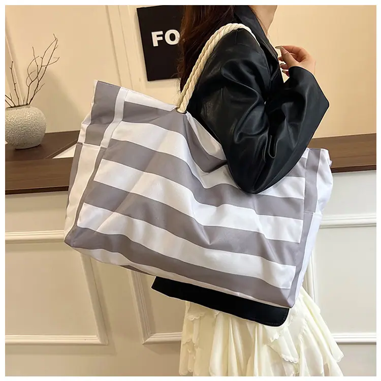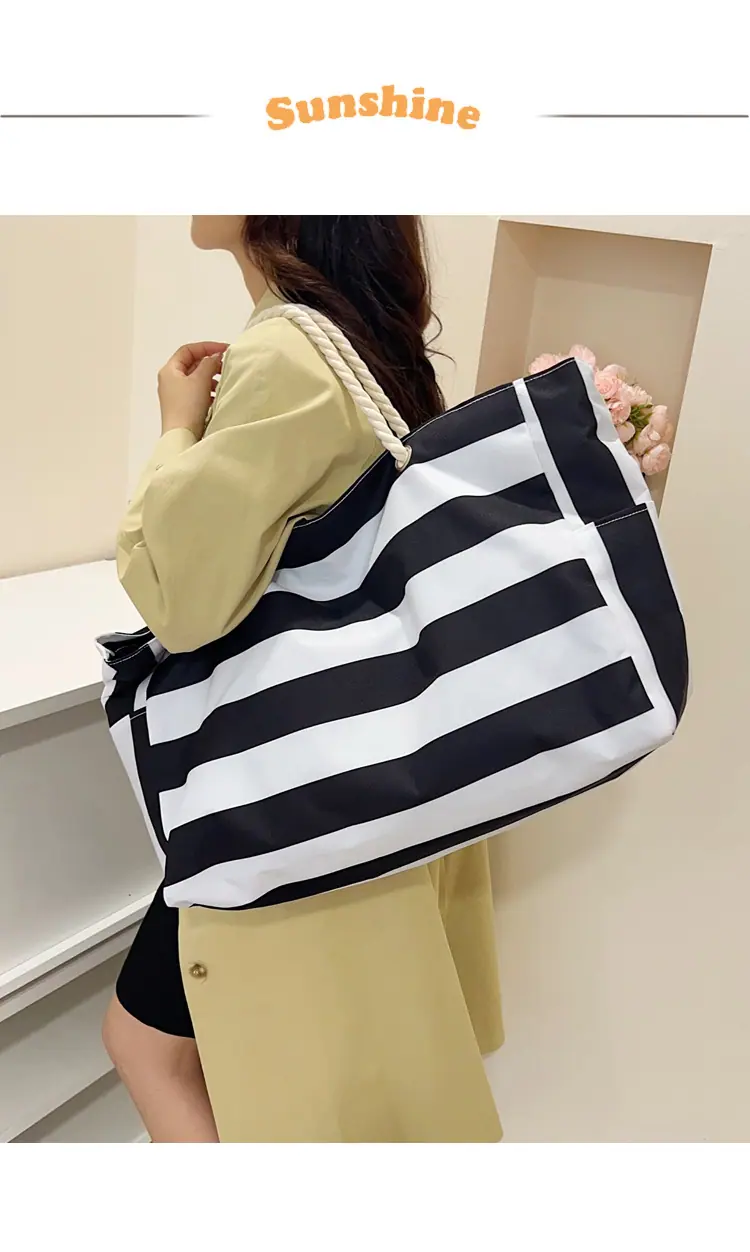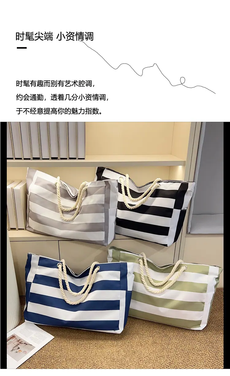 Bolsa Grande Rayada para Almacenamiento Bolso de Moda Bolsa de Playa 2025 Principios de Otoño Nuevo Bolsa de Viaje de Gran Capacidad Bolsa de Compras