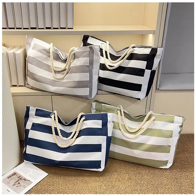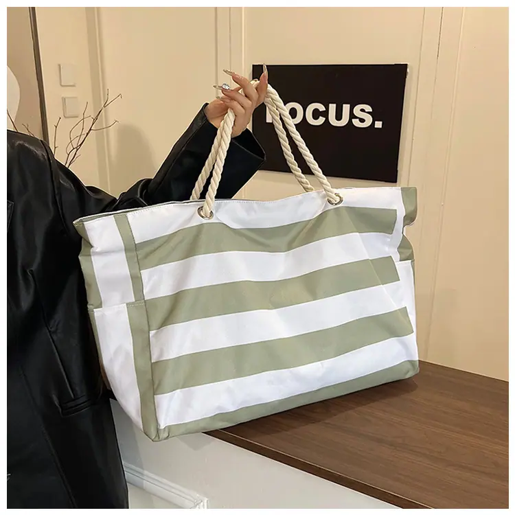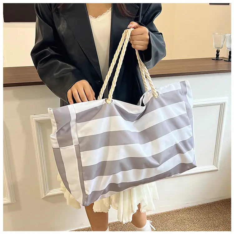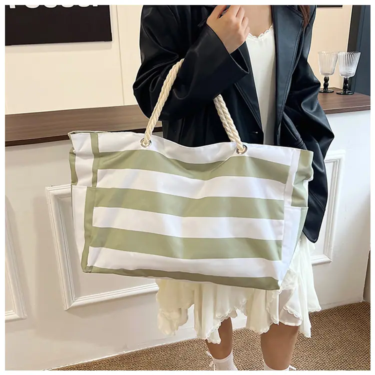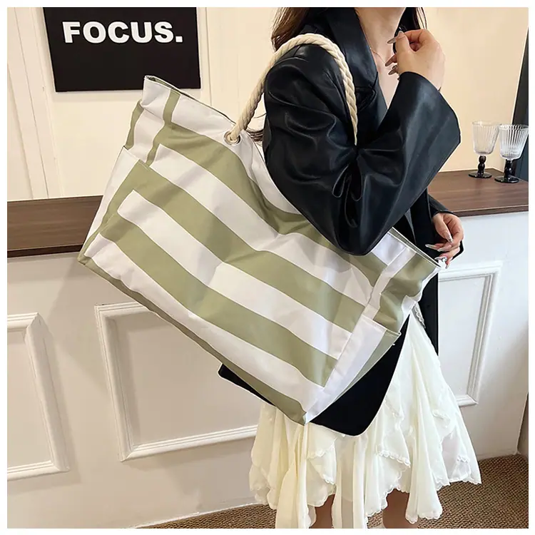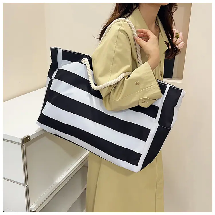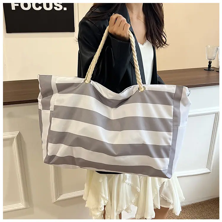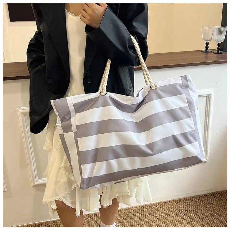 Bolsa Grande Rayada para Almacenamiento Bolso de Moda Bolsa de Playa 2025 Principios de Otoño Nuevo Bolsa de Viaje de Gran Capacidad Bolsa de Compras