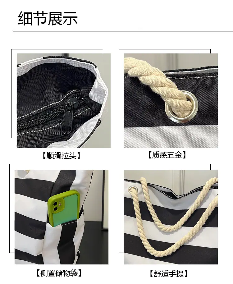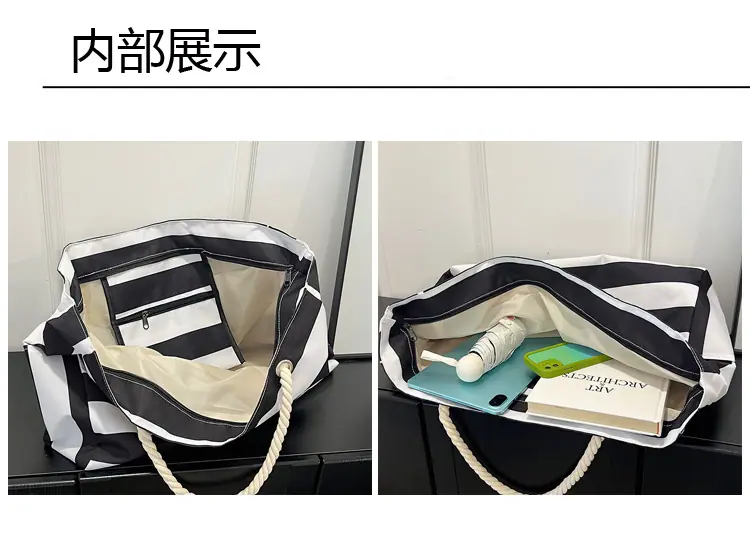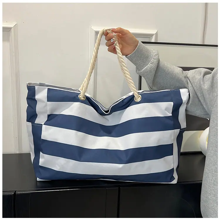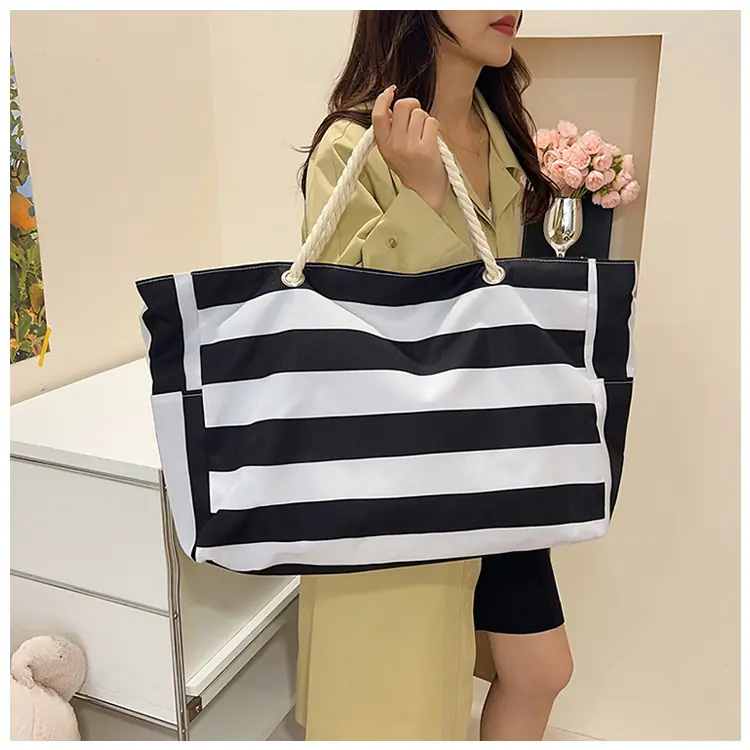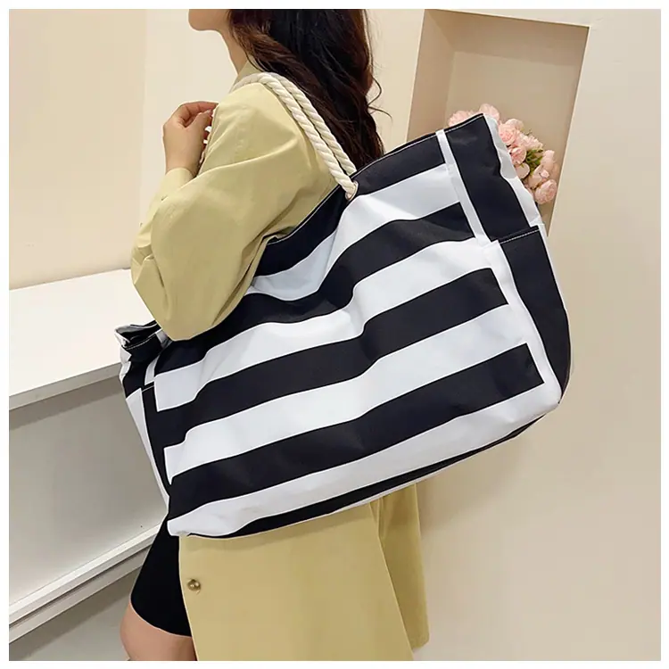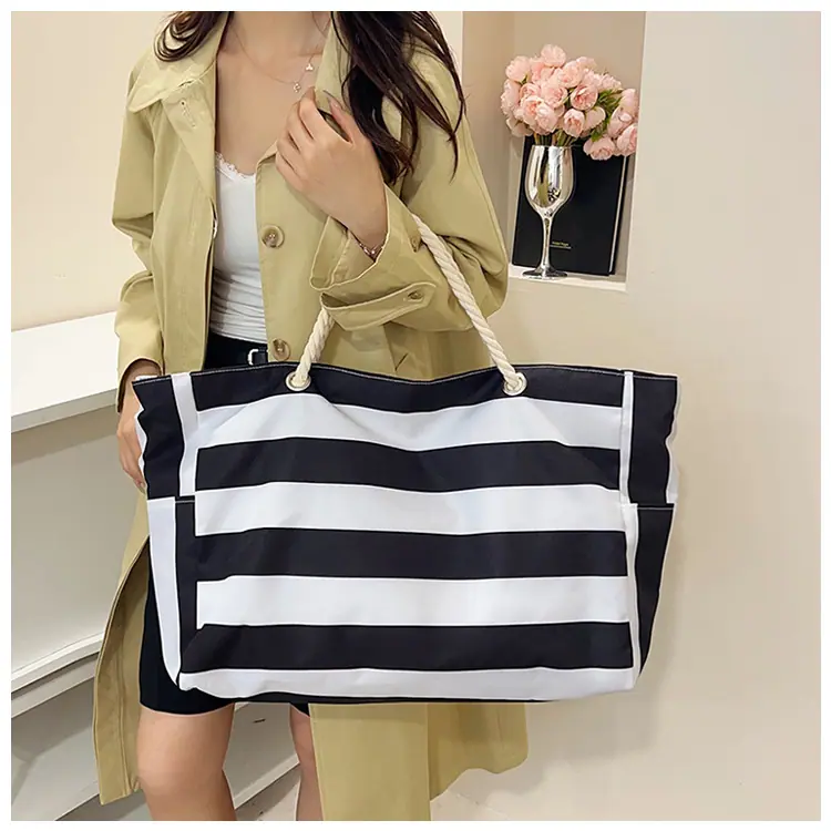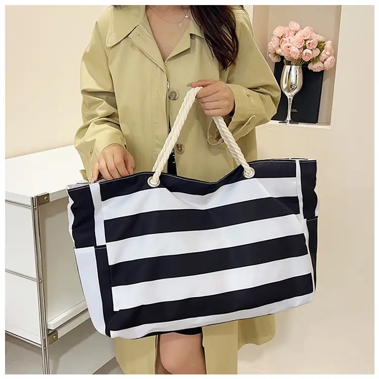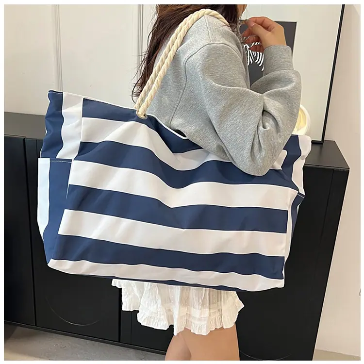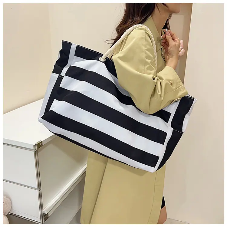 Bolsa Grande Rayada para Almacenamiento Bolso de Moda Bolsa de Playa 2025 Principios de Otoño Nuevo Bolsa de Viaje de Gran Capacidad Bolsa de Compras