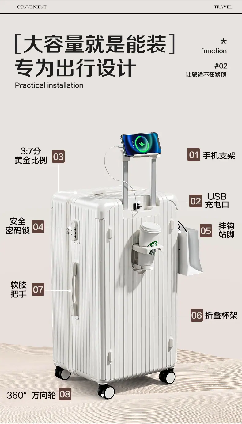 Maleta de Gran Capacidad Maleta con Ruedas Nueva Maleta de Viaje Unisex Cerradura de Combinación Ruedas Universales Maleta con Cremallera Comercio Exterior