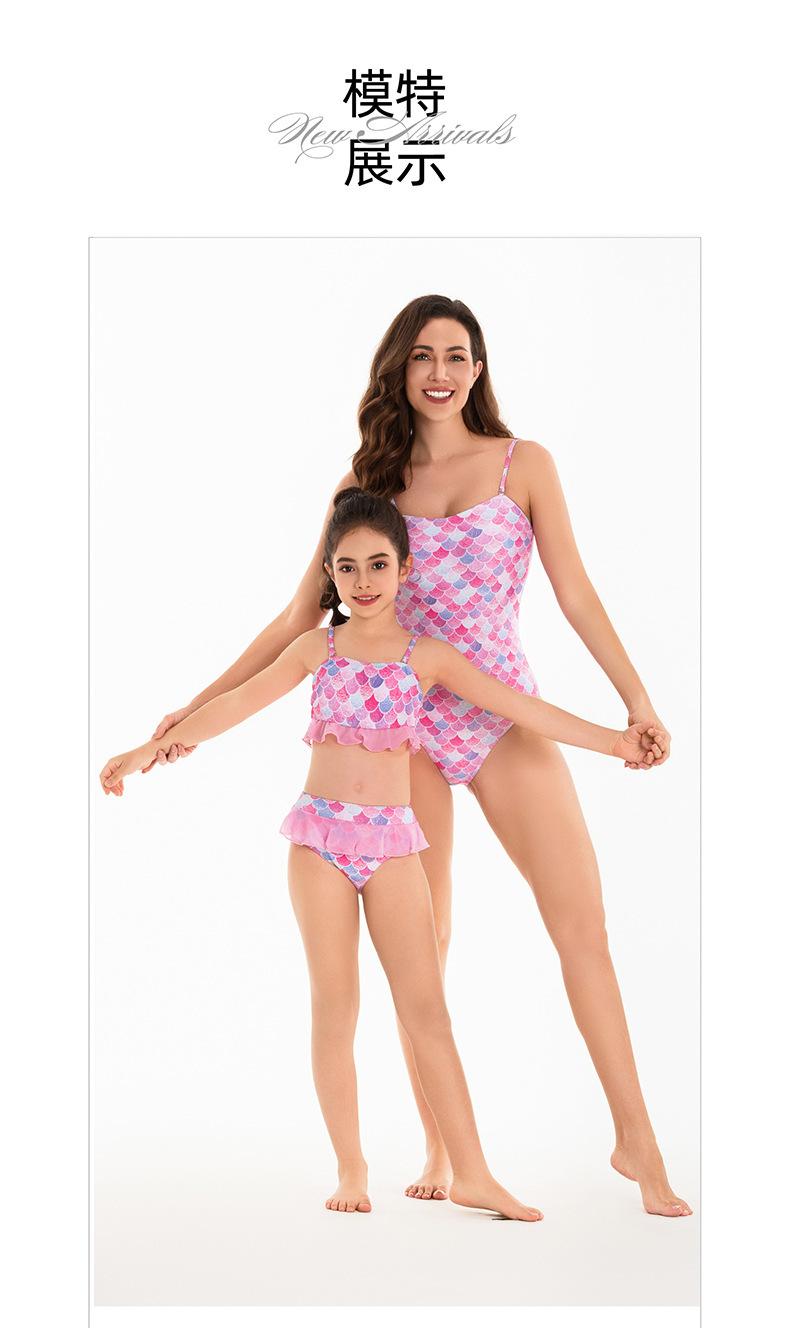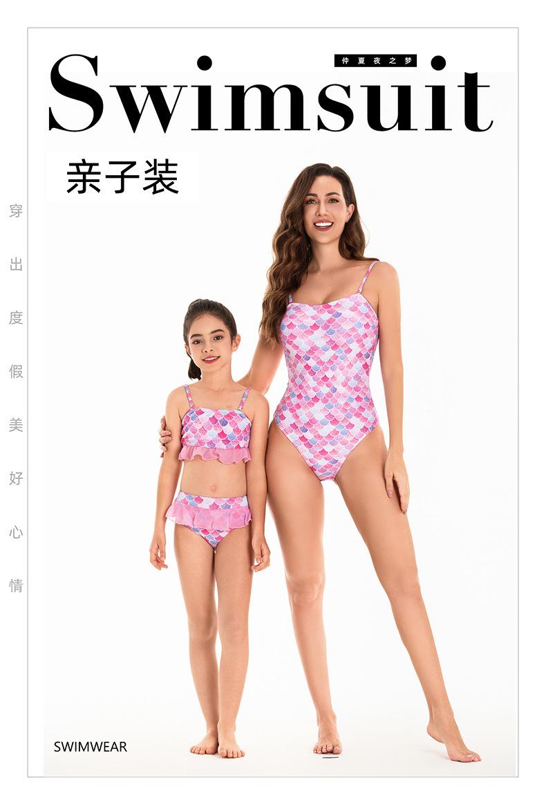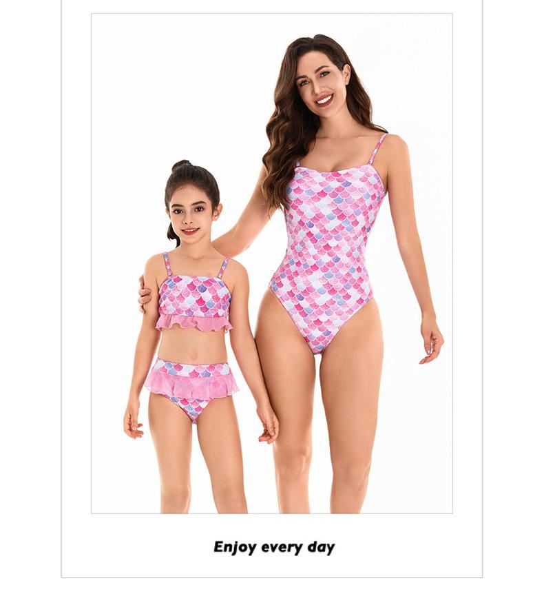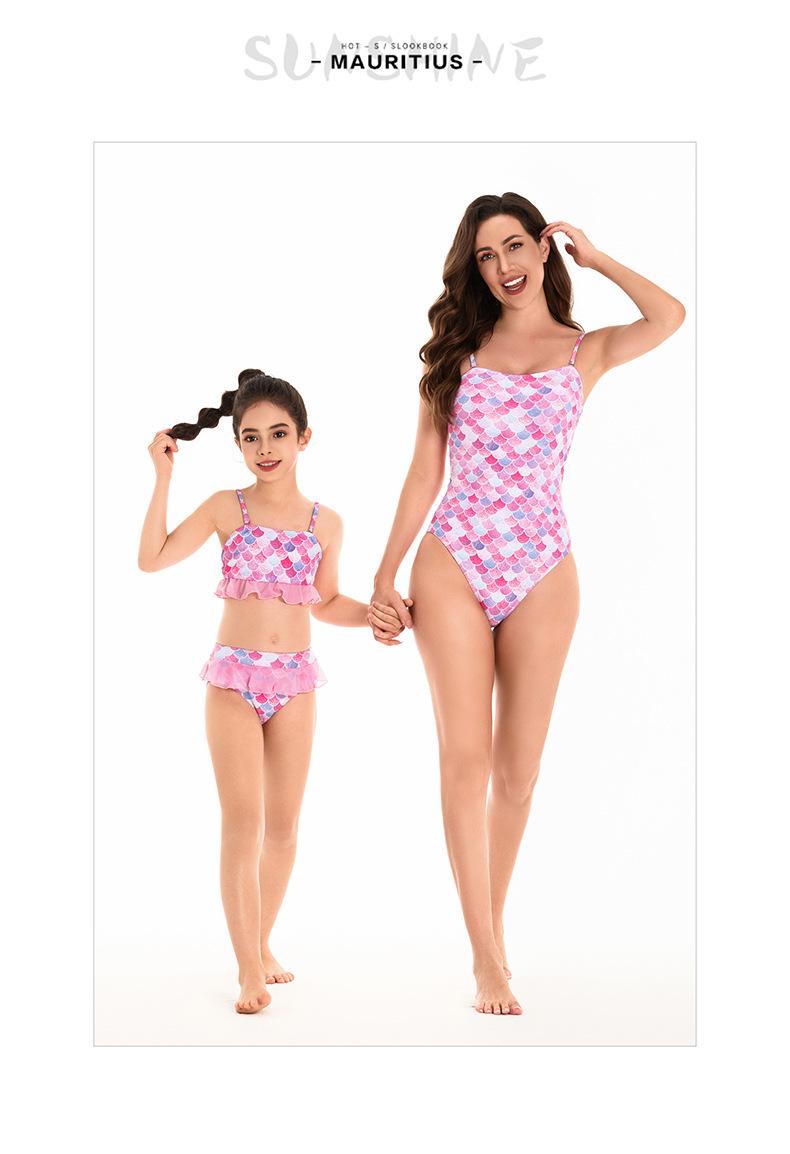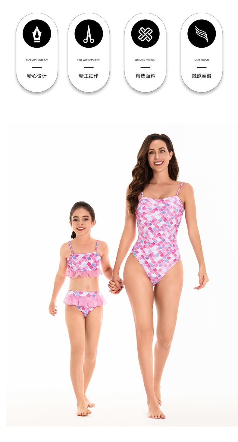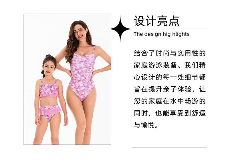 Traje de baño europeo y americano al por mayor para padres e hijos, comercio exterior, bikini sexy con estampado de escamas de sirena, traje de baño para niños, madre e hija, mujeres