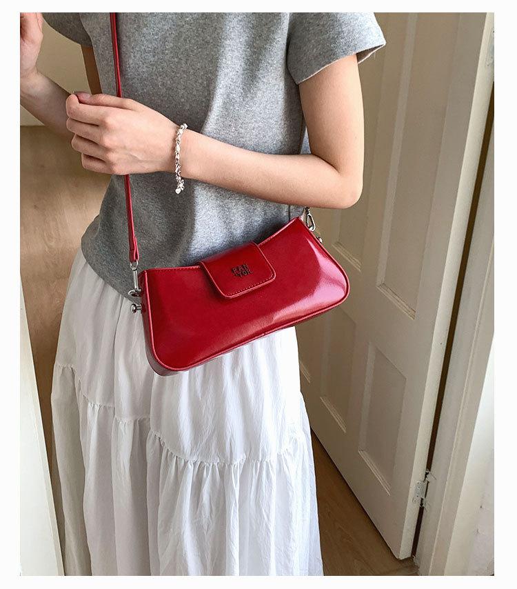 Bolso Coreano Nicho para Axila para Mujer 2025 Nuevo Moderno Moda de Verano Bolso Cuadrado Pequeño Versátil de Un Solo Hombro Cruzado Bolso Rojo