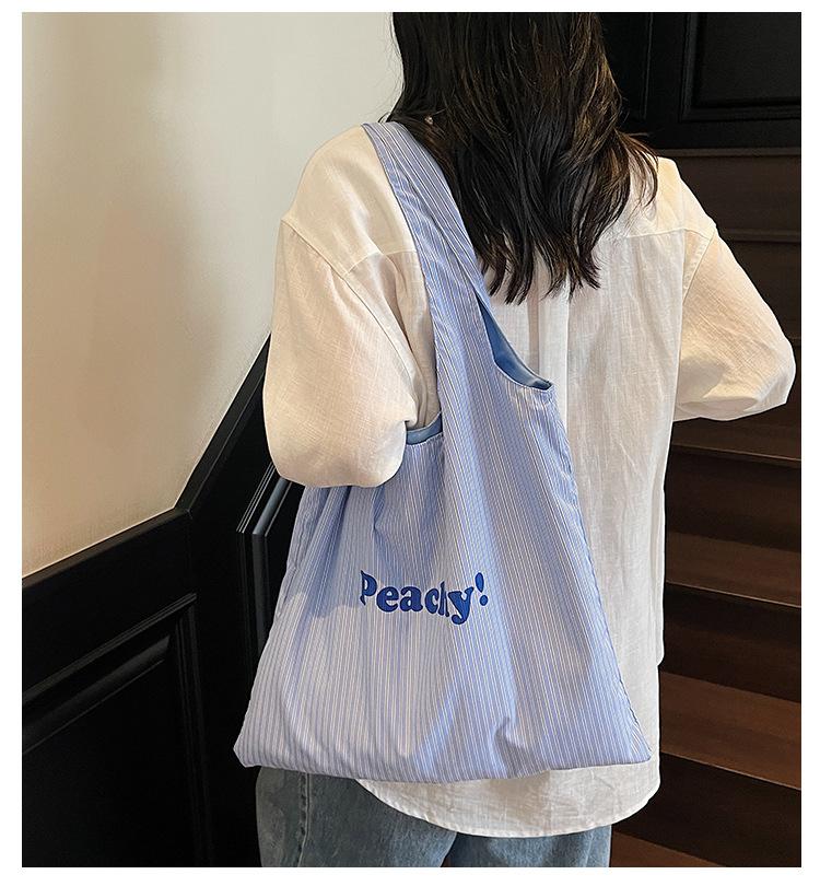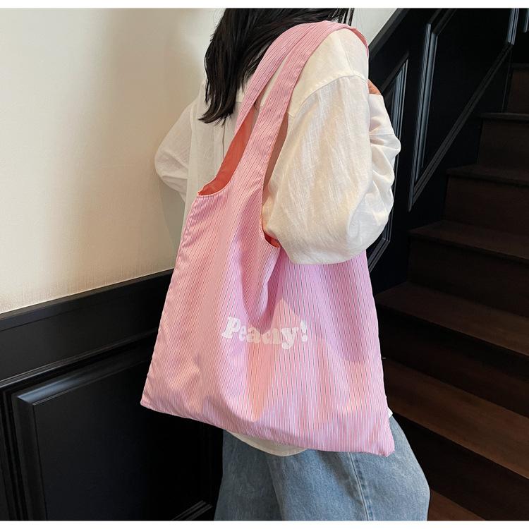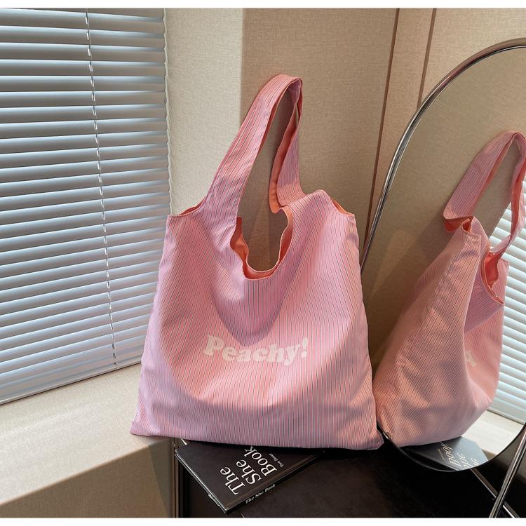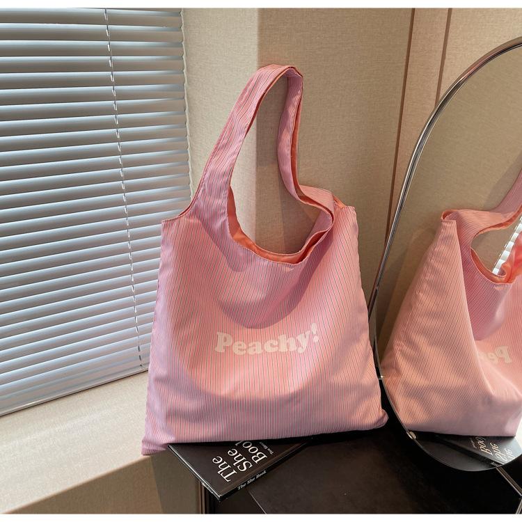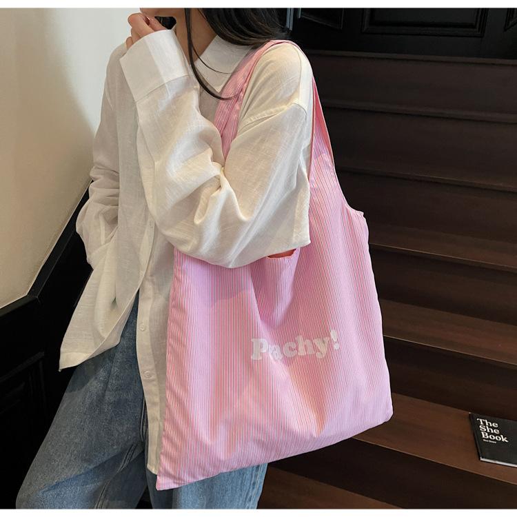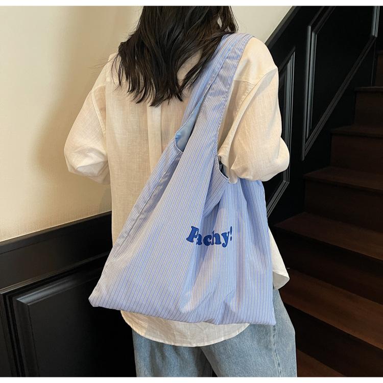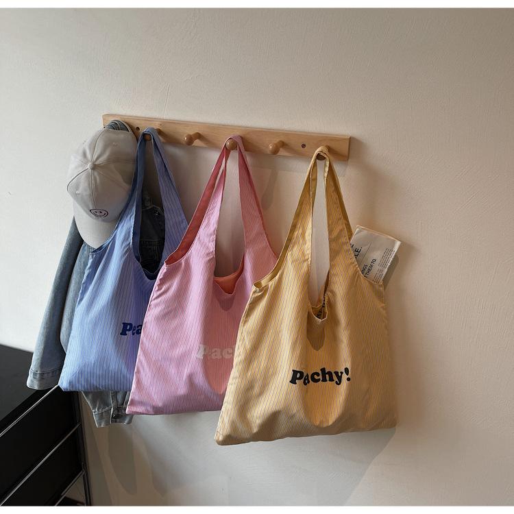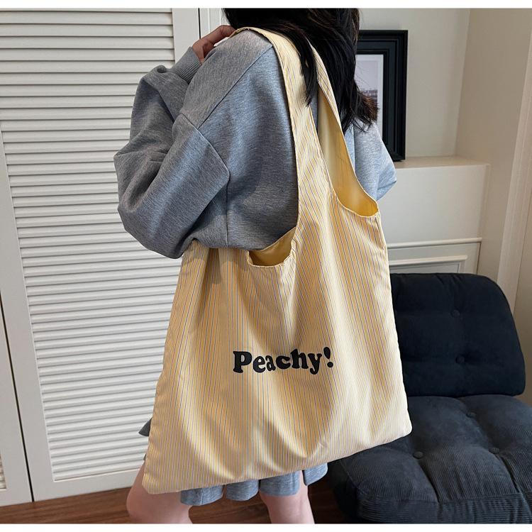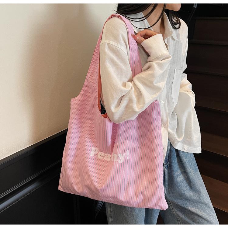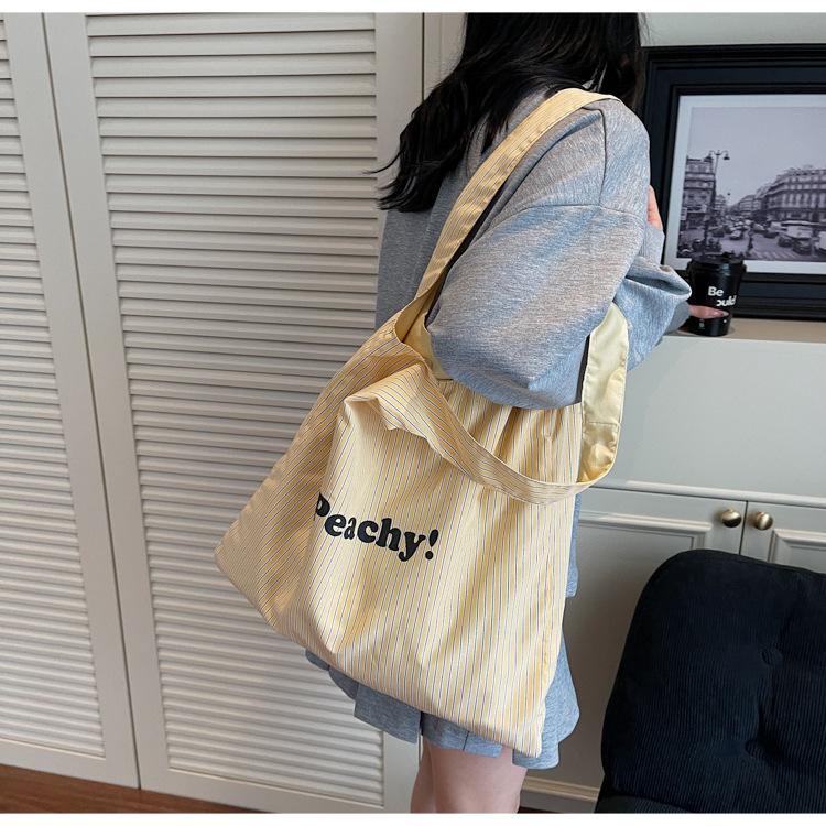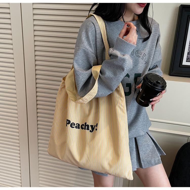 Bolsa de nailon de gran capacidad de un solo hombro estilo coreano, bolso tote con estampado de letras a rayas, bolso tote simple, versátil, de moda, de nicho, para mujer