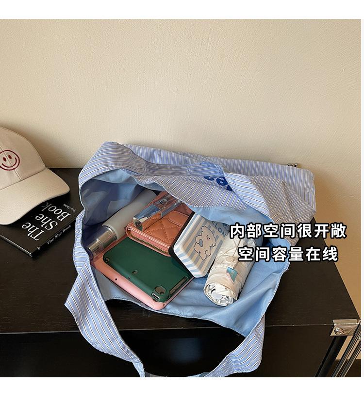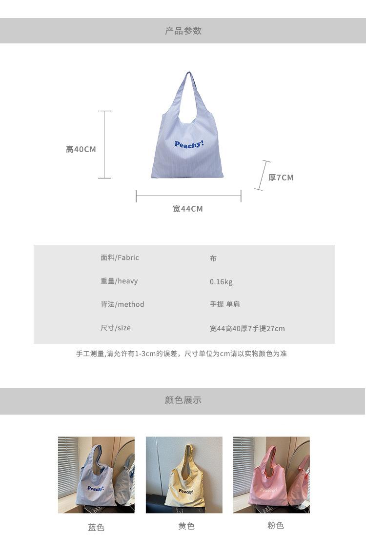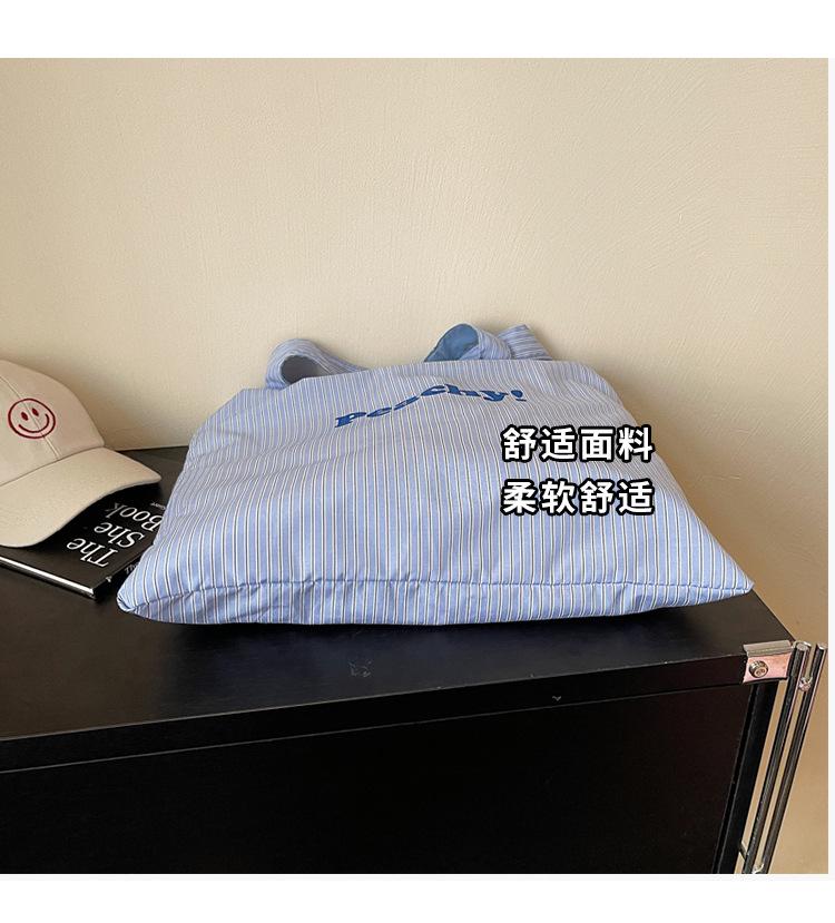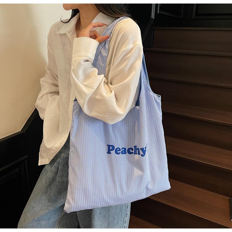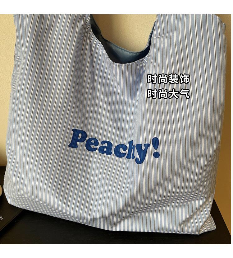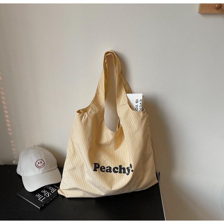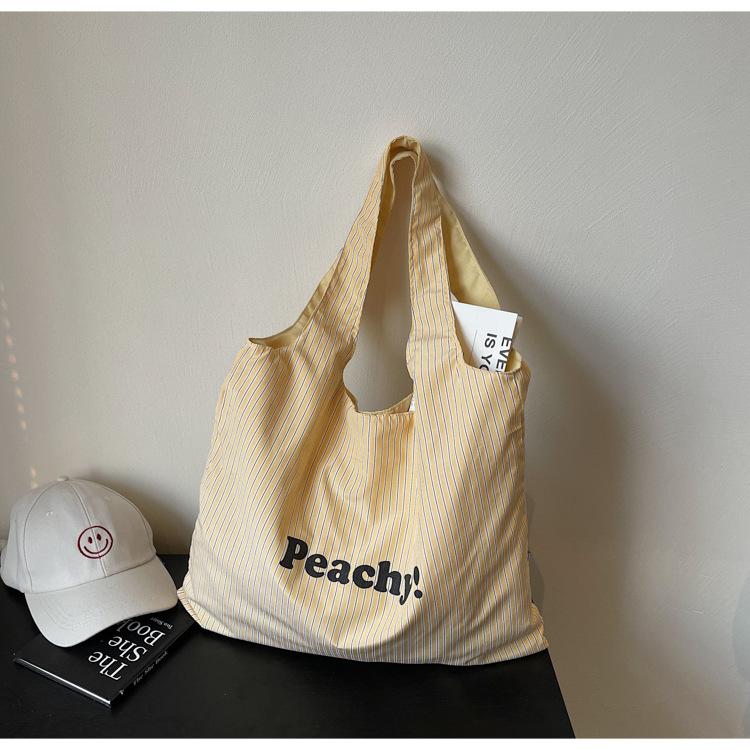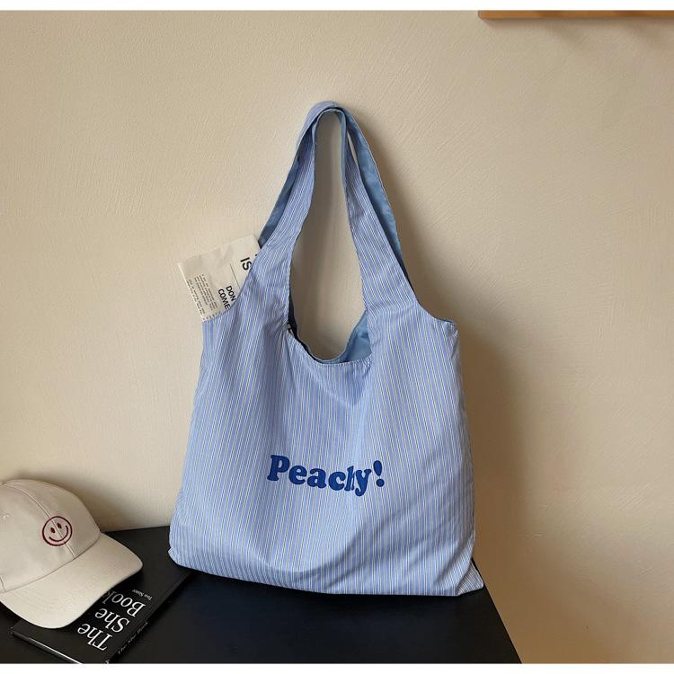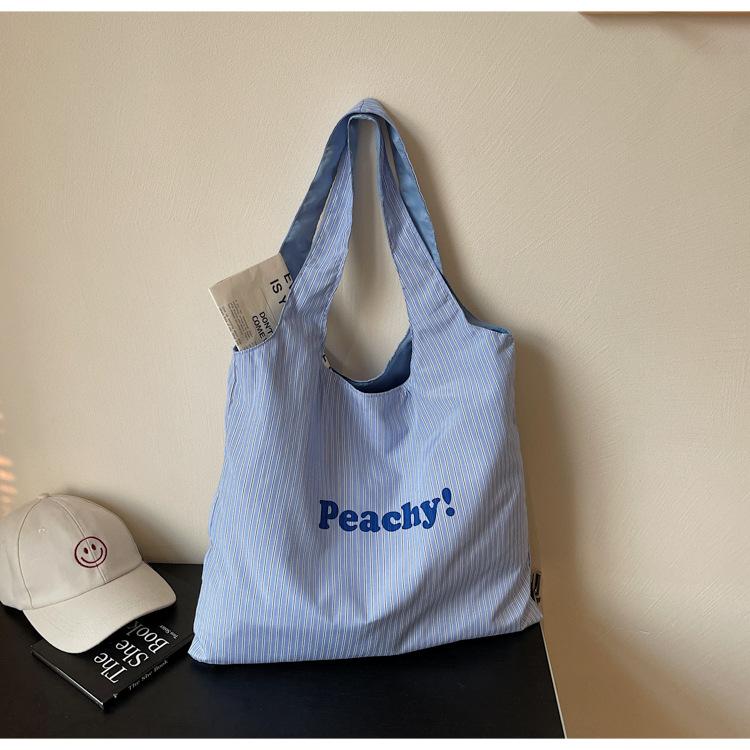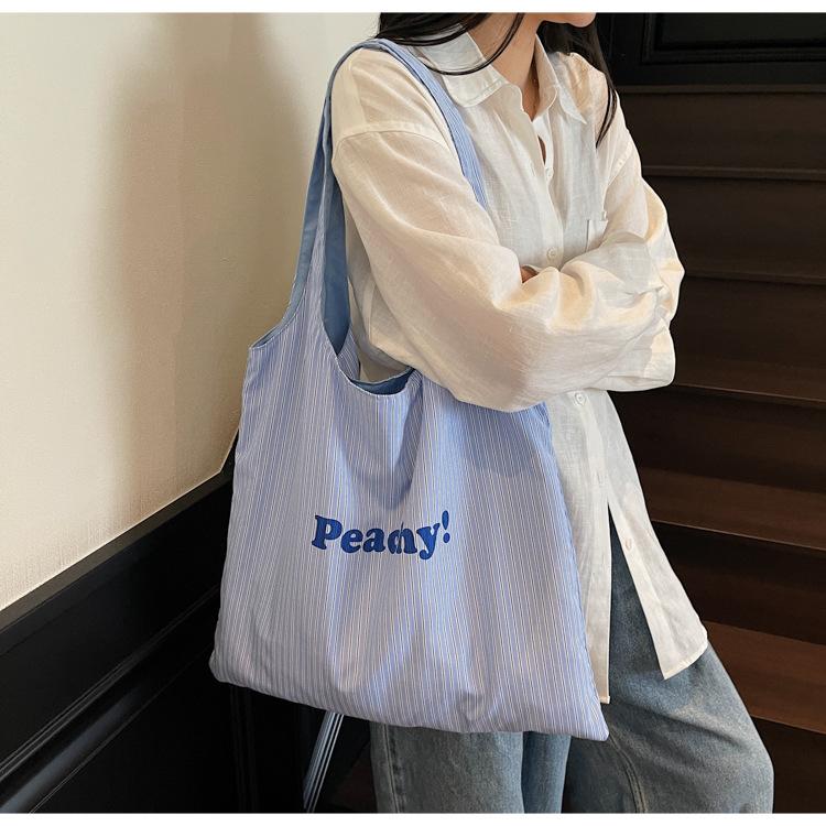 Bolsa de nailon de gran capacidad de un solo hombro estilo coreano, bolso tote con estampado de letras a rayas, bolso tote simple, versátil, de moda, de nicho, para mujer