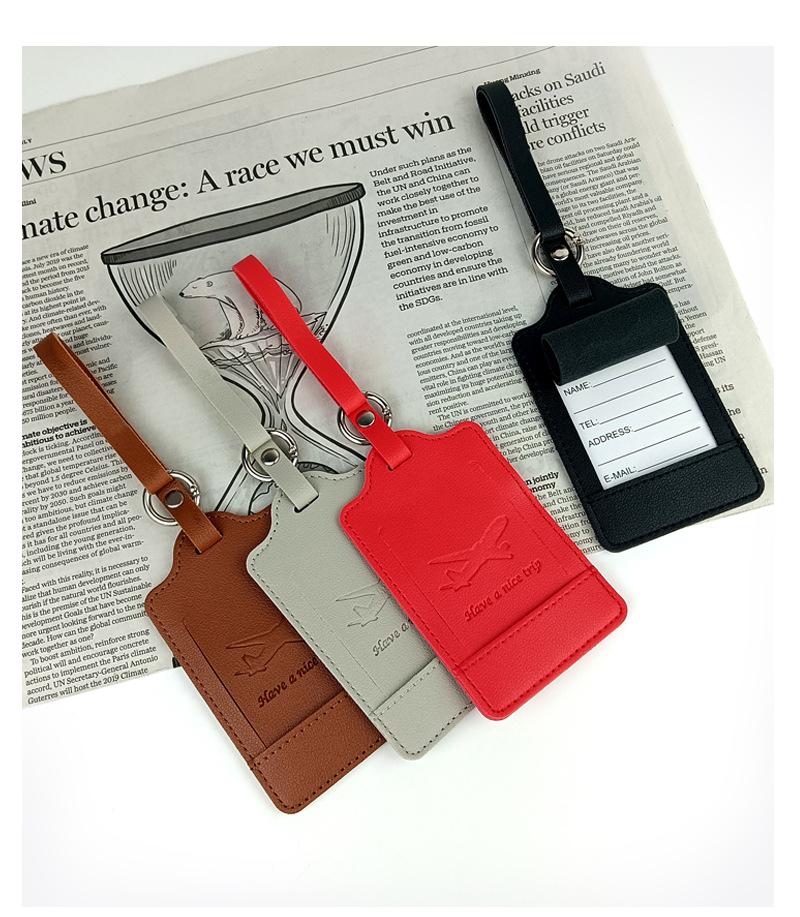 Tarjeta de embarque de cuero para comercio internacional disponible al por mayor. Se puede fijar el logotipo de la empresa. Etiqueta de equipaje de cuero sintético.