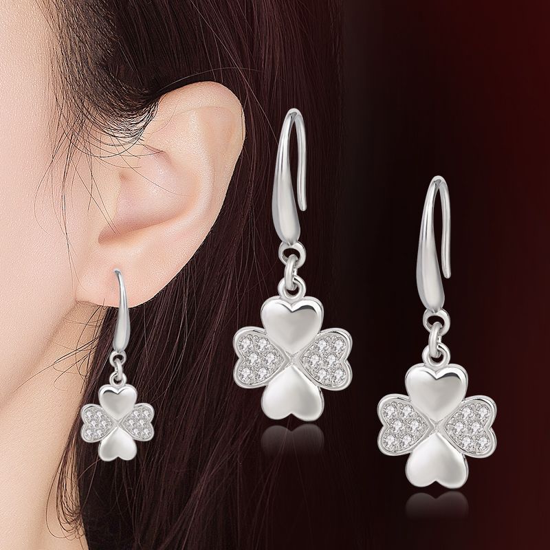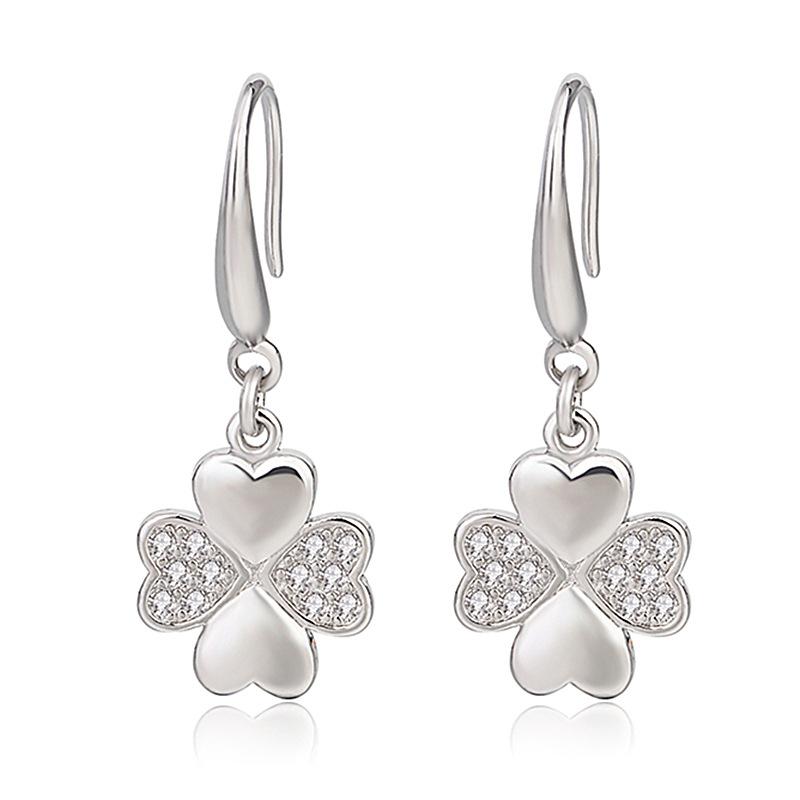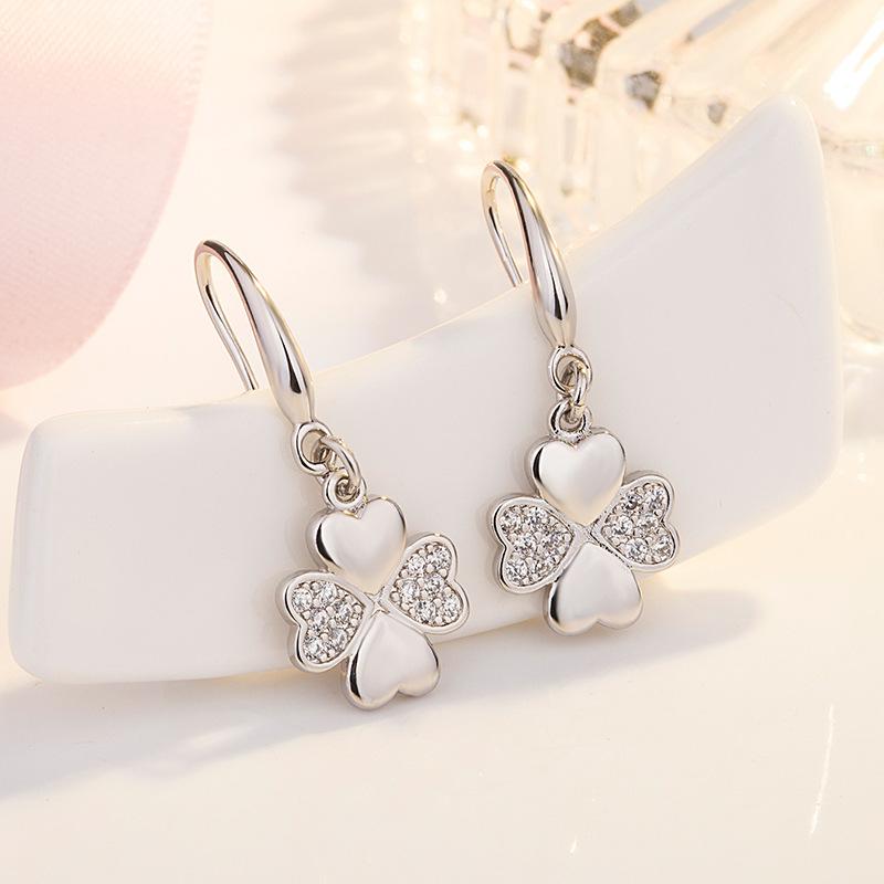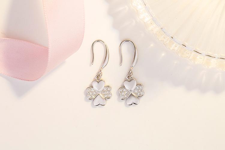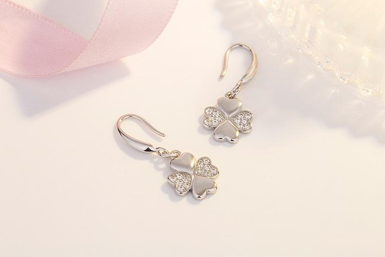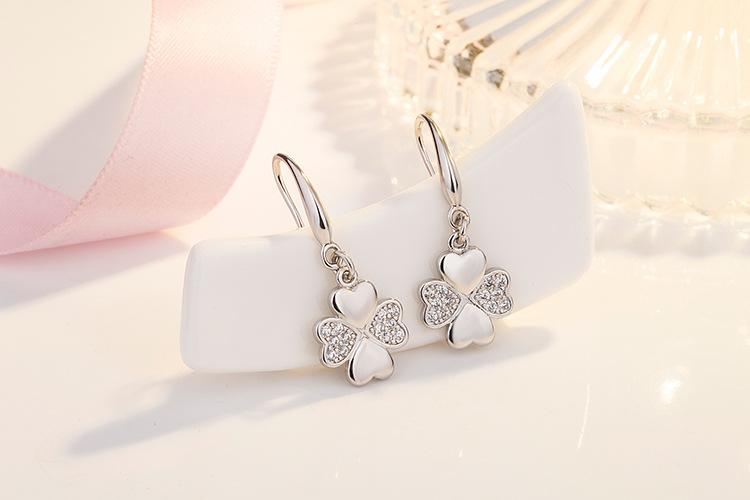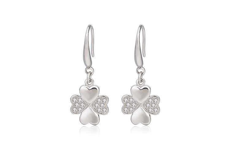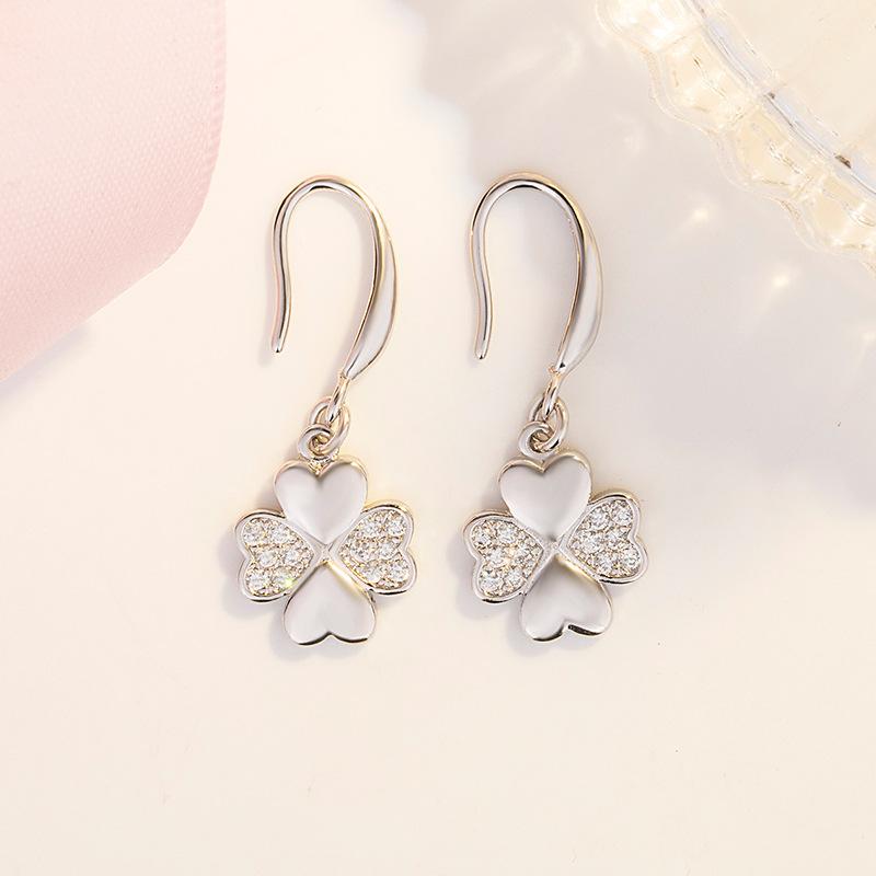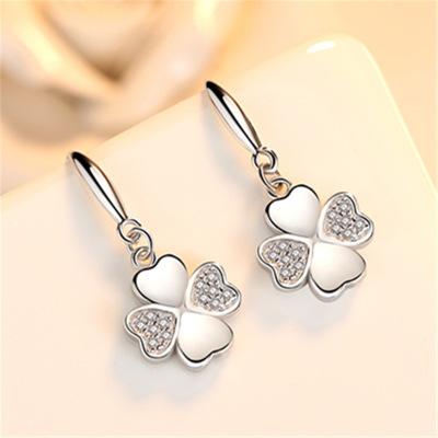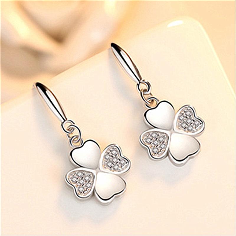 Yihua Aretes colgantes sencillos de moda plateada estilo coreano frescos y dulces que combinan con todo con forma de corazón de trébol de cuatro hojas