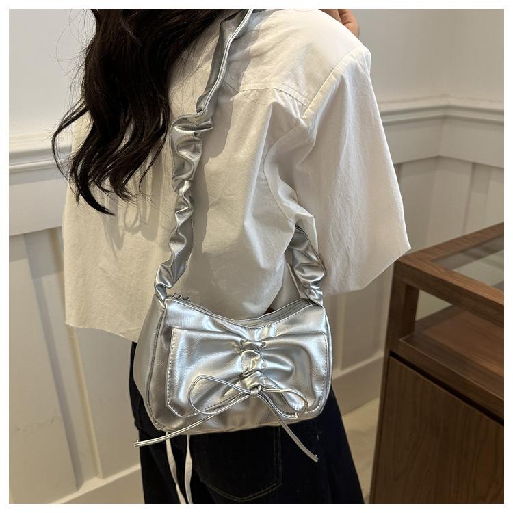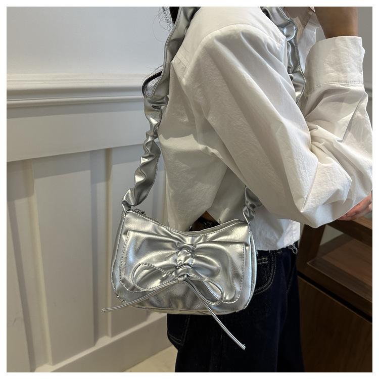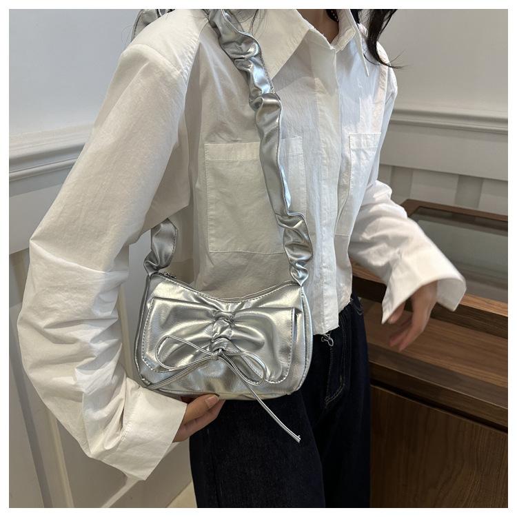 Bolso baguette plateado para axila para mujer 2025 nuevo moderno versátil pequeño bolso cuadrado moderno bolso de mano bandolera de hombro de alta gama