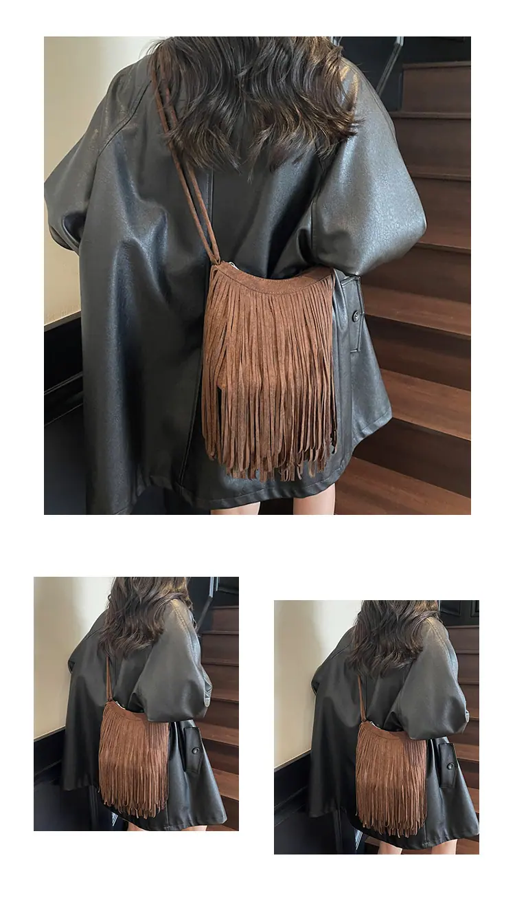 Bolso cubo de hombro único de gran capacidad para comercio exterior transfronterizo, bolso bandolera con borlas de moda, bolso tote versátil nuevo para mujer, estilo coreano