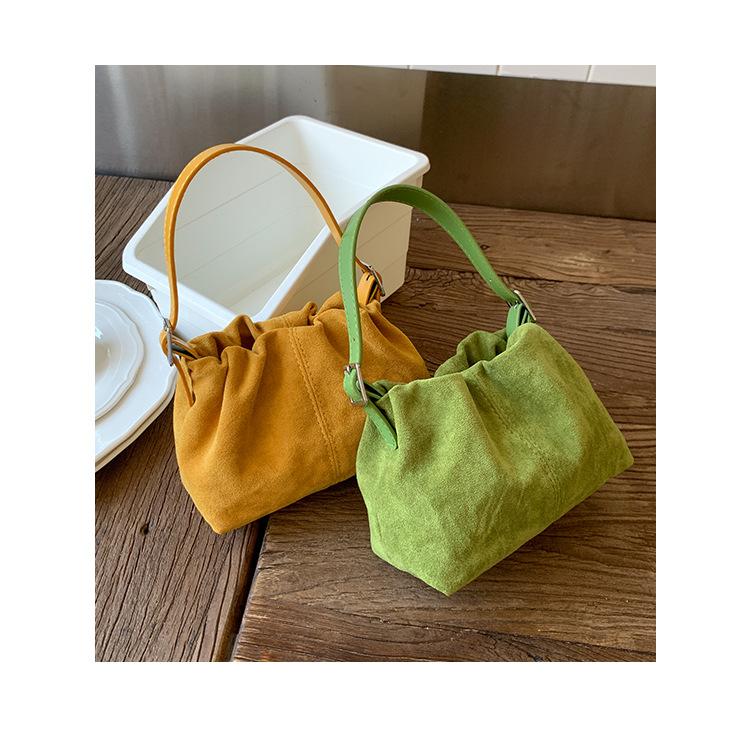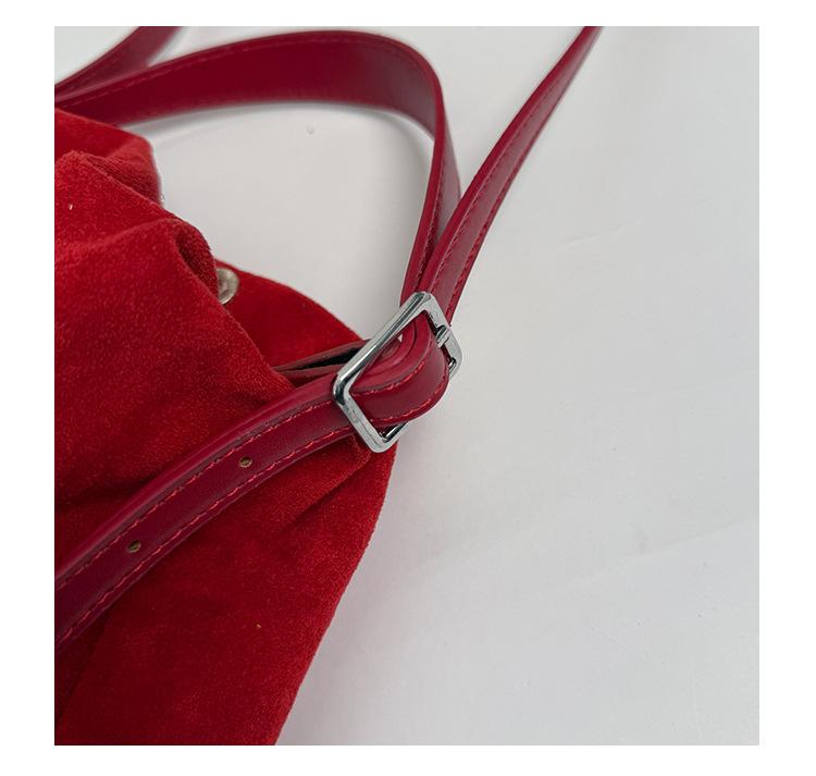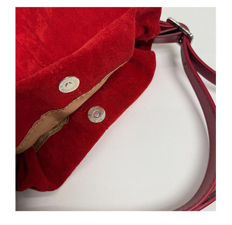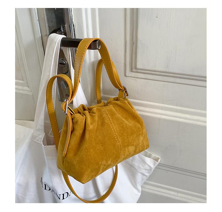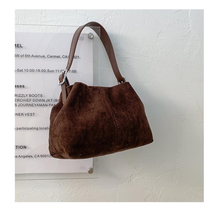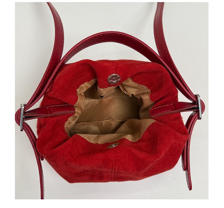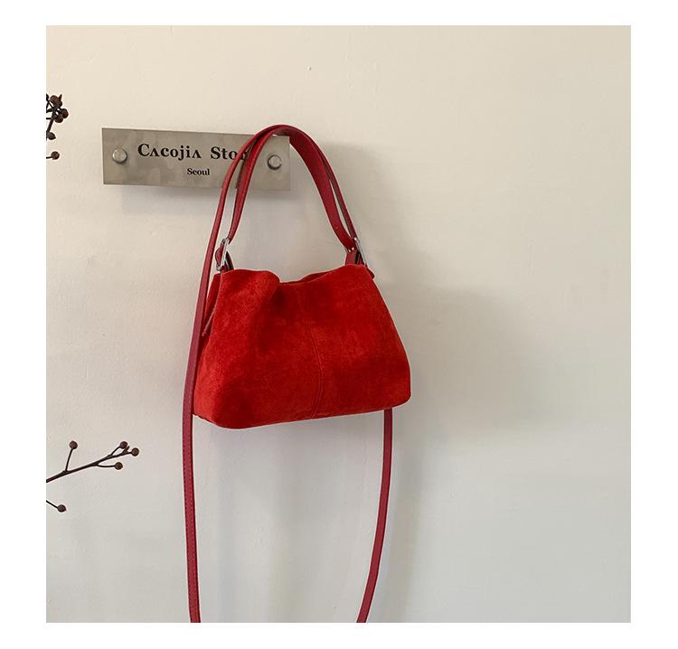 Bolso de mano nicho de alta gama pequeño bolso tote para mujer 2025 nuevo bolso cubo simple de gamuza bolso bandolera versátil