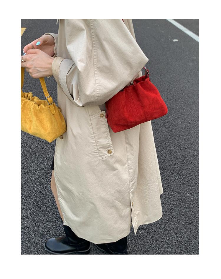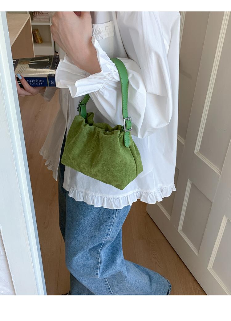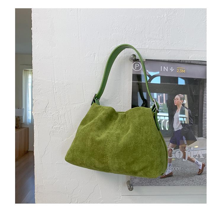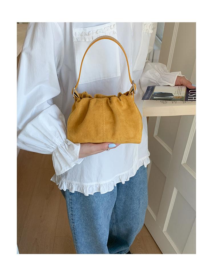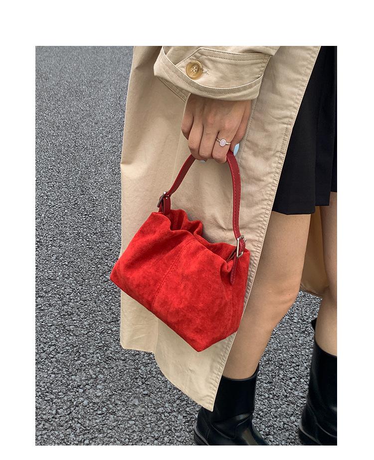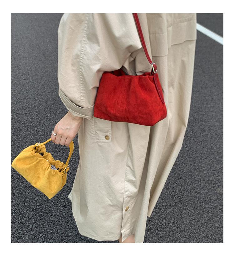 Bolso de mano nicho de alta gama pequeño bolso tote para mujer 2025 nuevo bolso cubo simple de gamuza bolso bandolera versátil