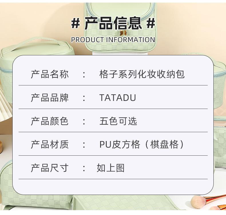 2025 Bolsa de Almacenamiento de Cosméticos de Gran Capacidad Patrón de Cuadros Bolsa de Maquillaje Impermeable Bolsa de Aseo Portátil Impermeable Portátil