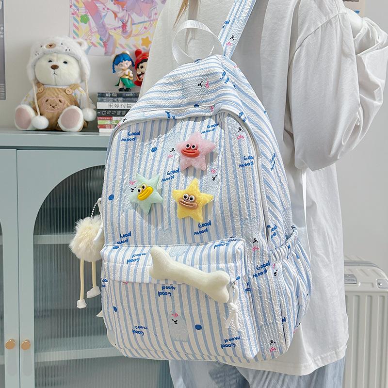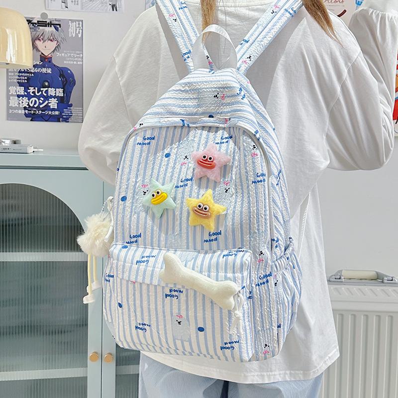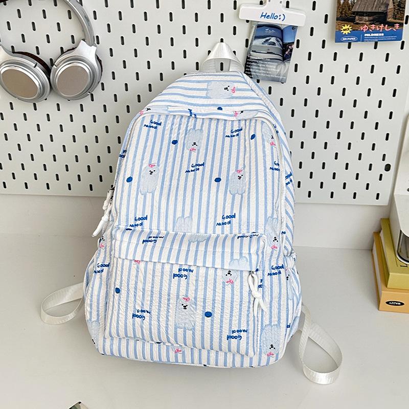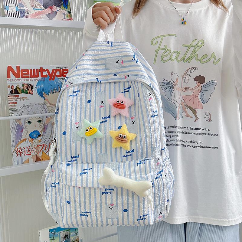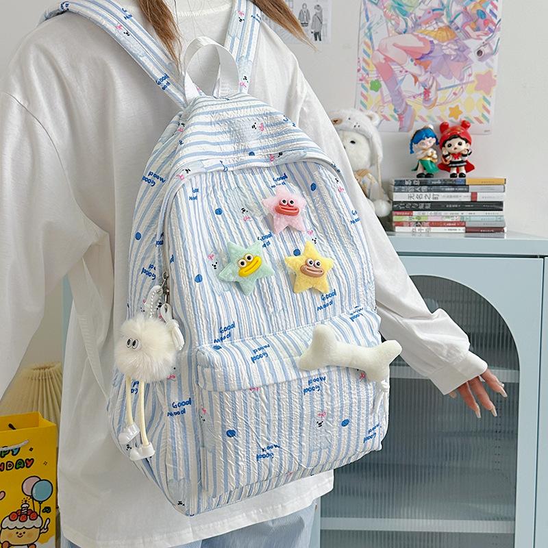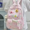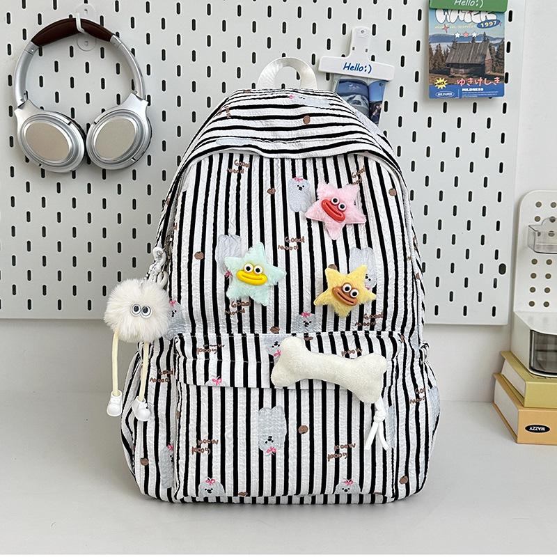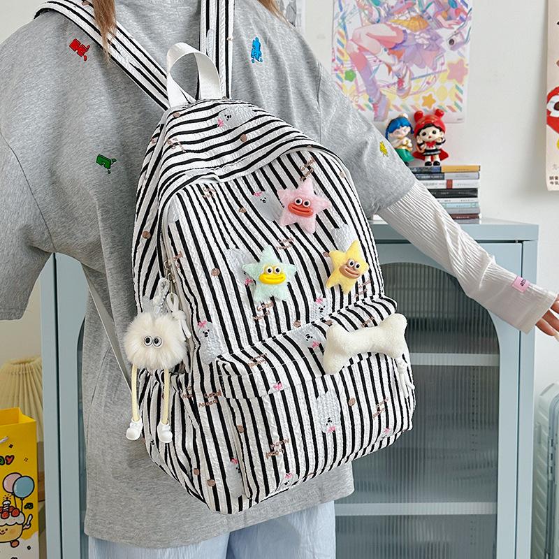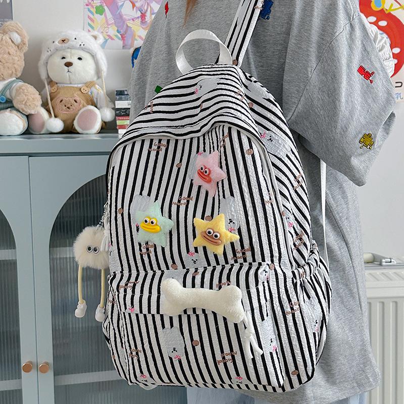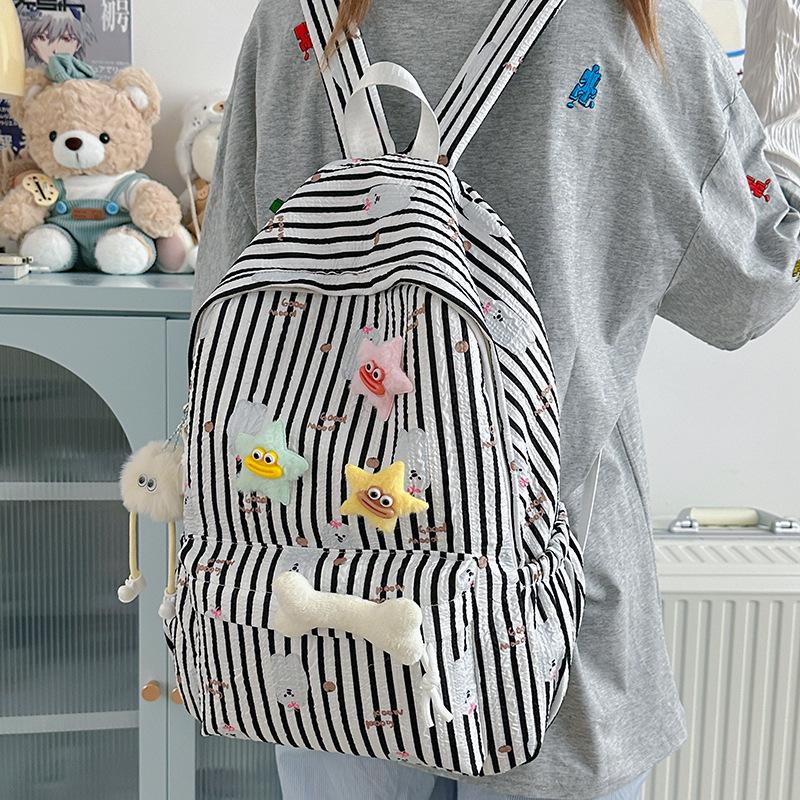 Mochila Mujer estilo ins 2025 Nueva Pequeña Fresca Rayada Gran Capacidad Mochila de Viaje Mochila Estudiante Secundaria