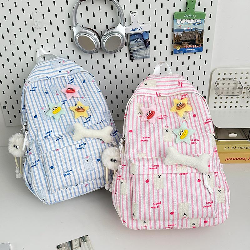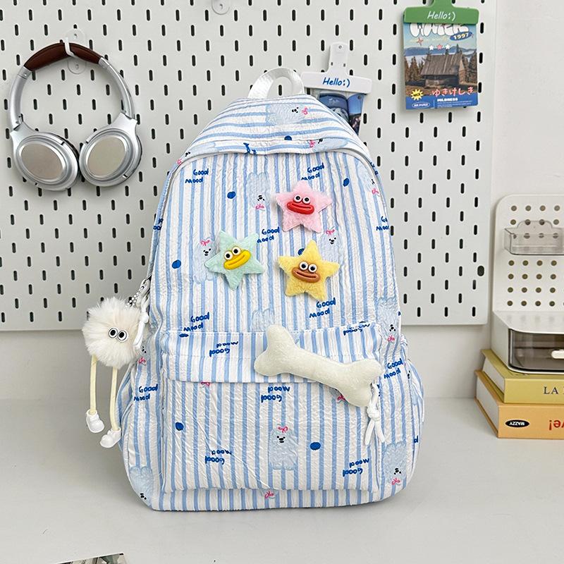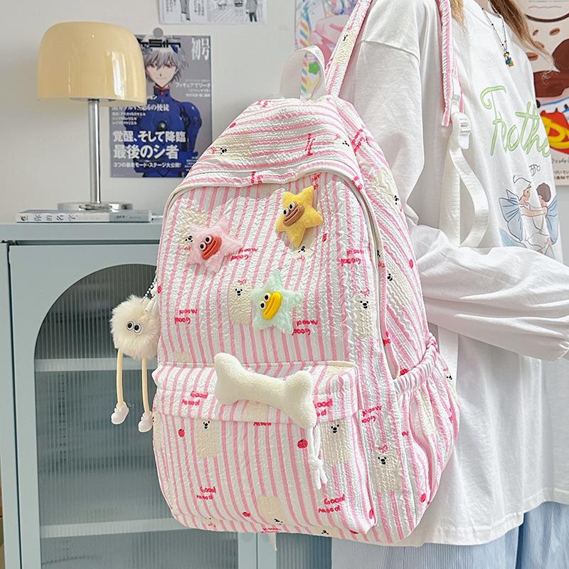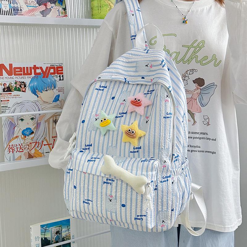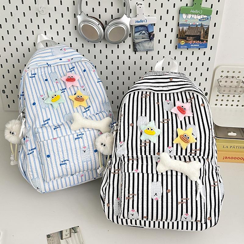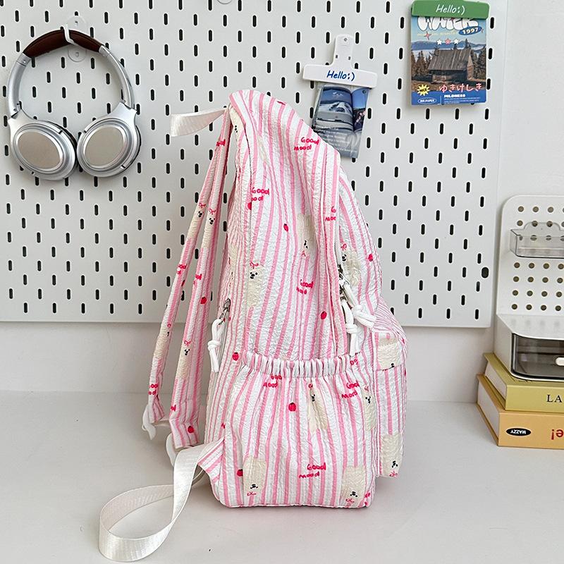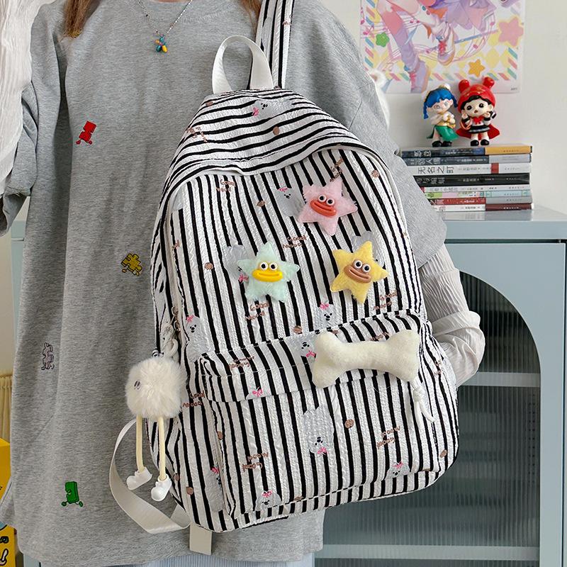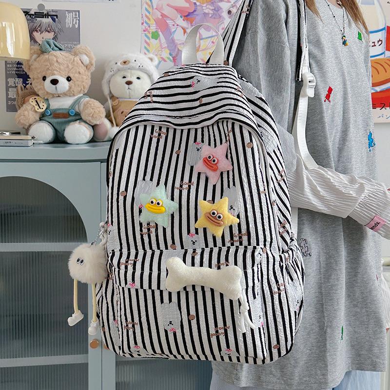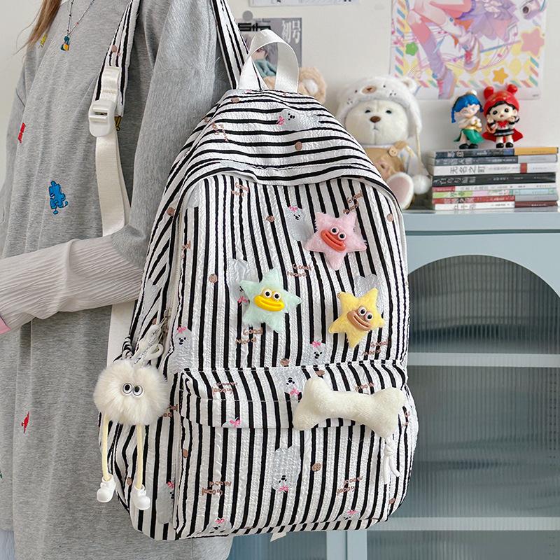 Mochila Mujer estilo ins 2025 Nueva Pequeña Fresca Rayada Gran Capacidad Mochila de Viaje Mochila Estudiante Secundaria