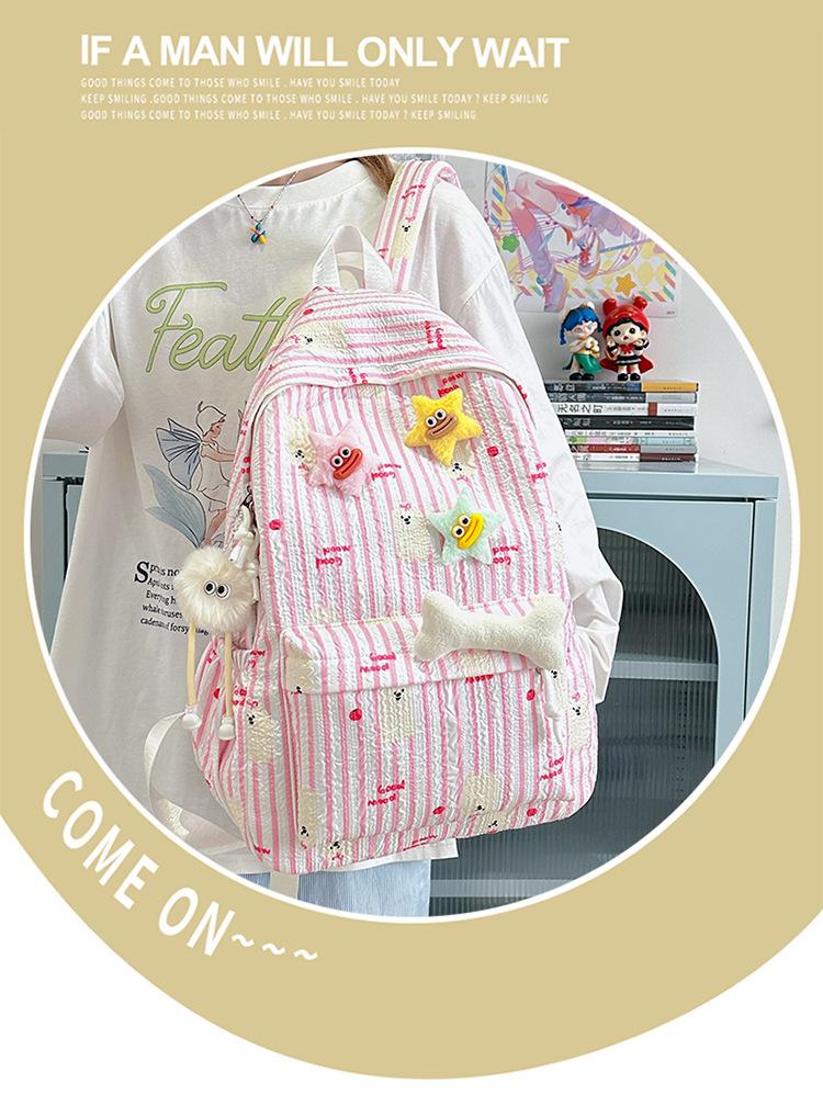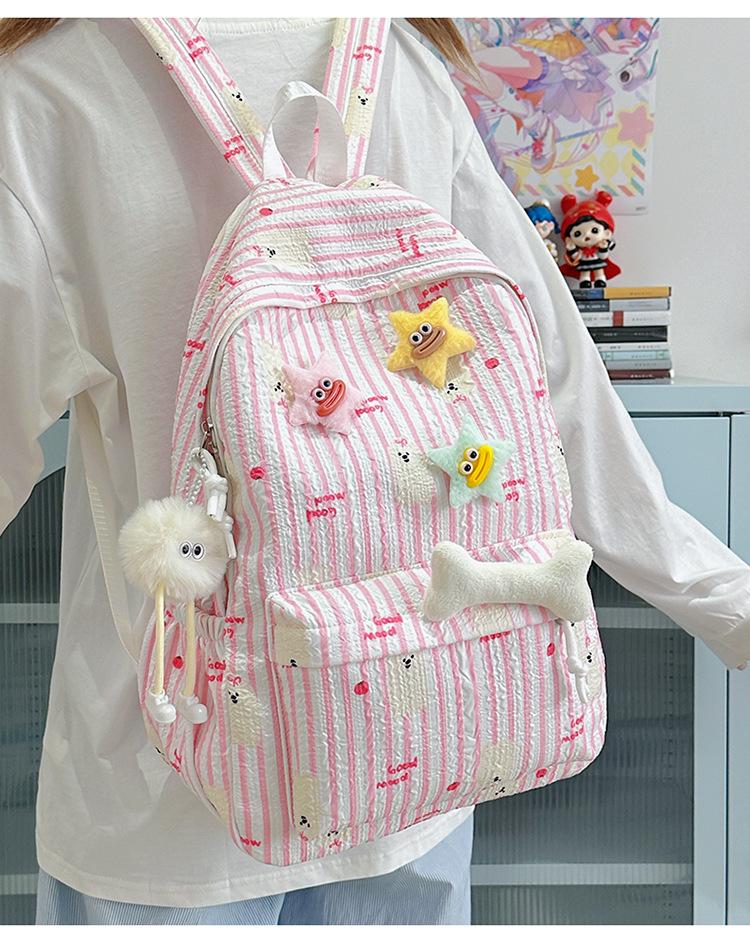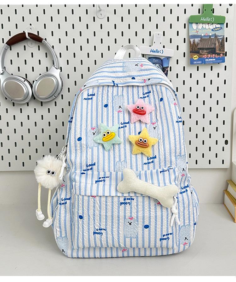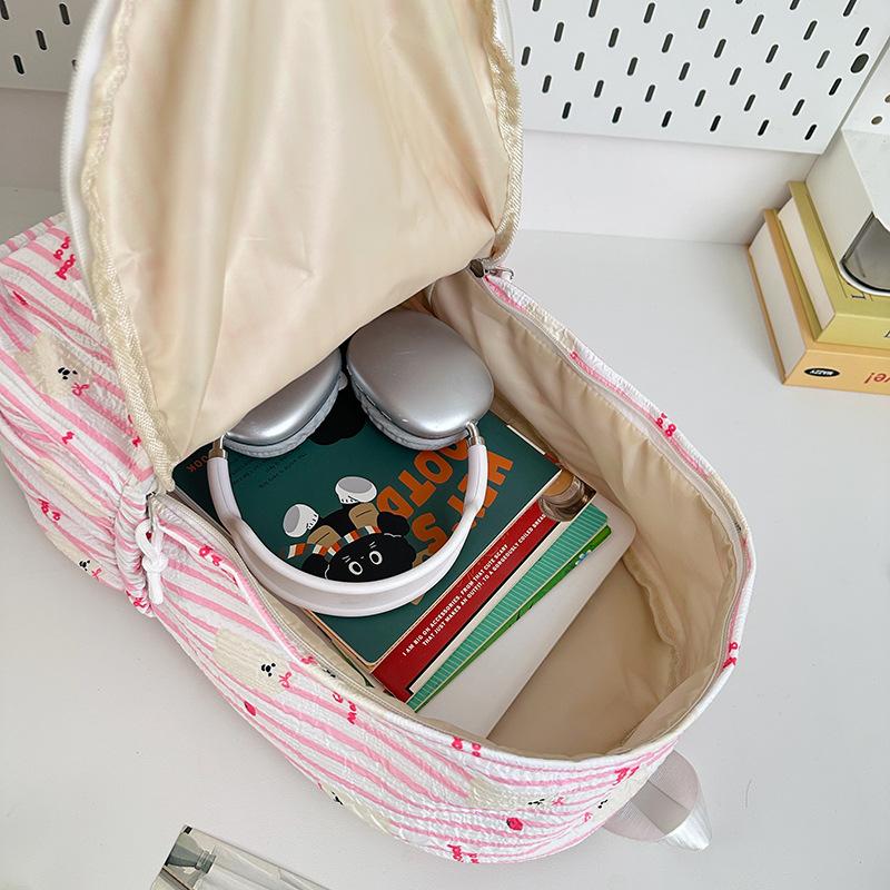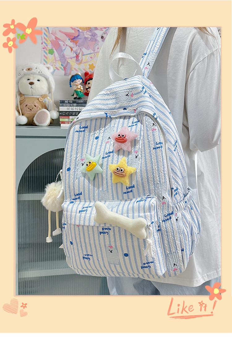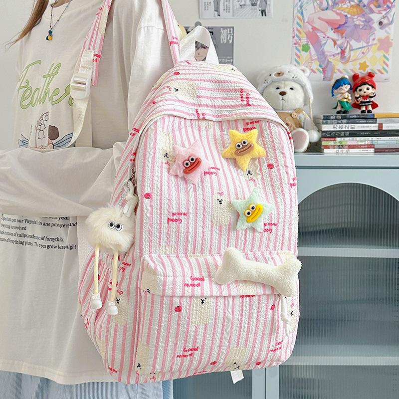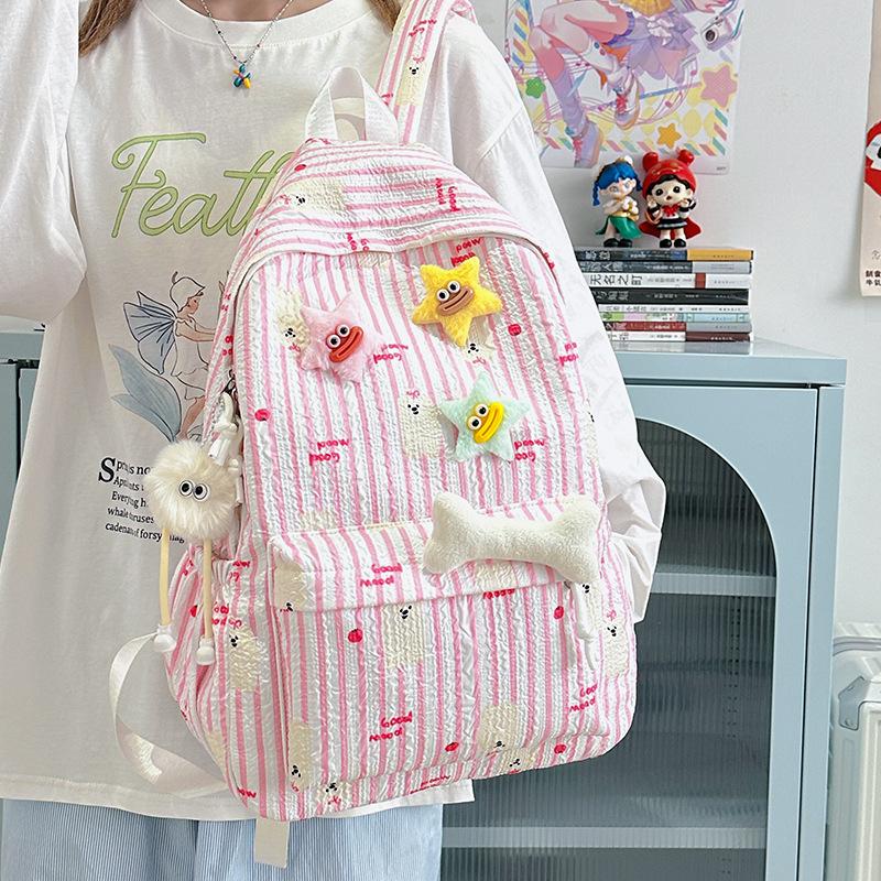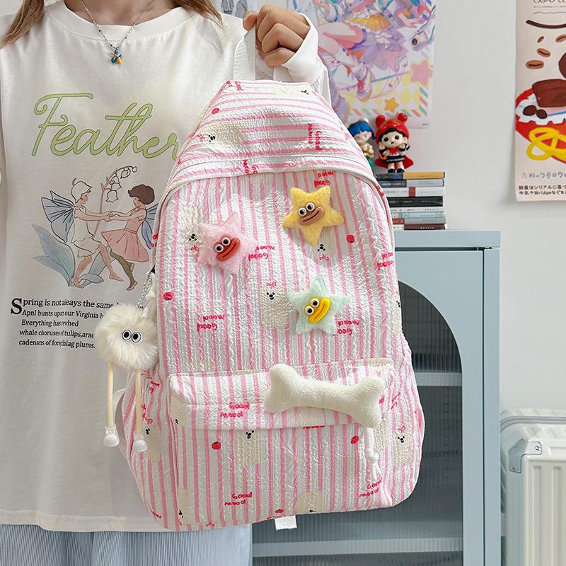 Mochila Mujer estilo ins 2025 Nueva Pequeña Fresca Rayada Gran Capacidad Mochila de Viaje Mochila Estudiante Secundaria