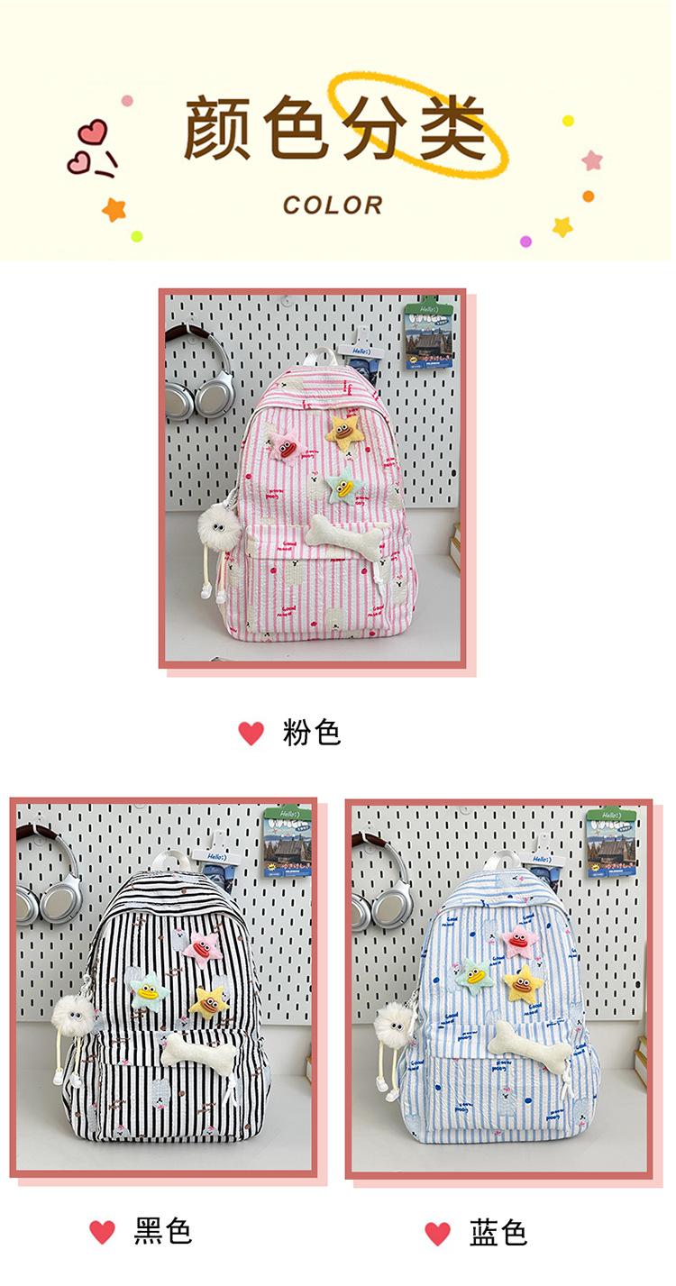 Pink backpack without pendant, Black backpack without accessories, Blue backpack without accessories