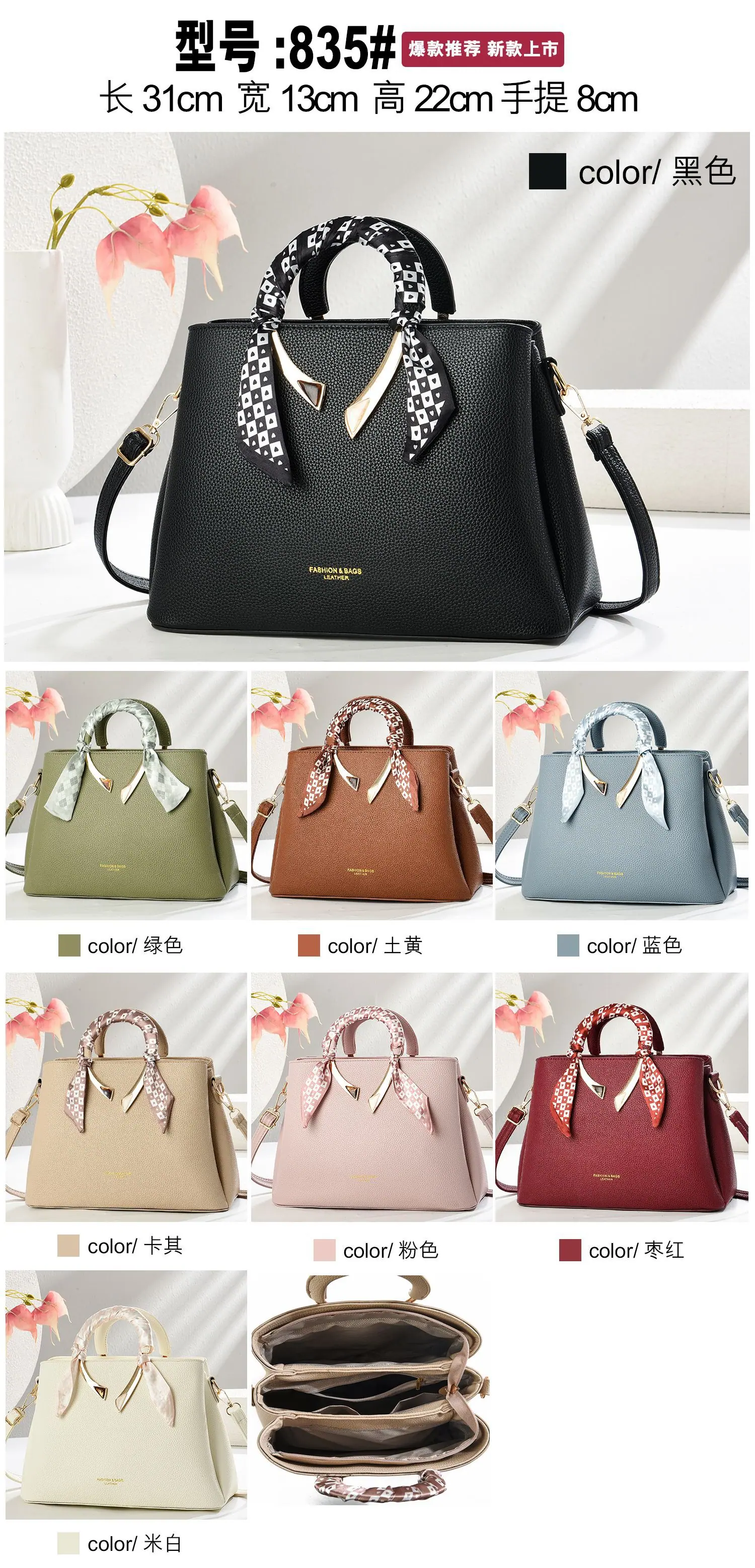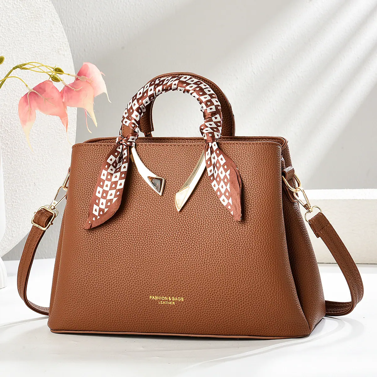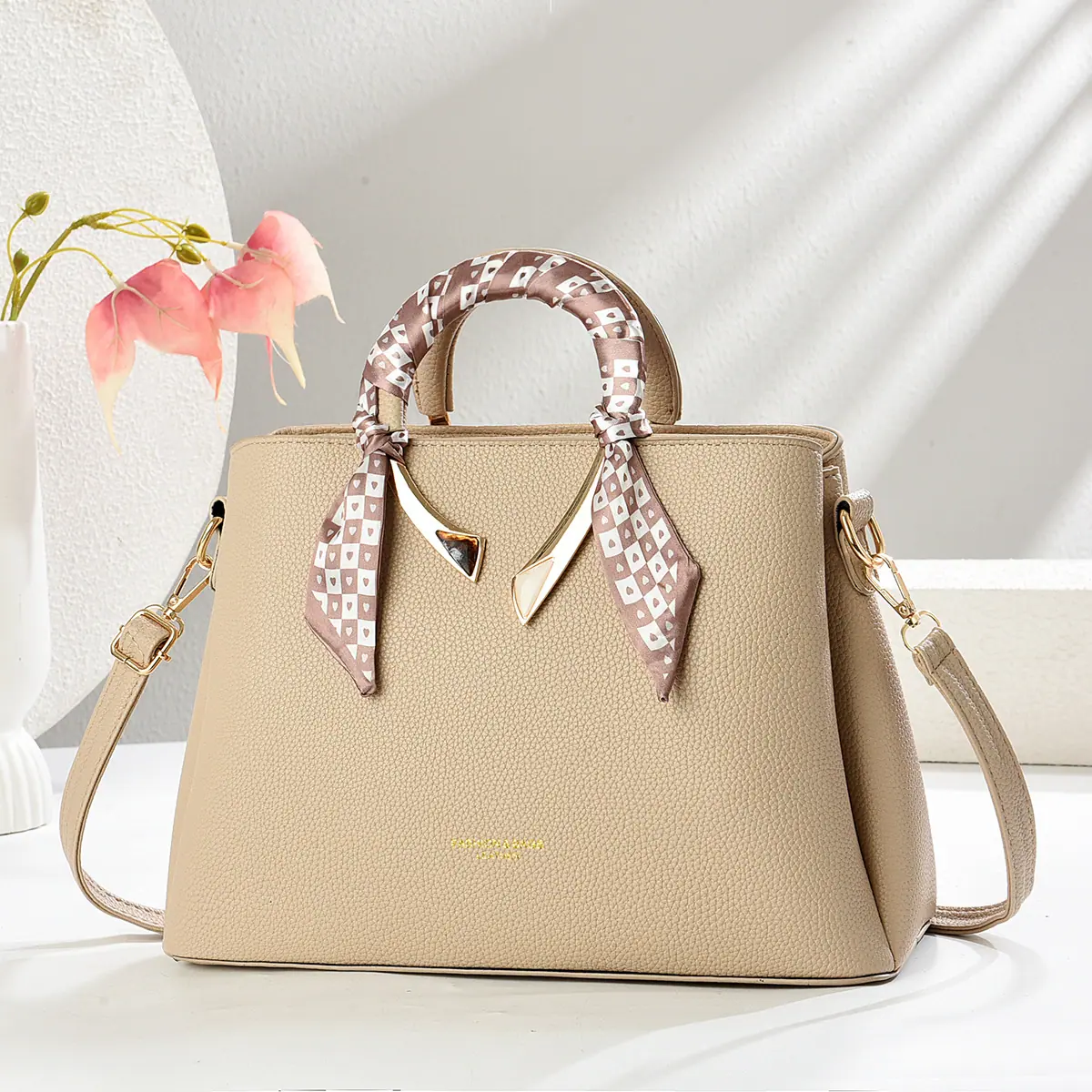 2025 Nuevo Bolso de Mujer Textura Pu Bufanda de Seda Bolso Satchel Bolso Cruzado Gran Capacidad Ropa de Trabajo Bolso Versátil Suministro Directo de Fábrica