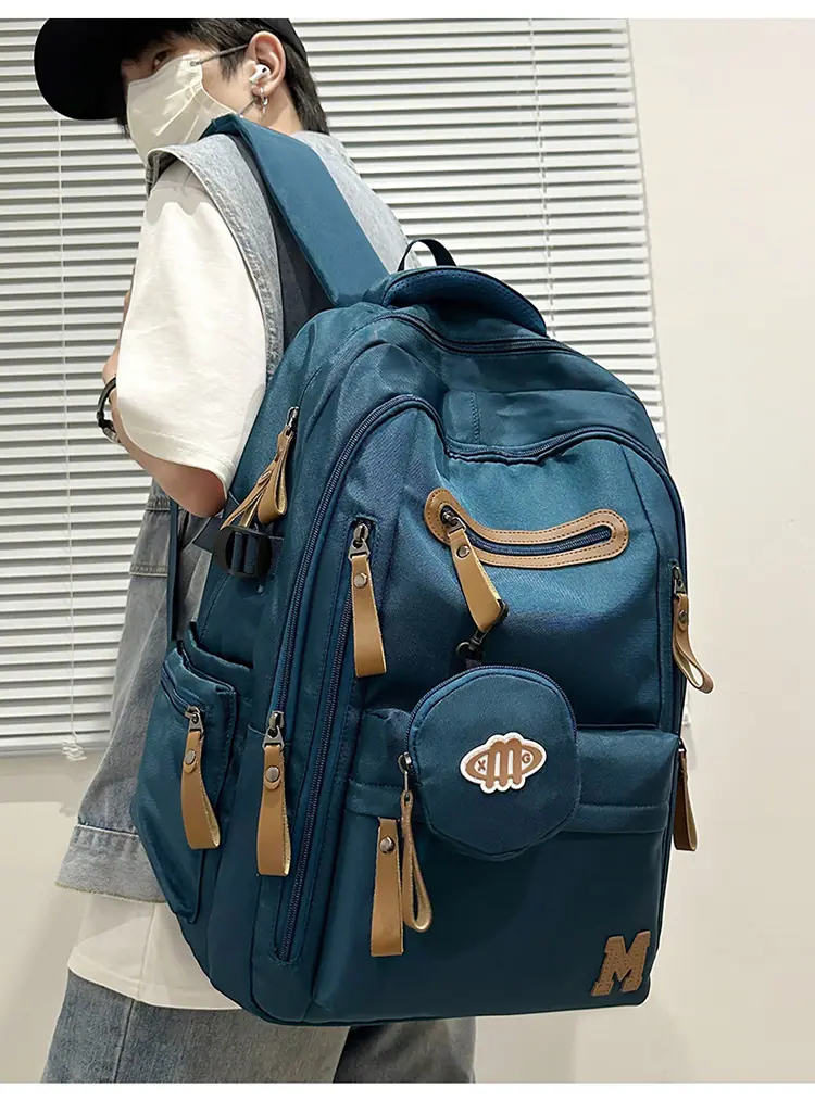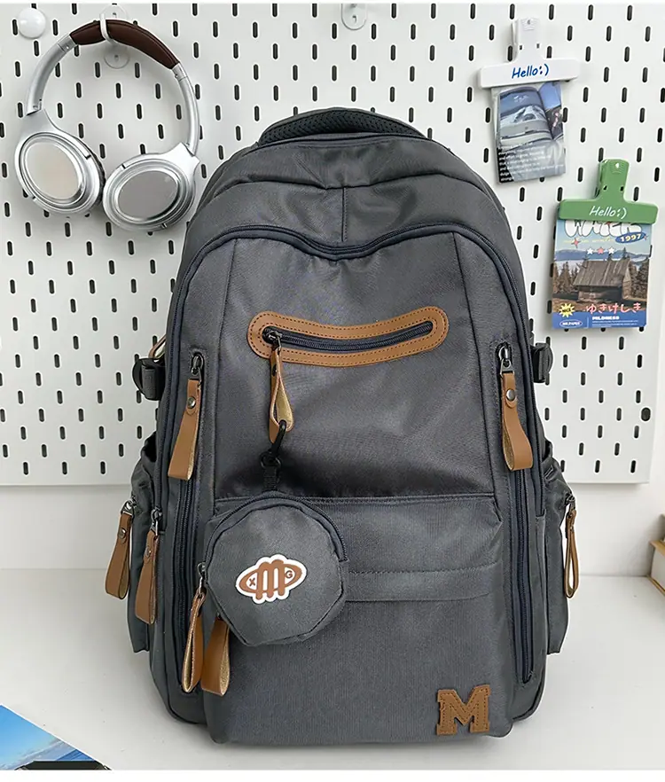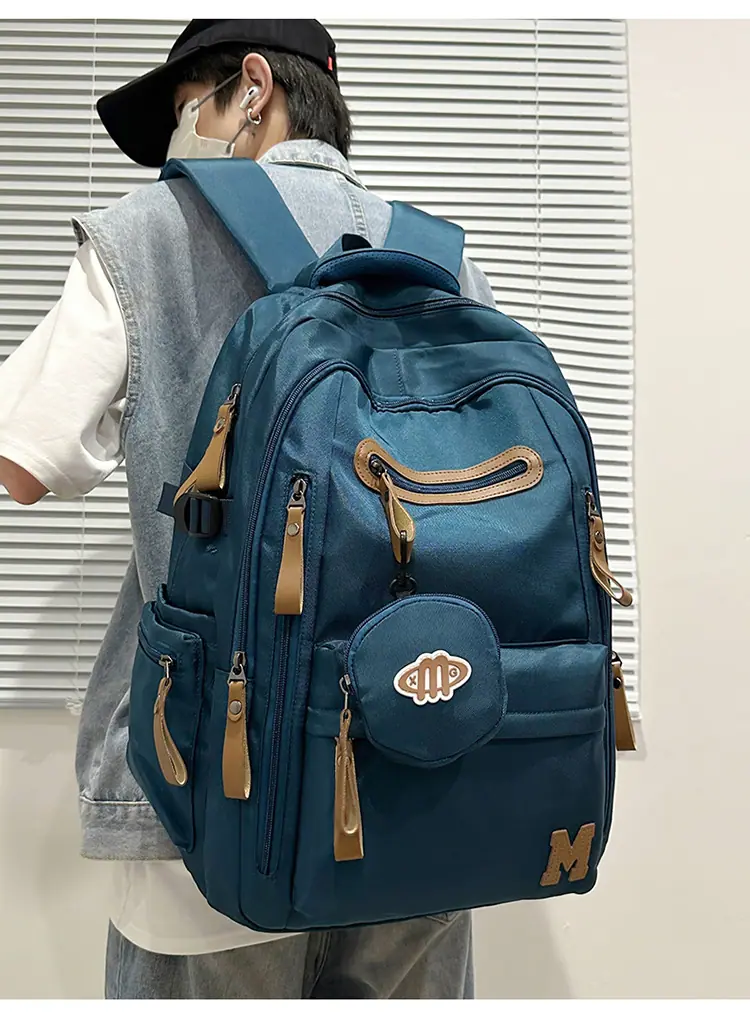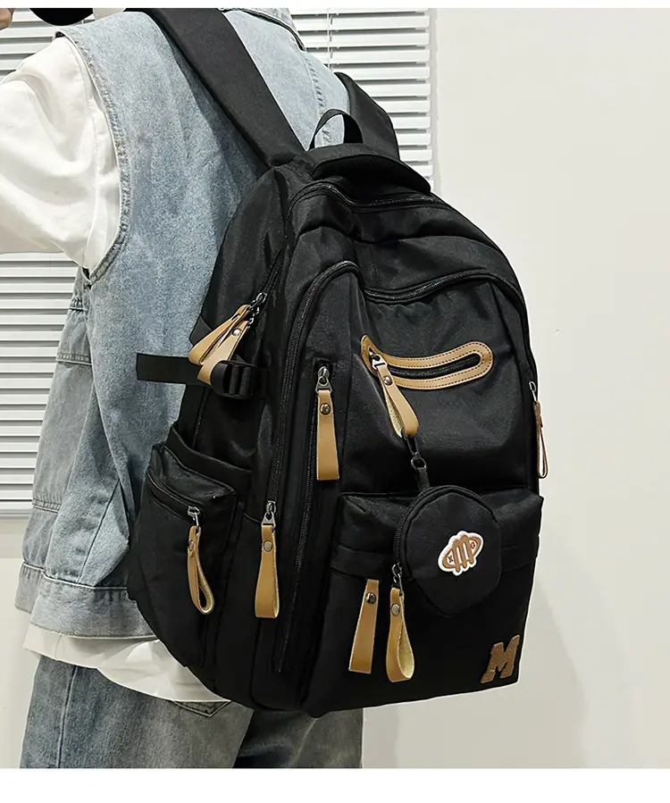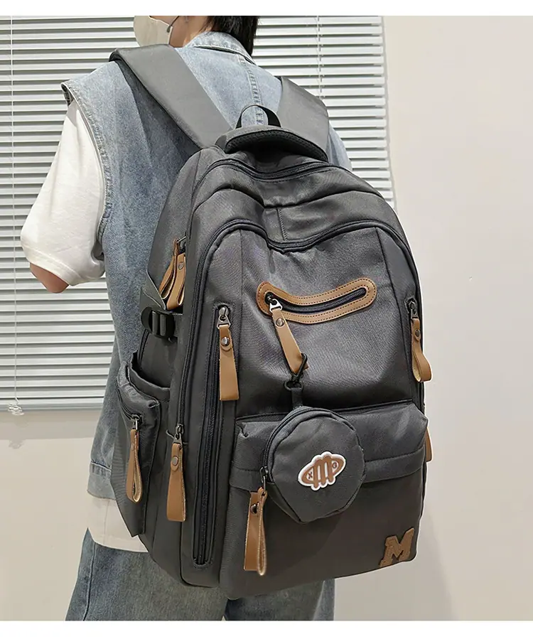 Mochila para estudiantes de secundaria y preparatoria de gran capacidad unisex para ir al trabajo, mochila para computadora de nailon, mochila sencilla e informal