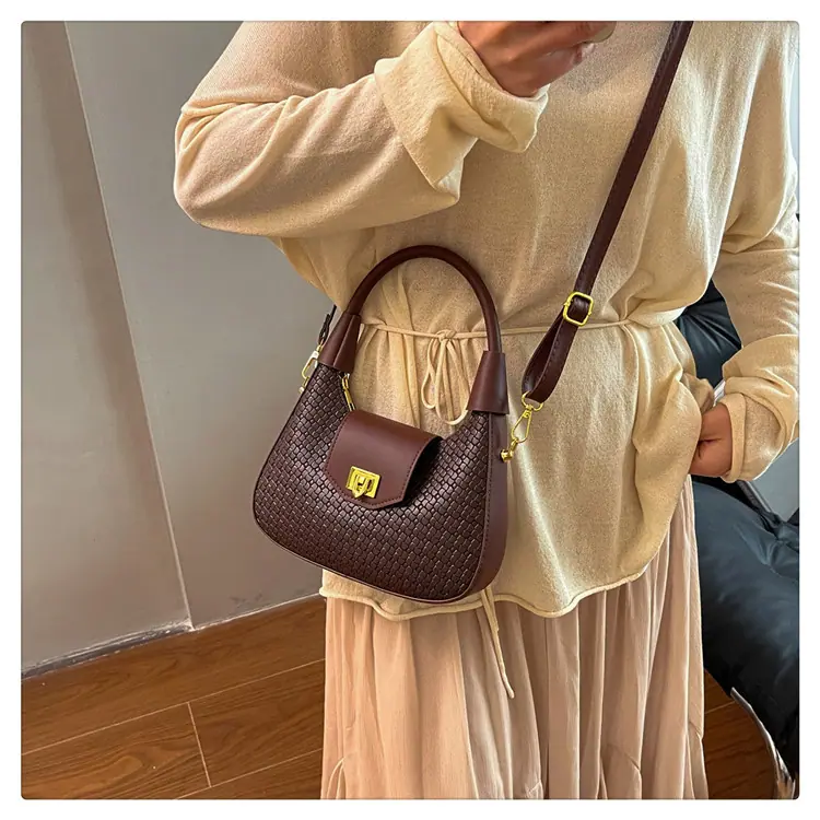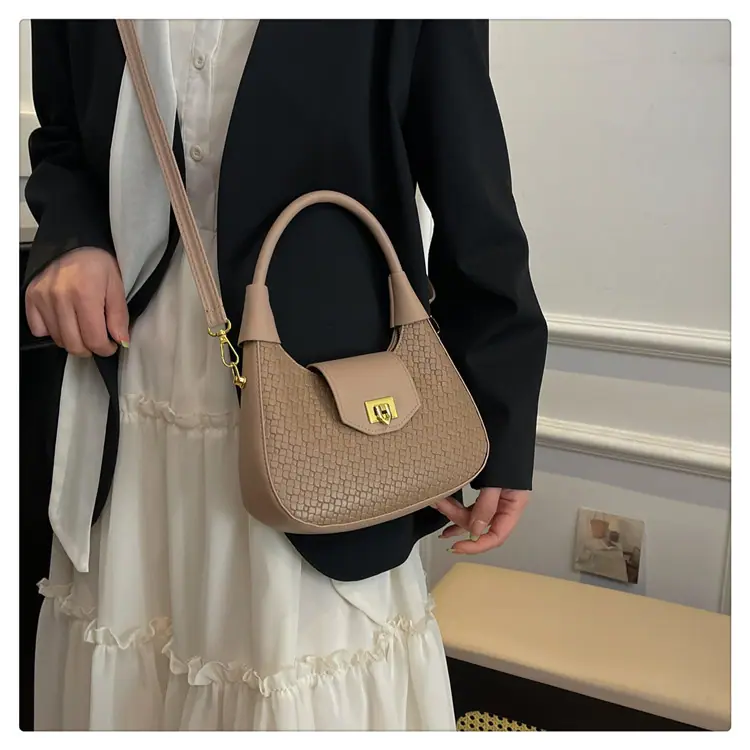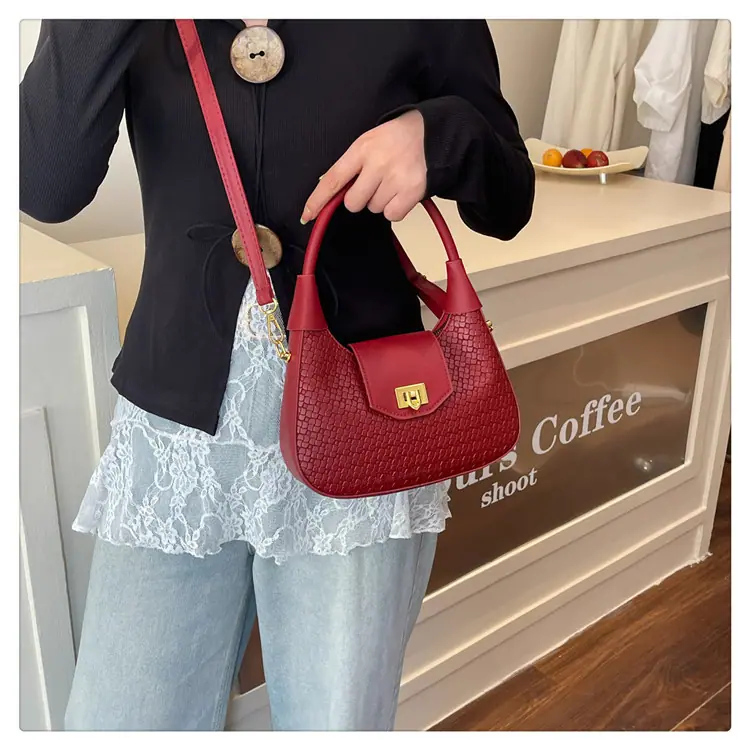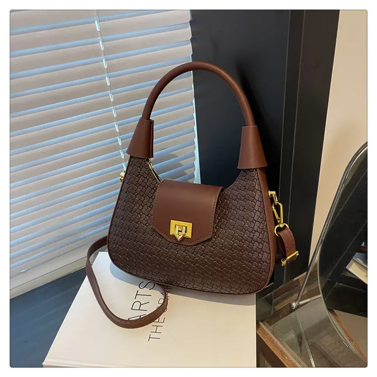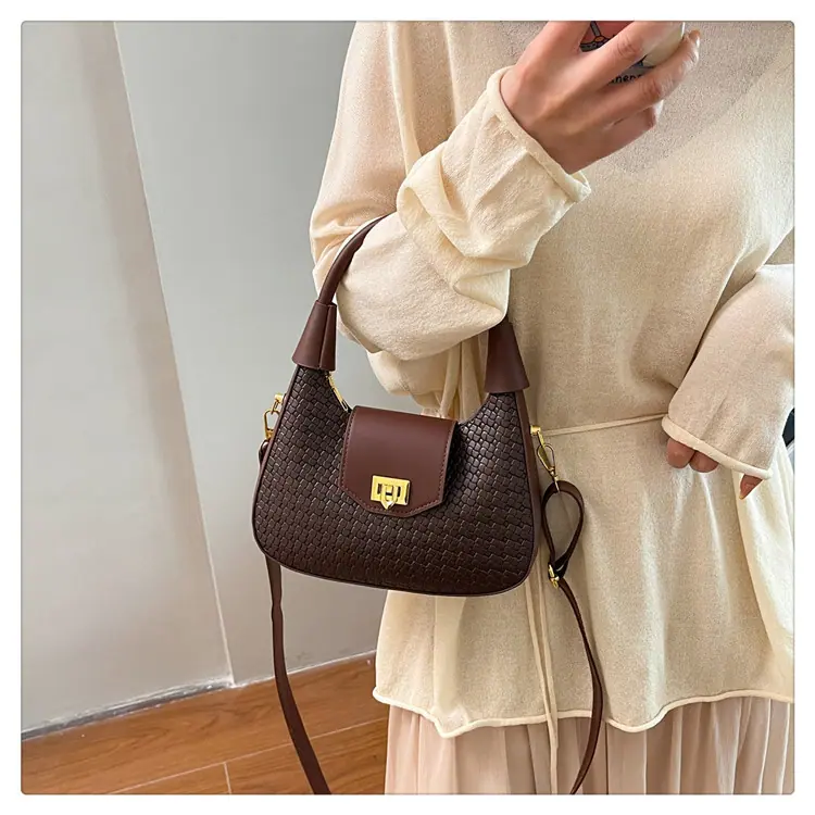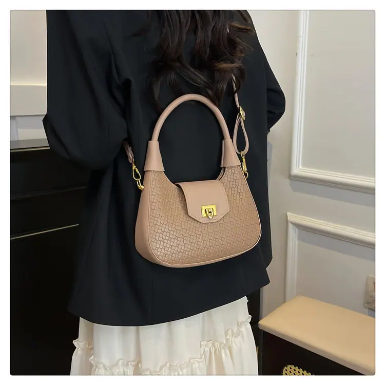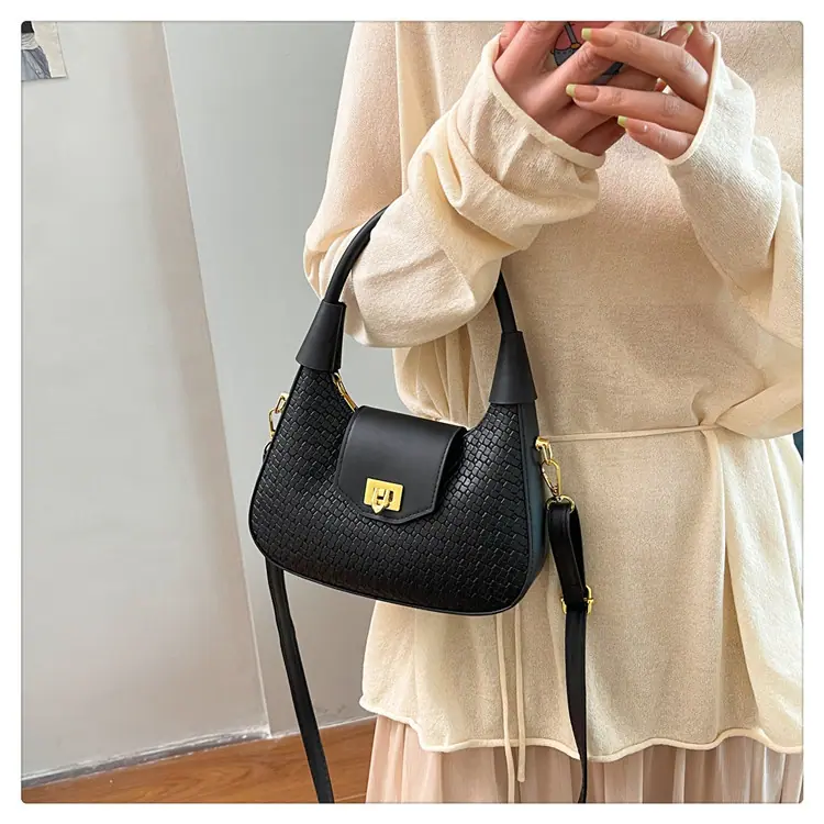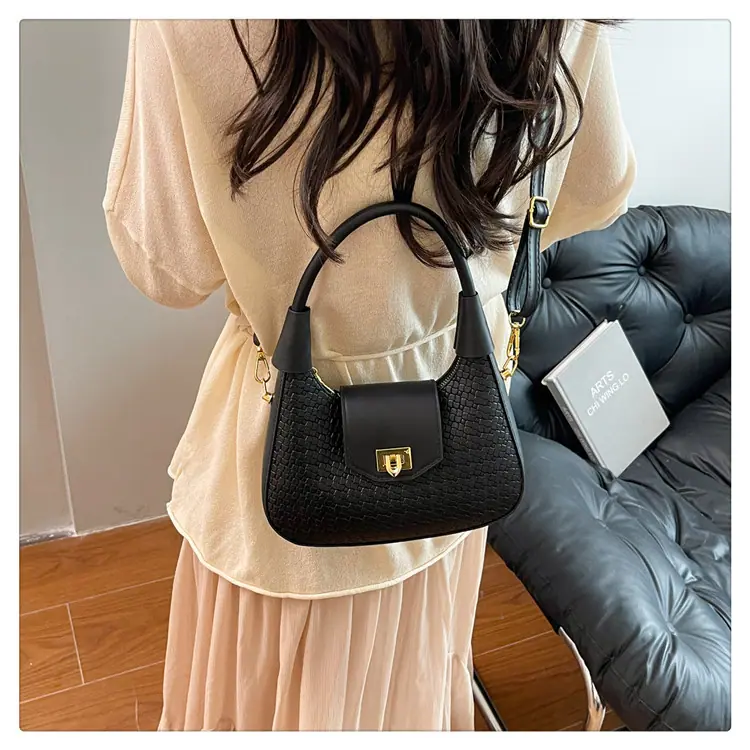 Bolso pequeño de axila con textura de otoño para mujer 2025 nuevo bolso media luna con patrón tejido de personalidad moda retro bolso cruzado