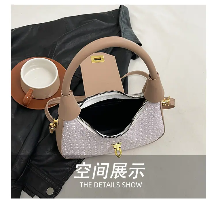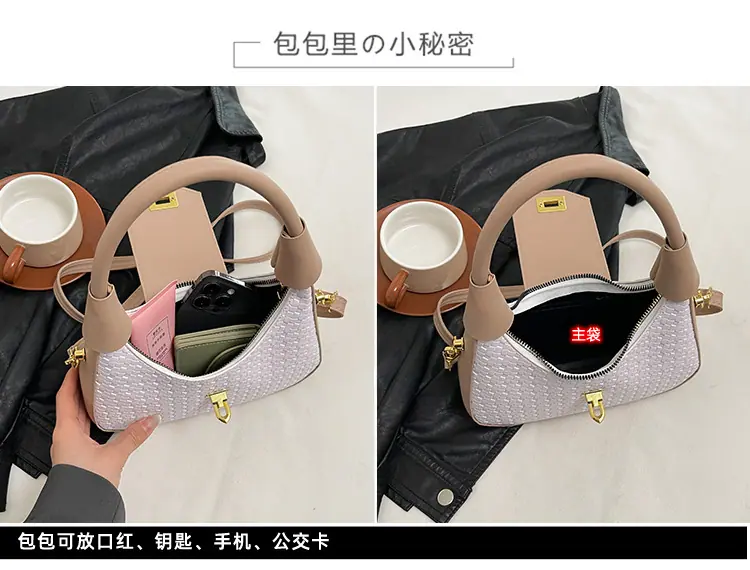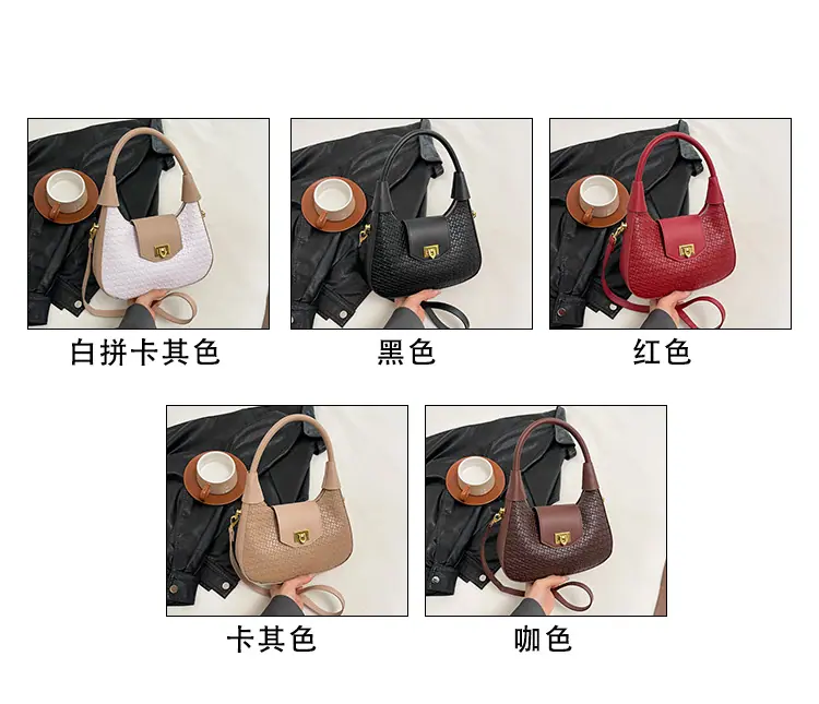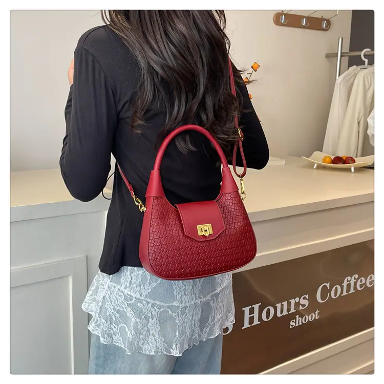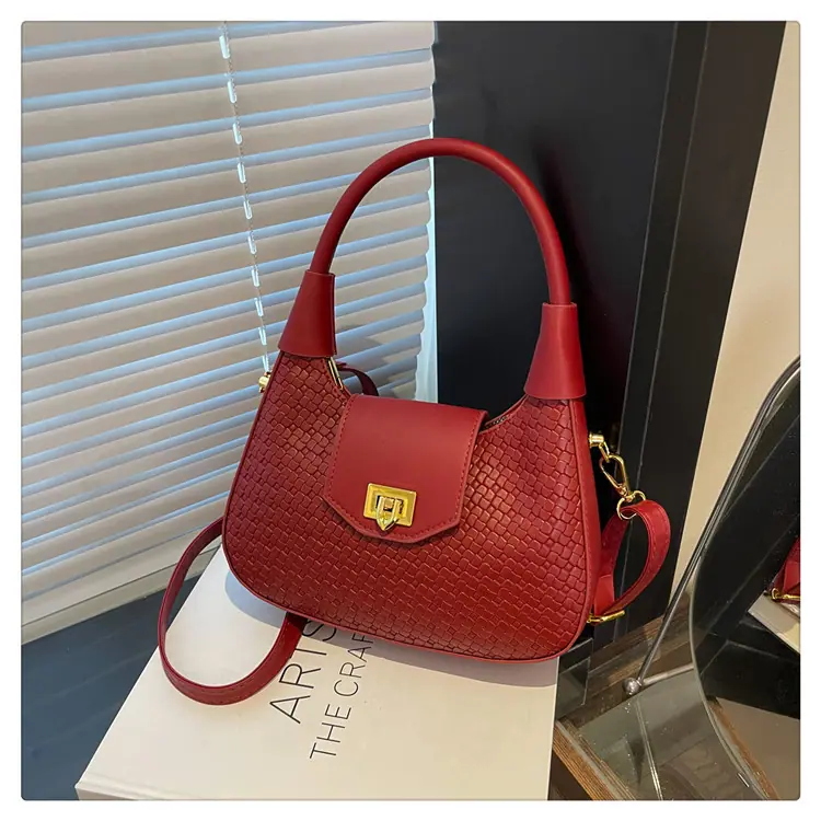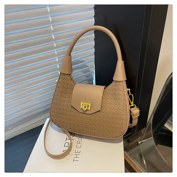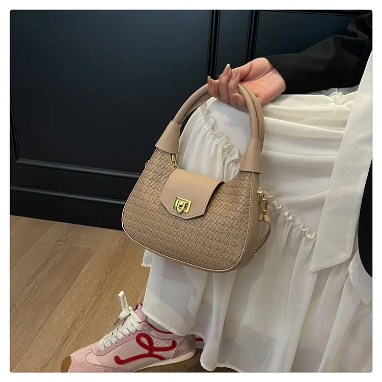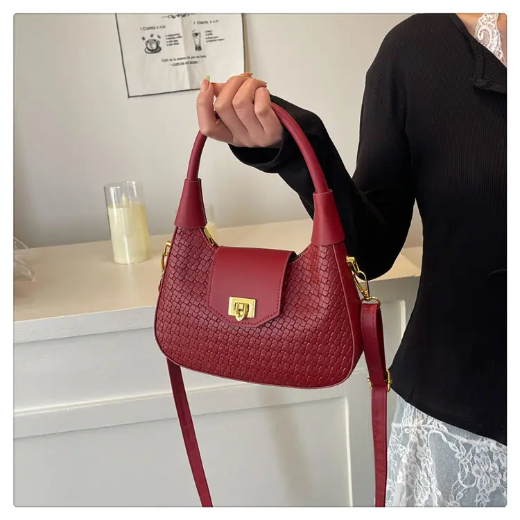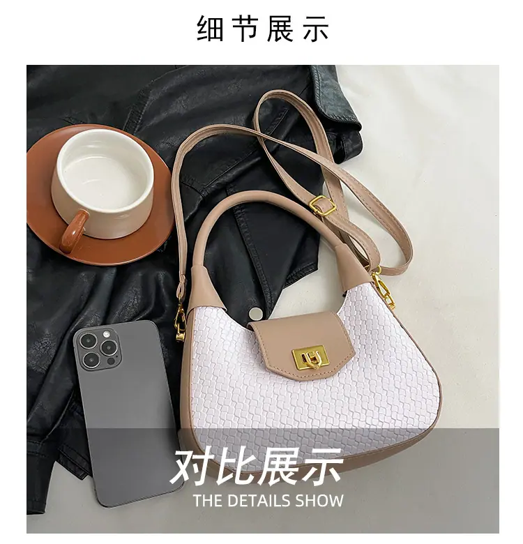 Bolso pequeño de axila con textura de otoño para mujer 2025 nuevo bolso media luna con patrón tejido de personalidad moda retro bolso cruzado