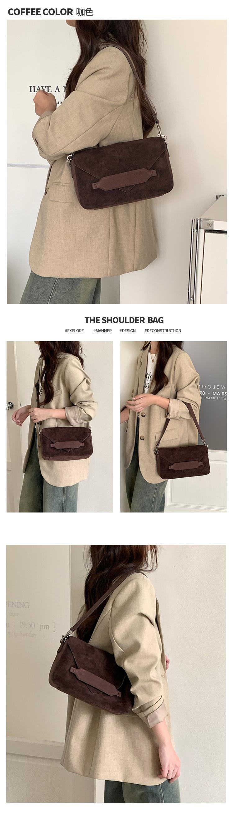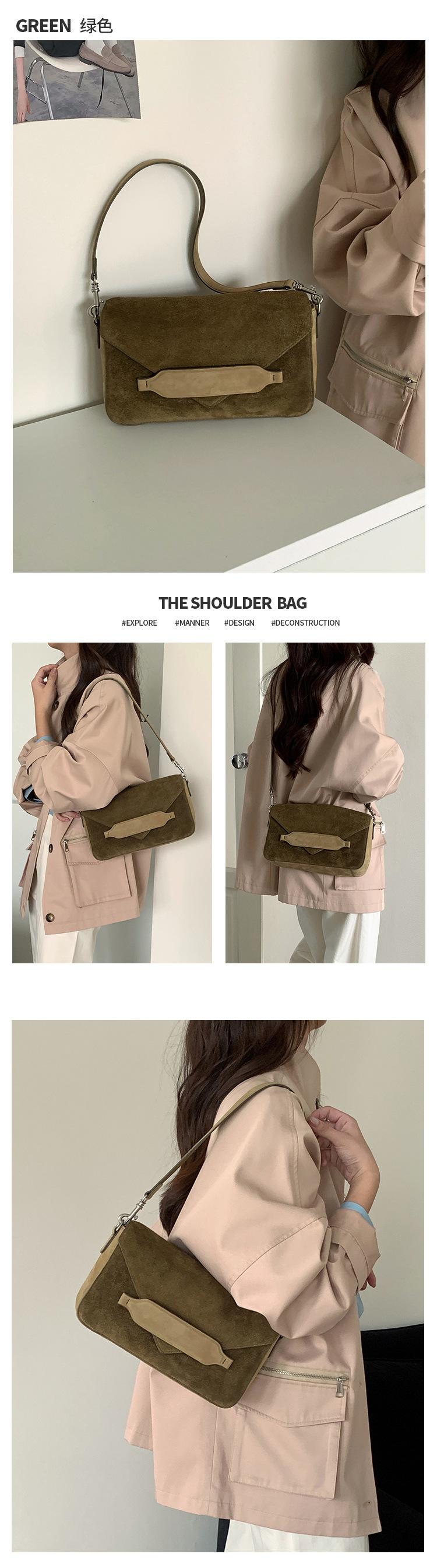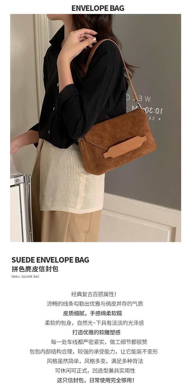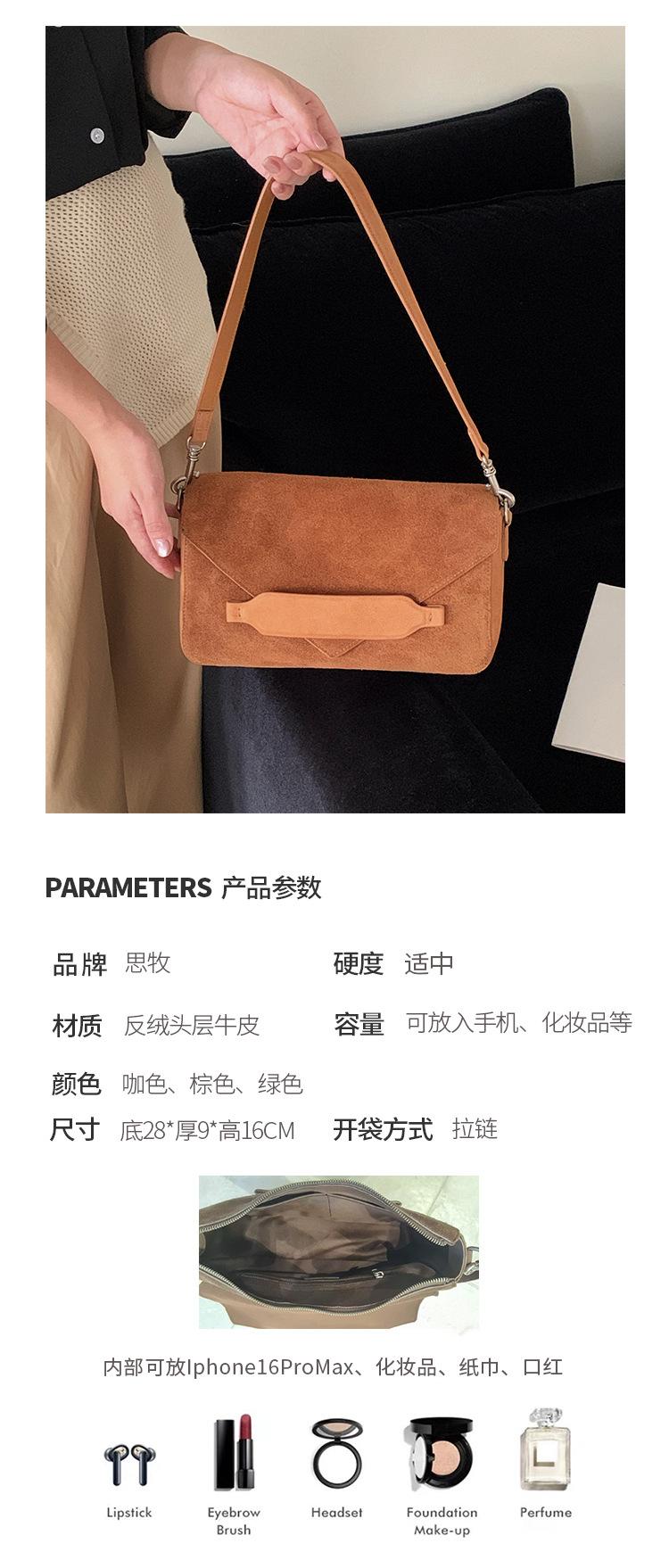 Capa Superior Piel Vacuna Nicho Bloque de Color Estilo Retro Sobre de Ante Bolso Bandolera de Cuero Genuino Estilo Nuevo 2025 Bolso Cuadrado Pequeño de Axila
