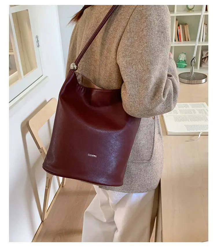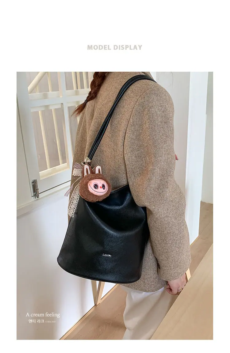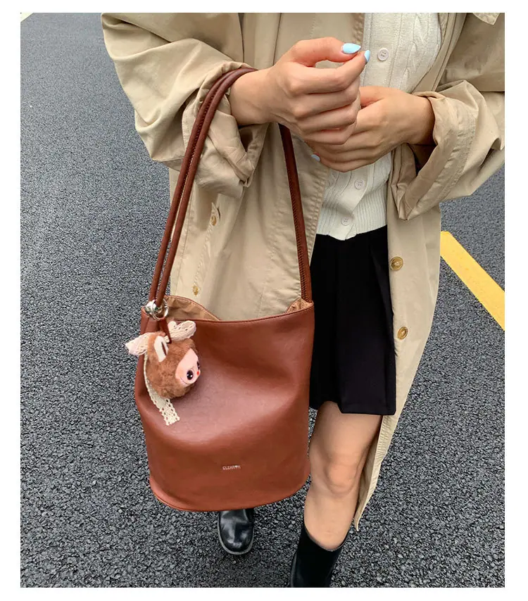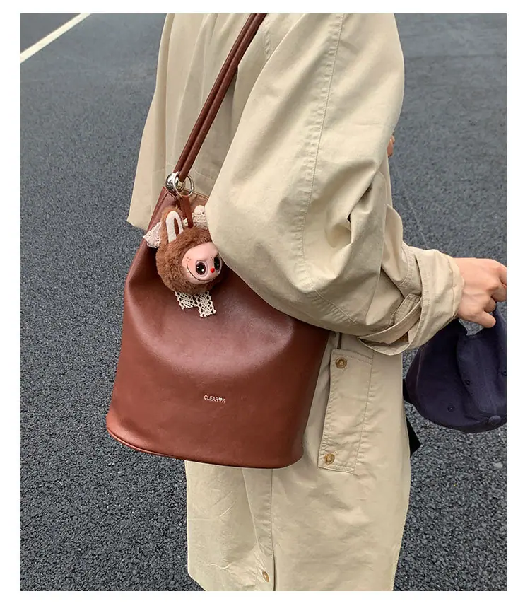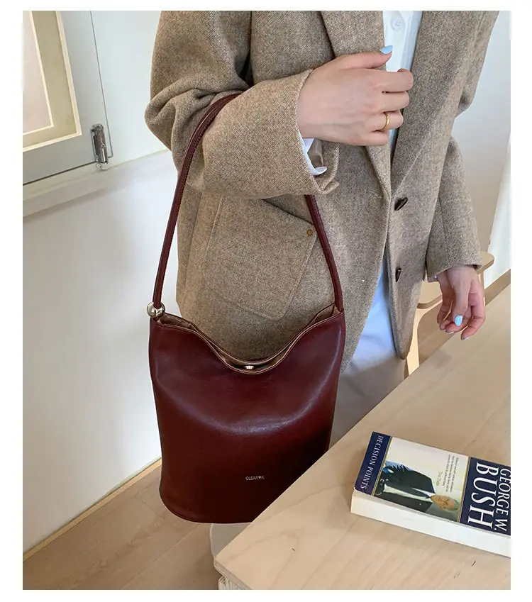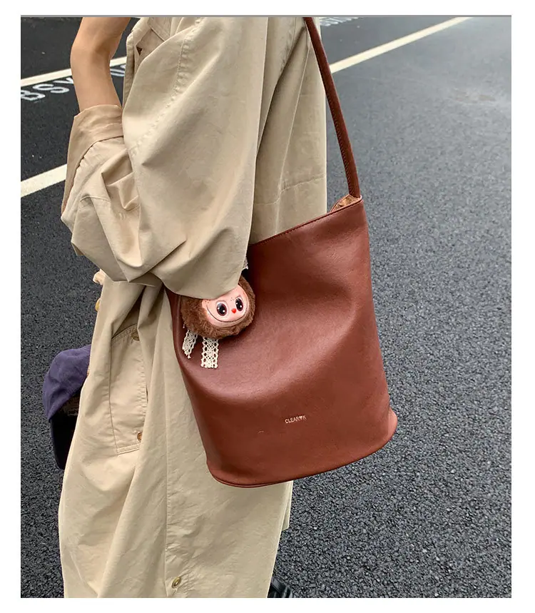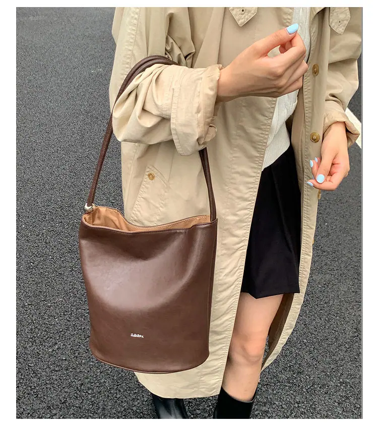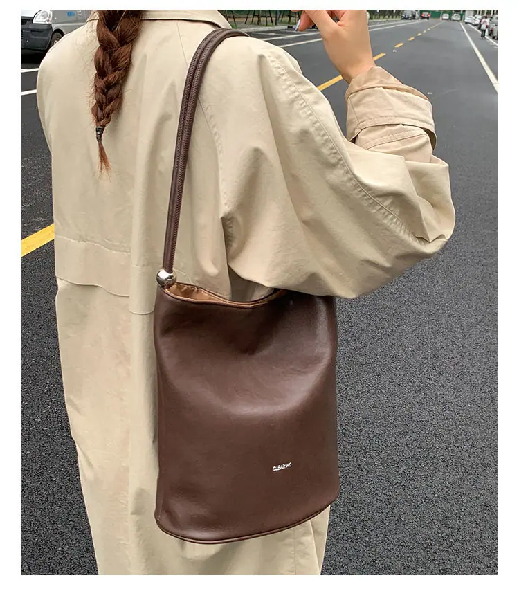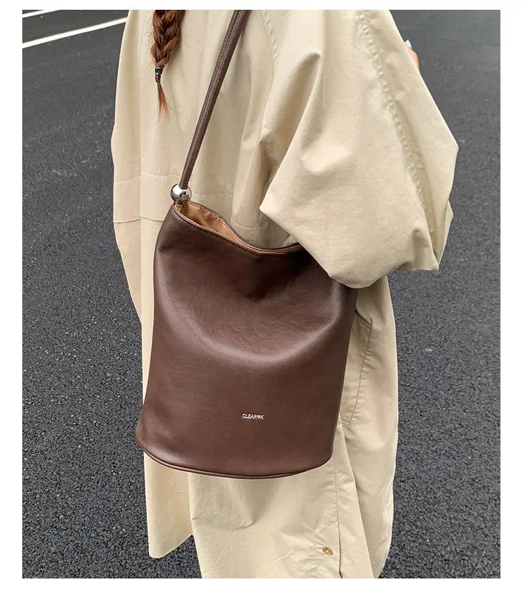 Bolso de mano retro transfronterizo moda bolso de cubo bolso mujeres 2025 nuevo versión coreana bolso de hombro versátil para ir al trabajo bolso cruzado