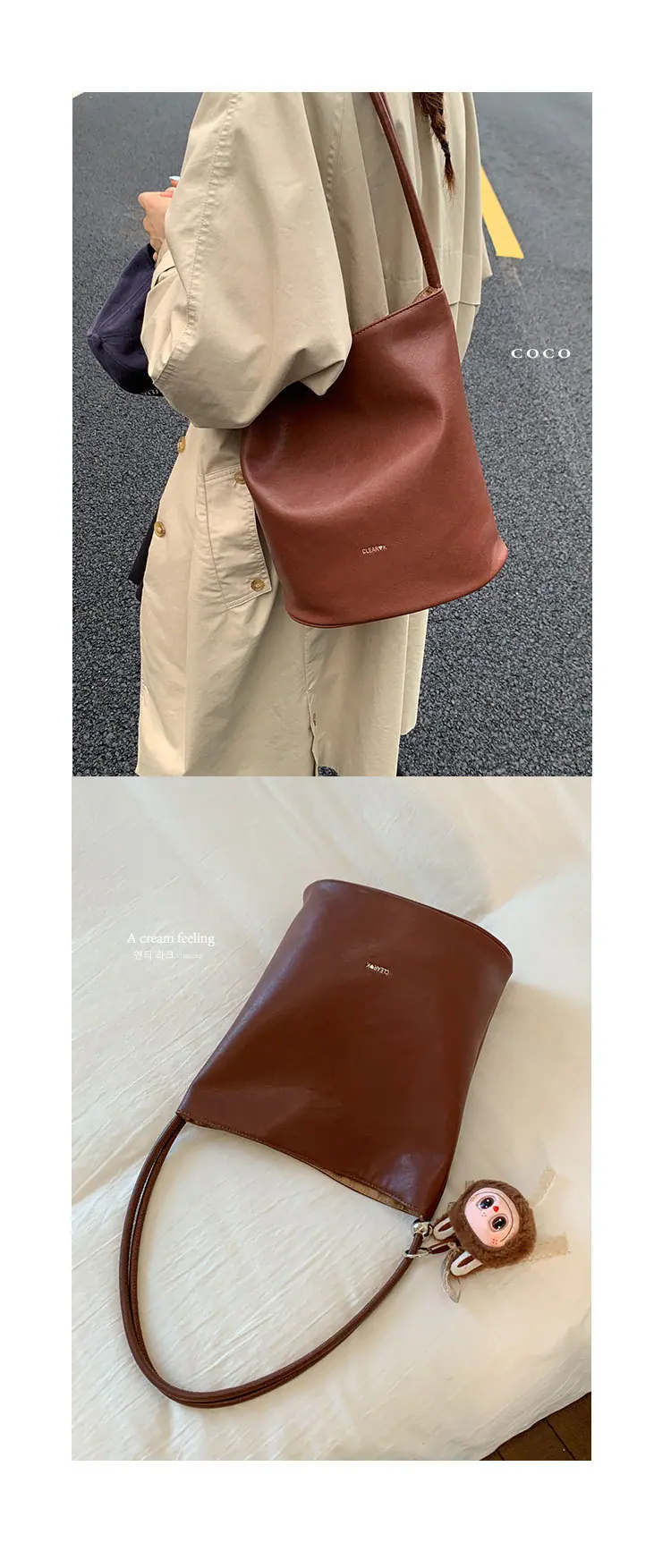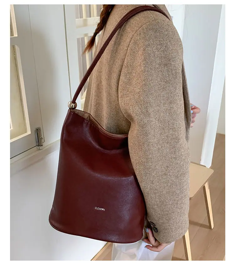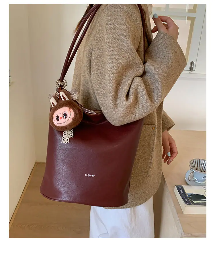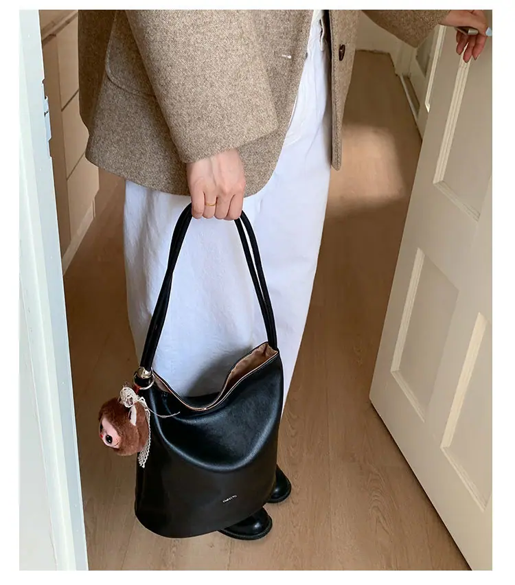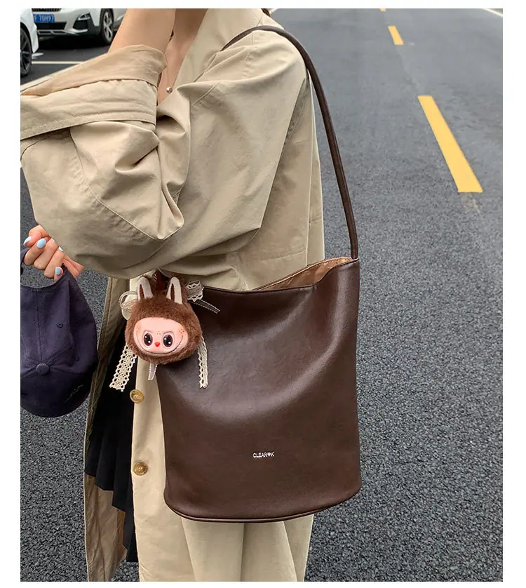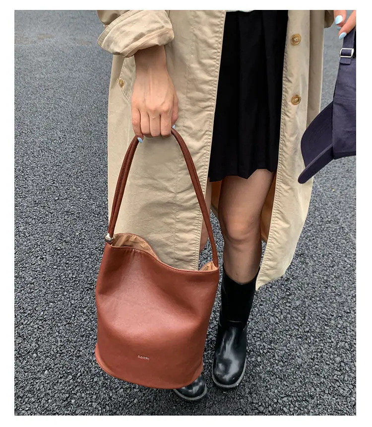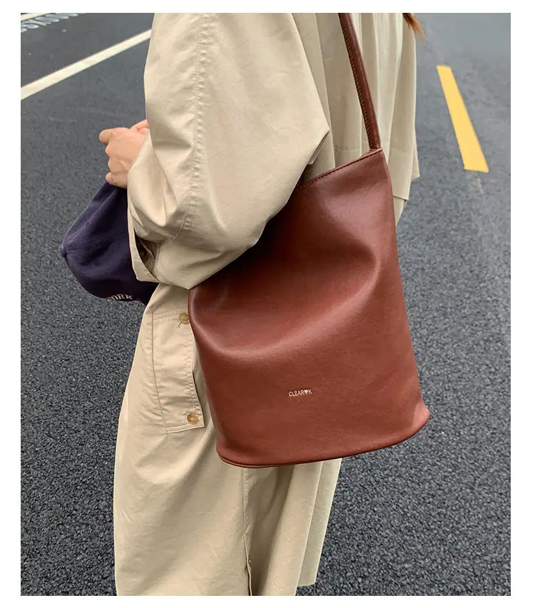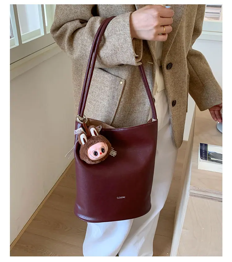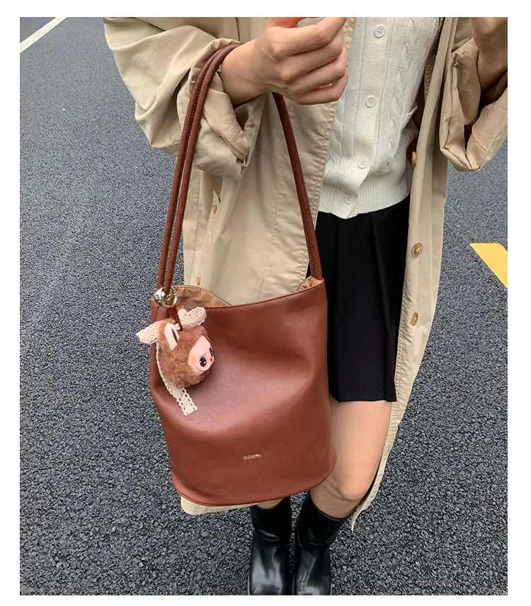 Bolso de mano retro transfronterizo moda bolso de cubo bolso mujeres 2025 nuevo versión coreana bolso de hombro versátil para ir al trabajo bolso cruzado