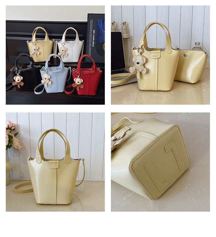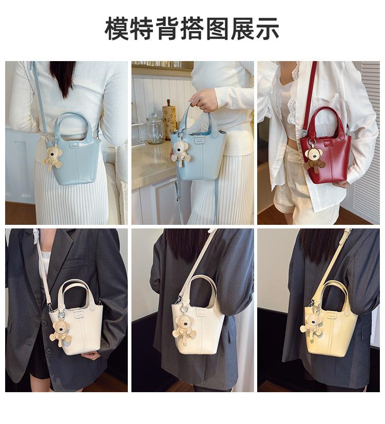 Bolso de Mujer de Moda Retro Versátil Bolso de Cubo de Alta Gama Bolso de Mano para Dama Gran Capacidad Casual de Hombro/Bandolera