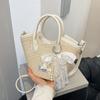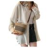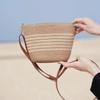 Bolso de paja de nicho para mujer, tejido, para vacaciones, cruzado, moda versátil, tipo cubo, playa, hombro, tote, con cremallera ins