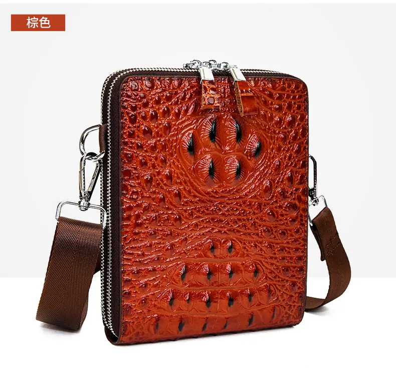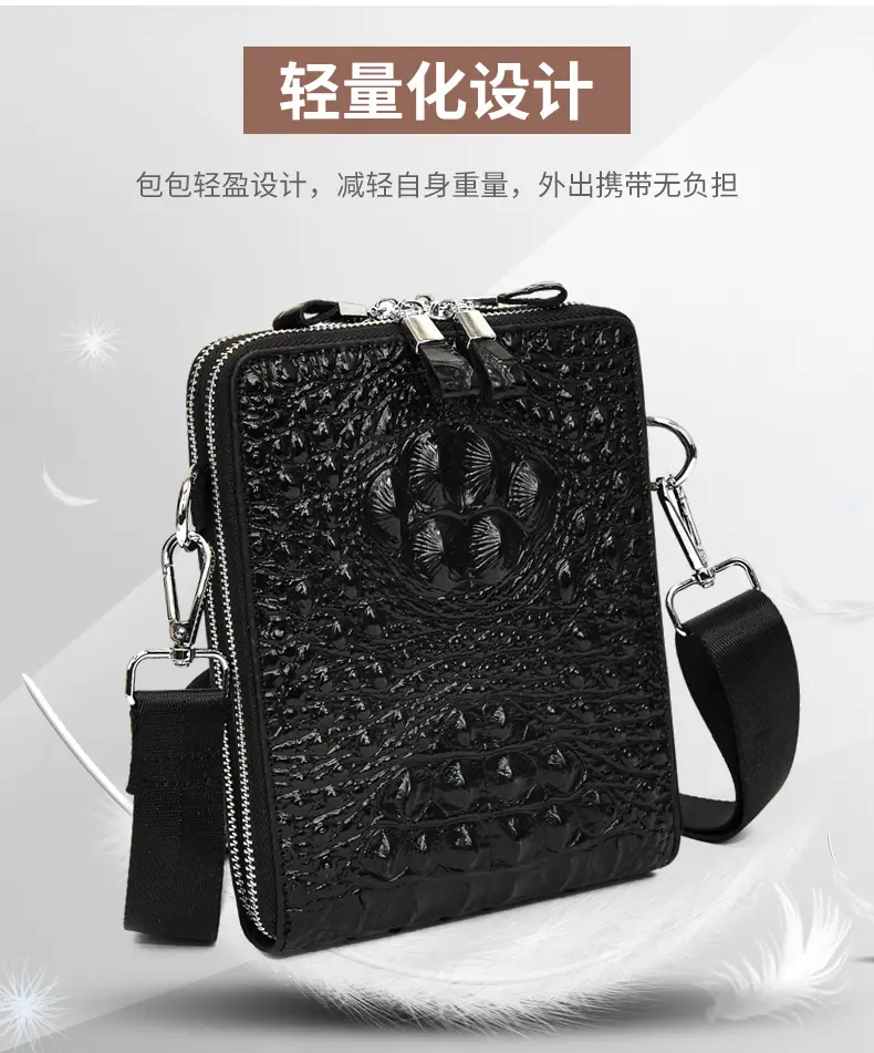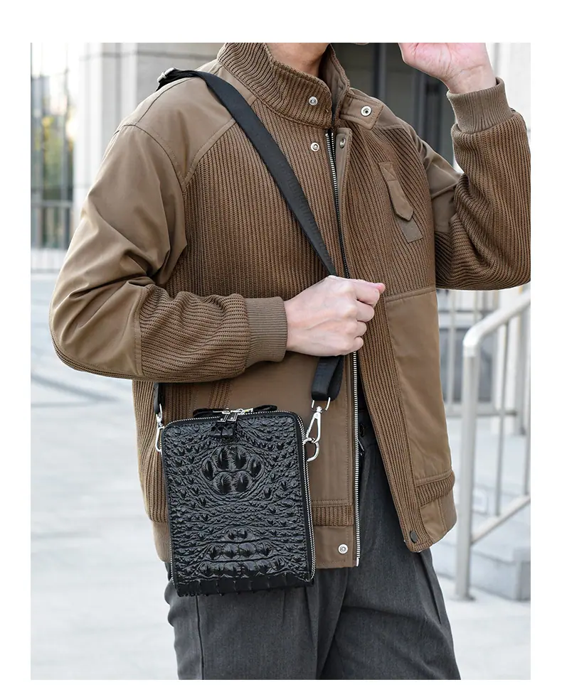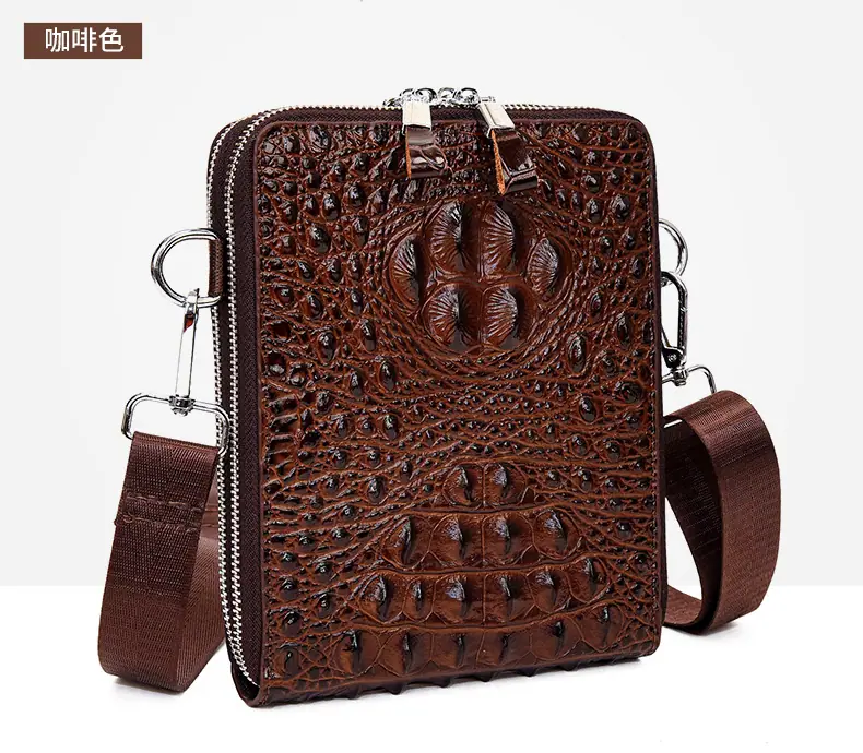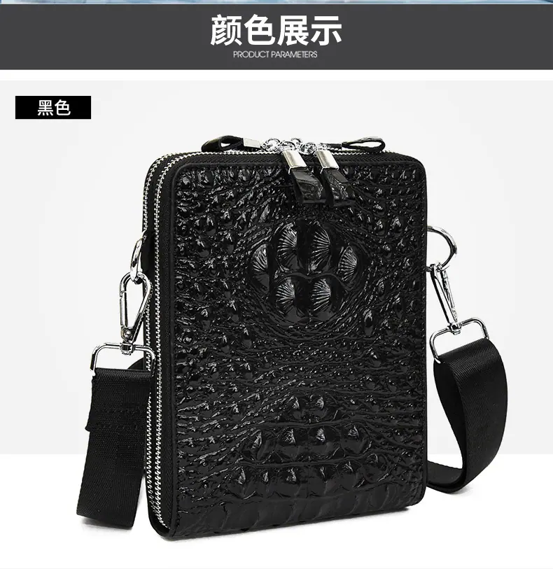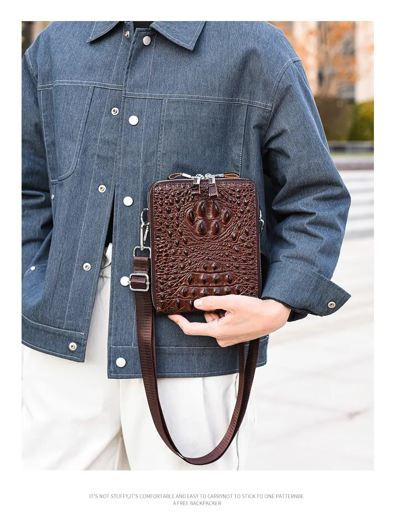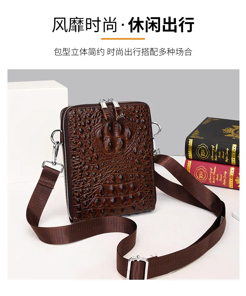 Bolso de Hombro para Hombre Business Casual Patrón Cocodrilo PU Bolso Cruzado Gran Capacidad Simple Bolso para Hombre Maletín Vertical