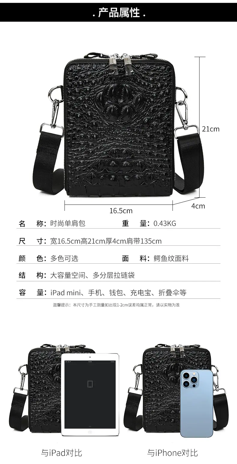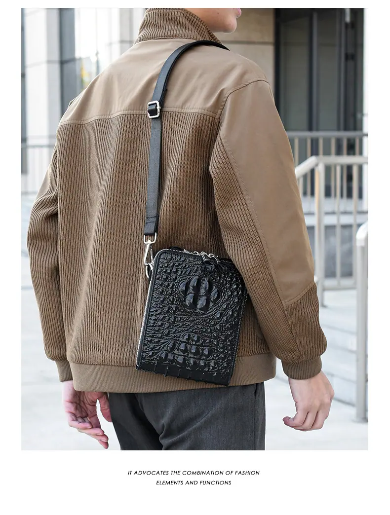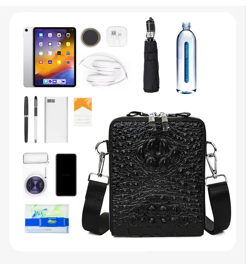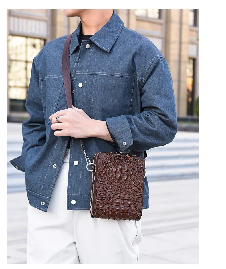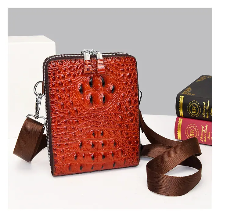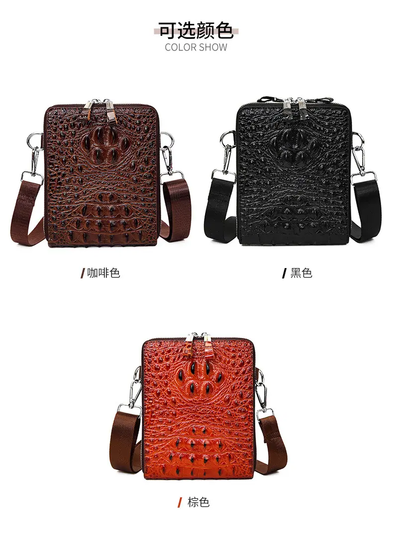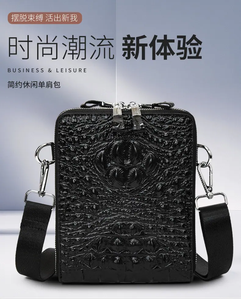 Bolso de Hombro para Hombre Business Casual Patrón Cocodrilo PU Bolso Cruzado Gran Capacidad Simple Bolso para Hombre Maletín Vertical