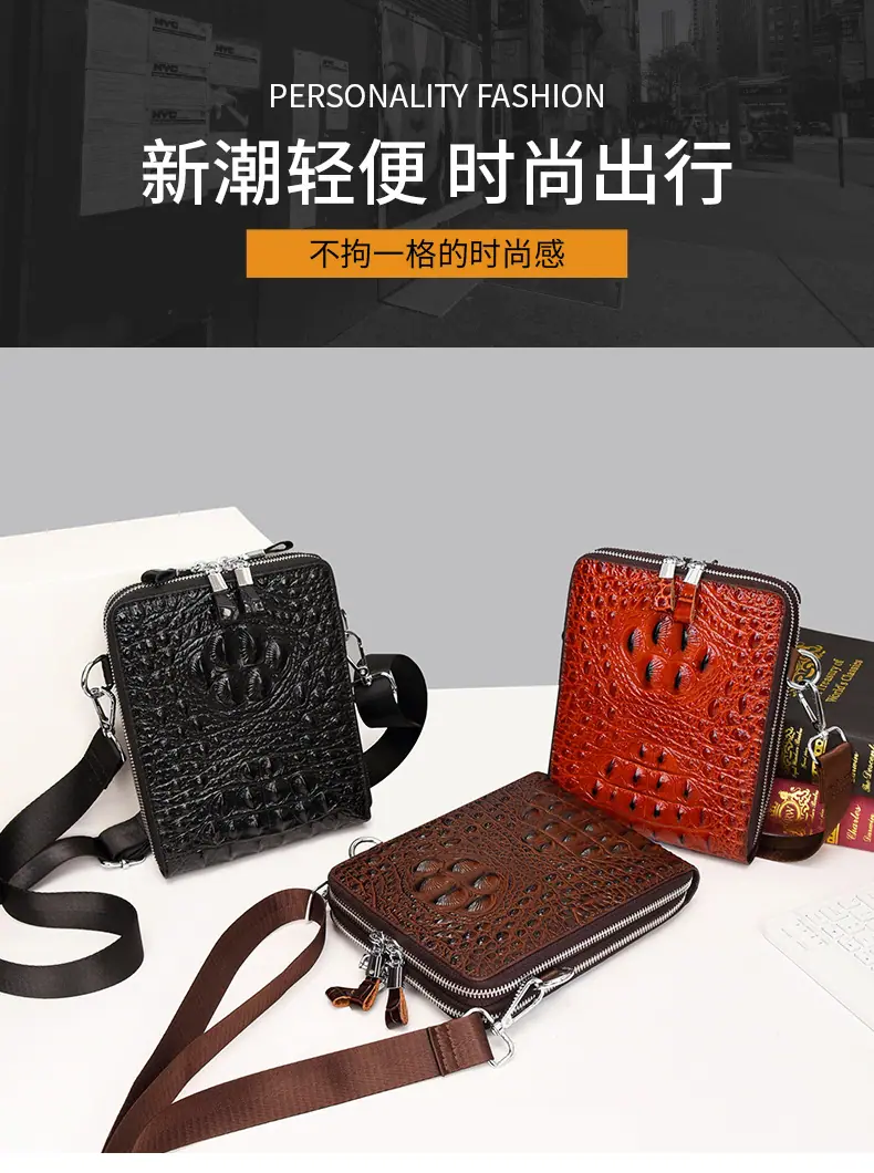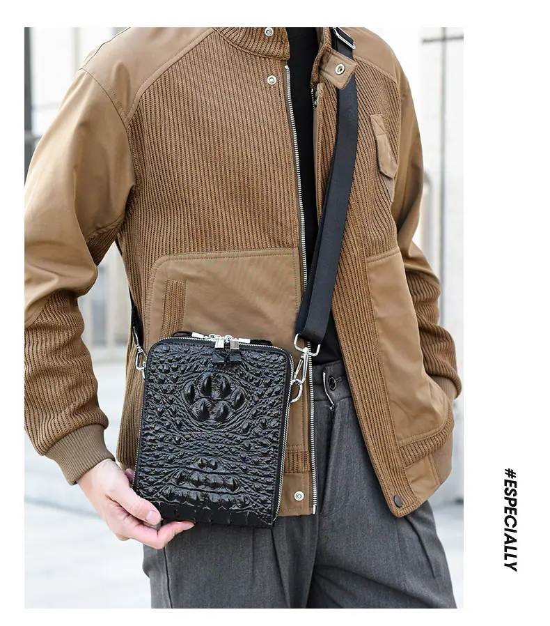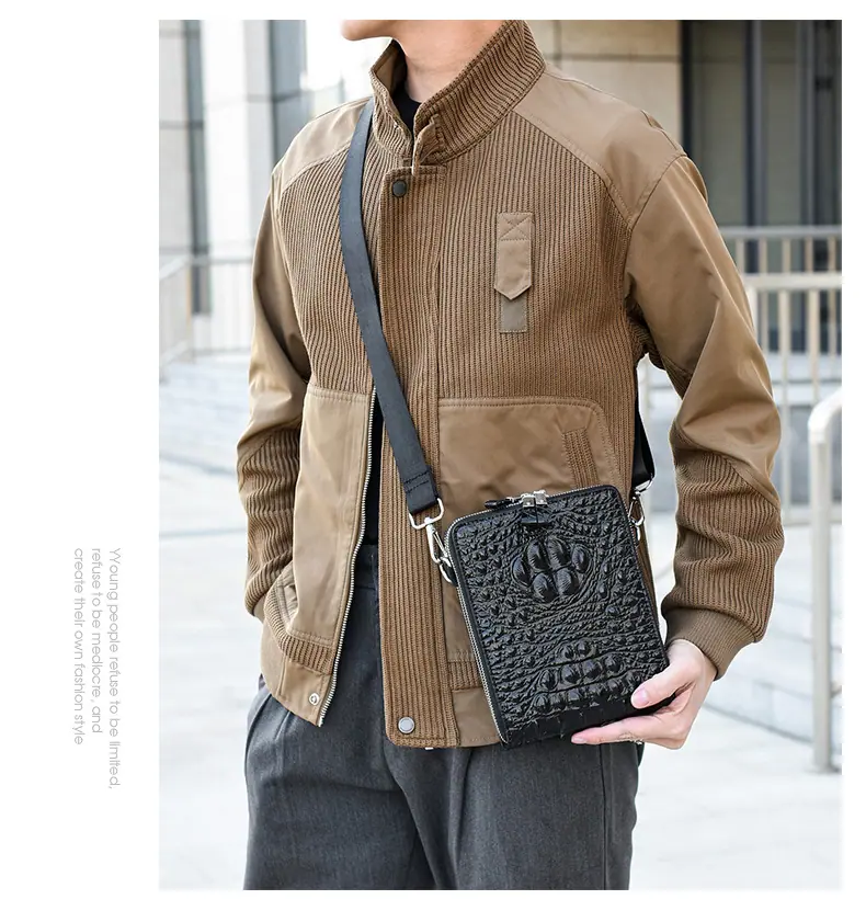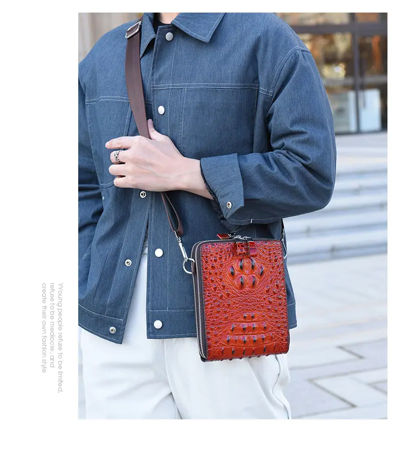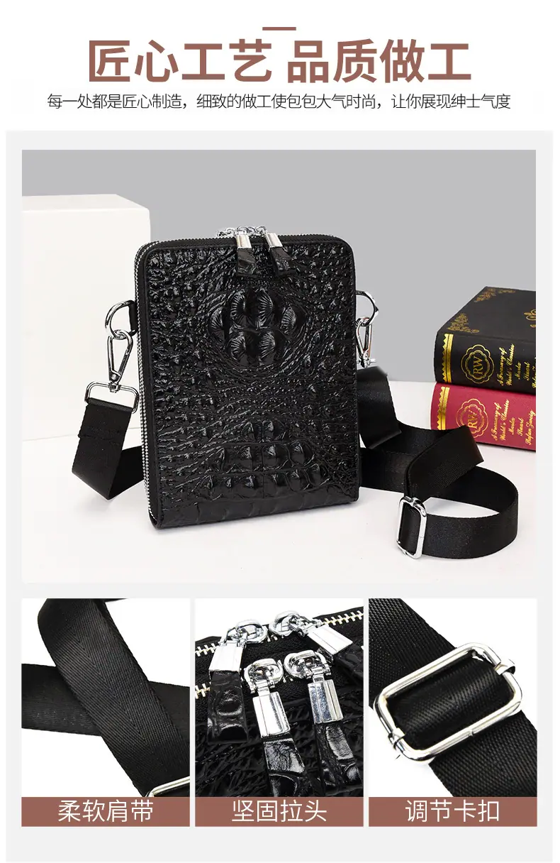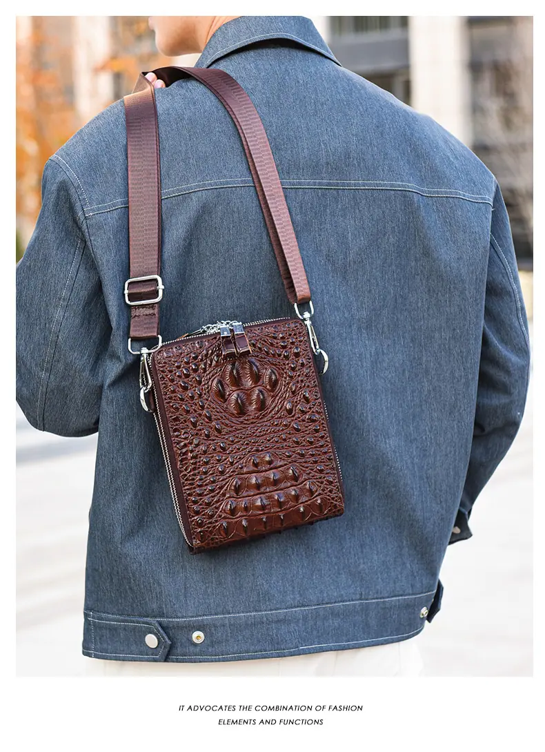 Bolso de Hombro para Hombre Business Casual Patrón Cocodrilo PU Bolso Cruzado Gran Capacidad Simple Bolso para Hombre Maletín Vertical