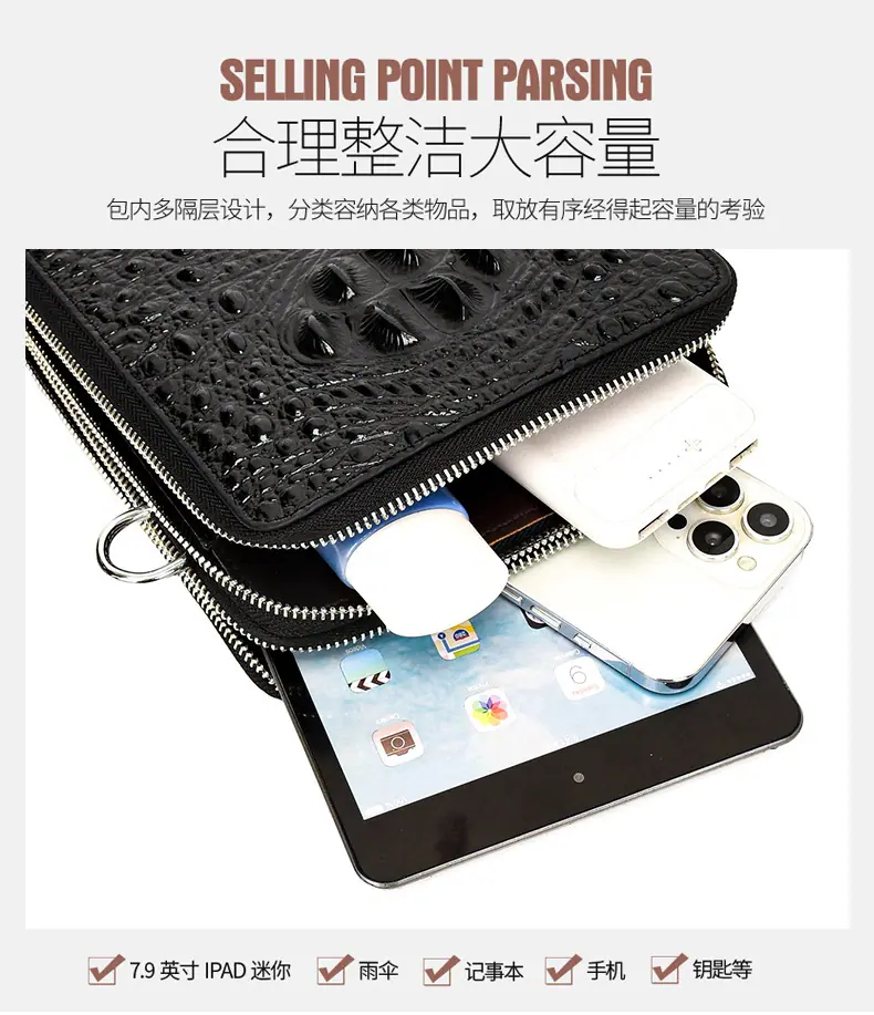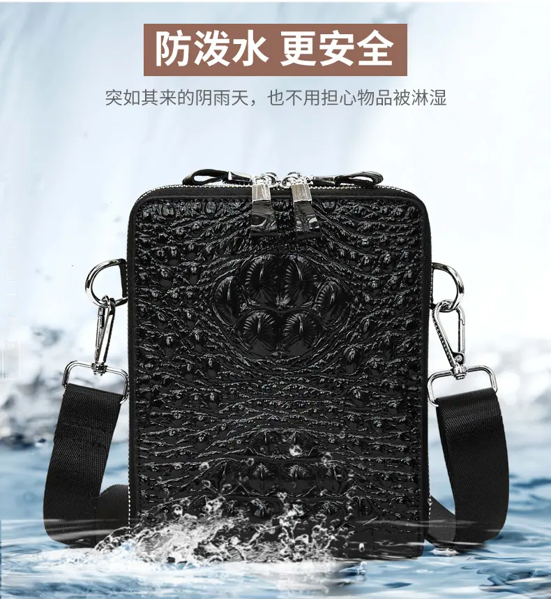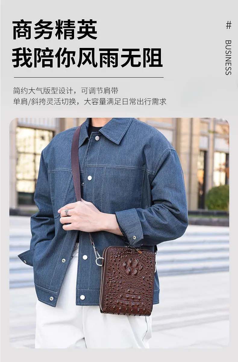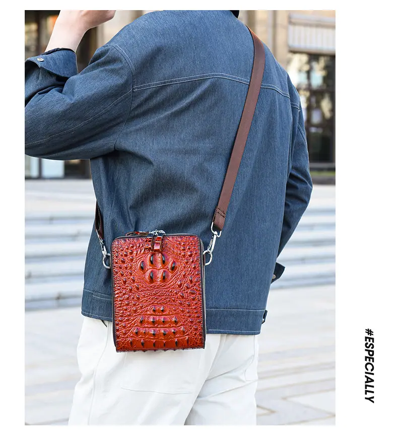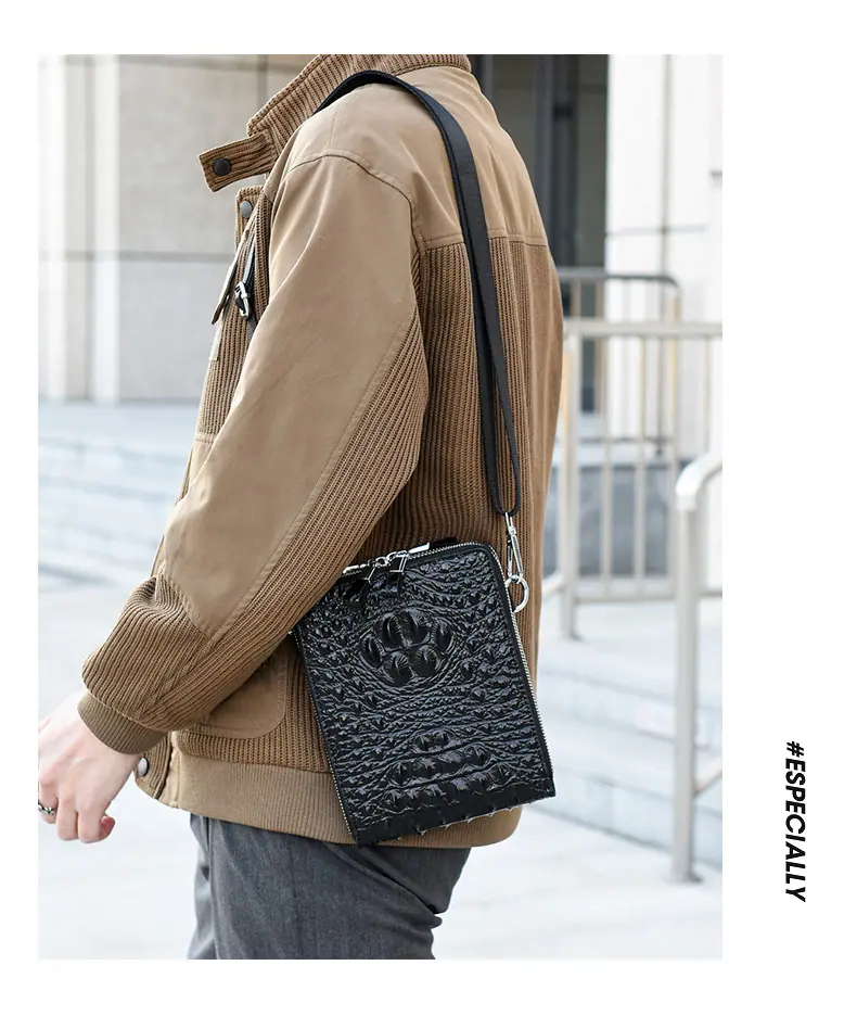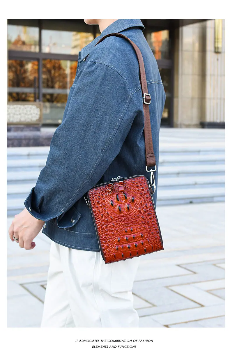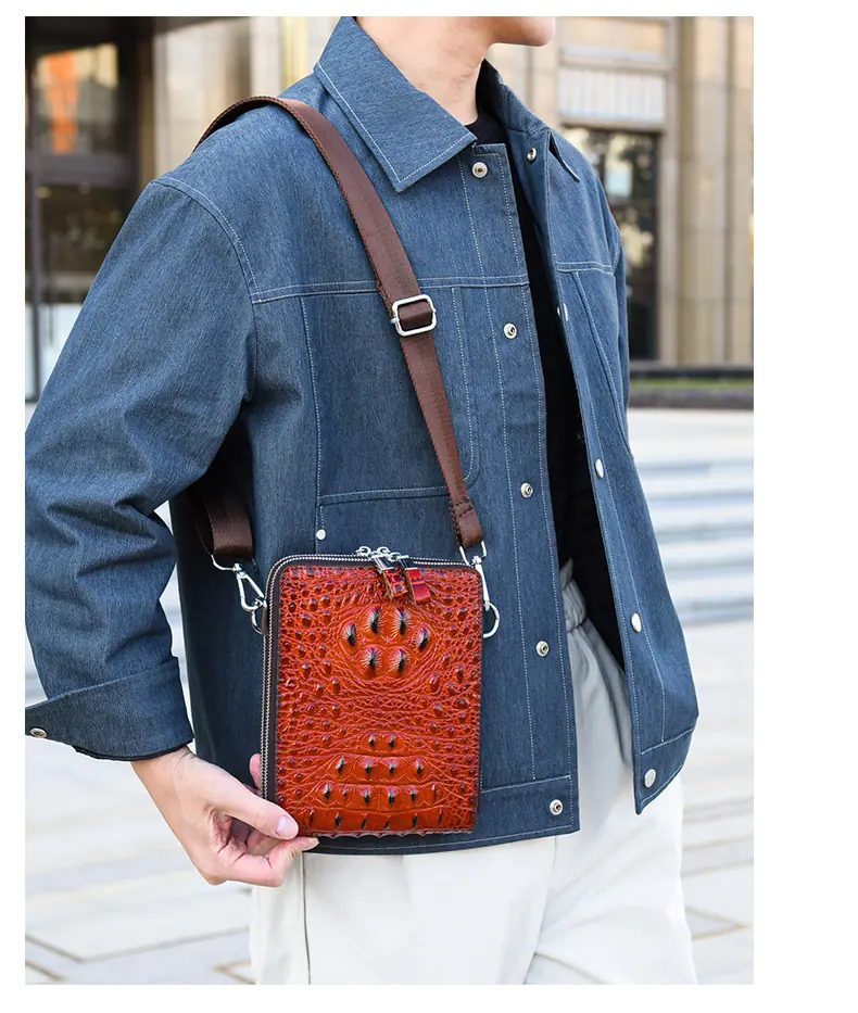 Bolso de Hombro para Hombre Business Casual Patrón Cocodrilo PU Bolso Cruzado Gran Capacidad Simple Bolso para Hombre Maletín Vertical