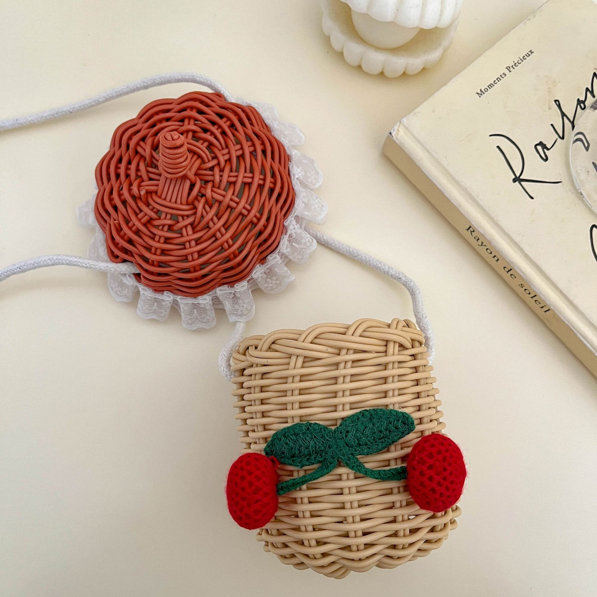 Bolso de Mano Mini de Paja de Avellana Lindo de Verano Nuevo para Niños, Mini Bolso Bandolera de Hombro para Bebé Niña, Verano Trendy