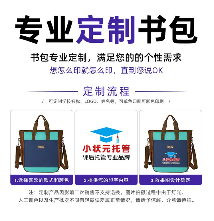 Mochila de primaria bolso personalizado logotipo impreso clase de entrenamiento tutoría bolsa bandolera tutoría patrón personalizado