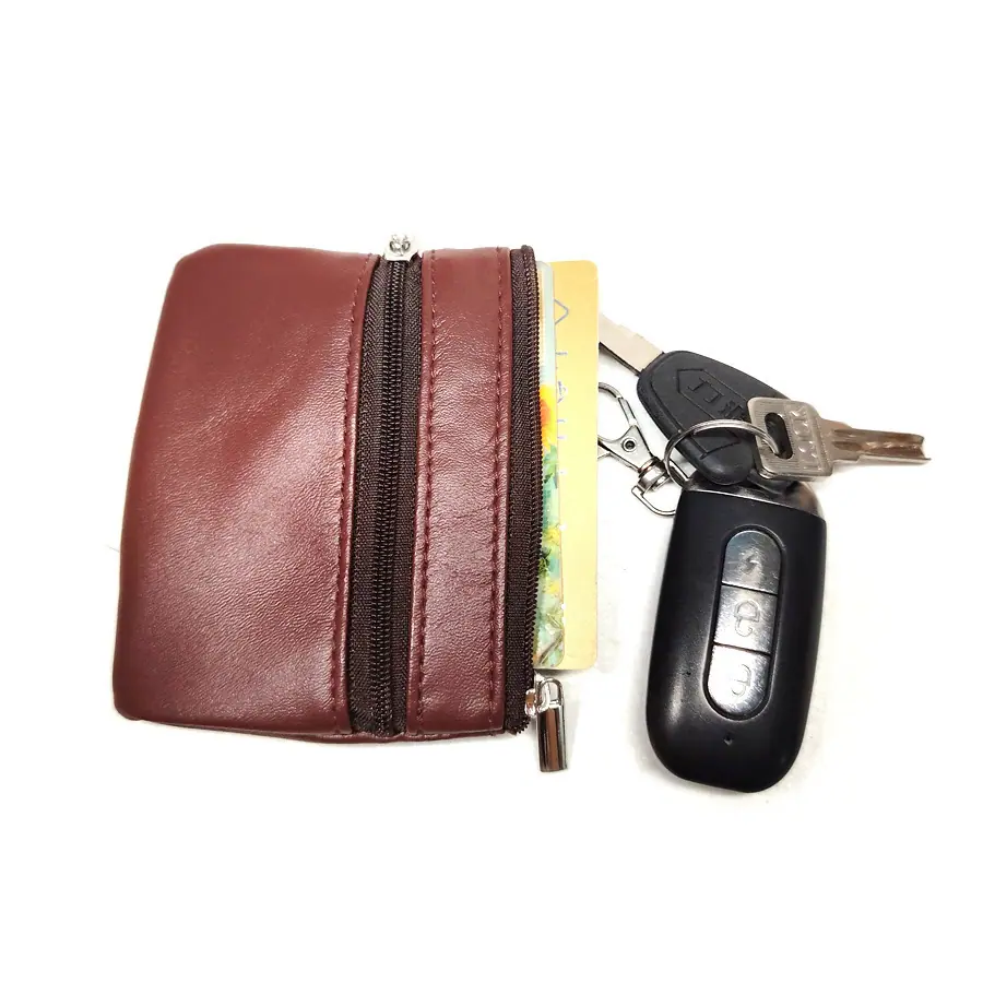 Venta al por mayor Vintage Europeo y Americano Cremallera Llave Moneda Bolso Clutch Corto Cuero Genuino Mini Monedero Multifuncional Pequeño Tarjetero