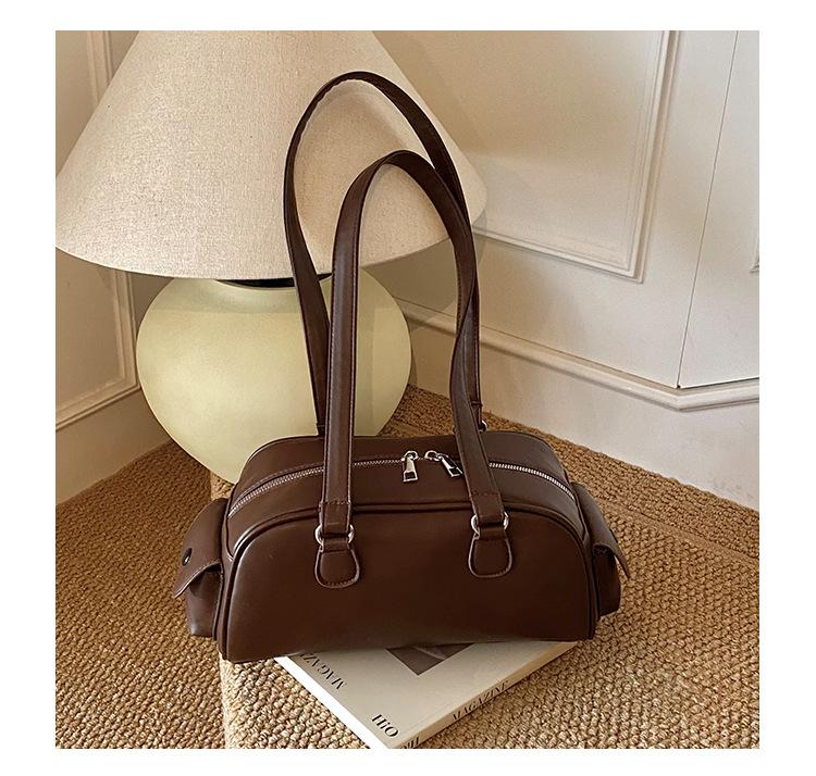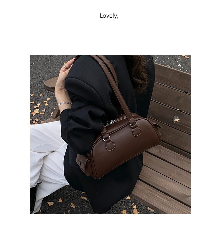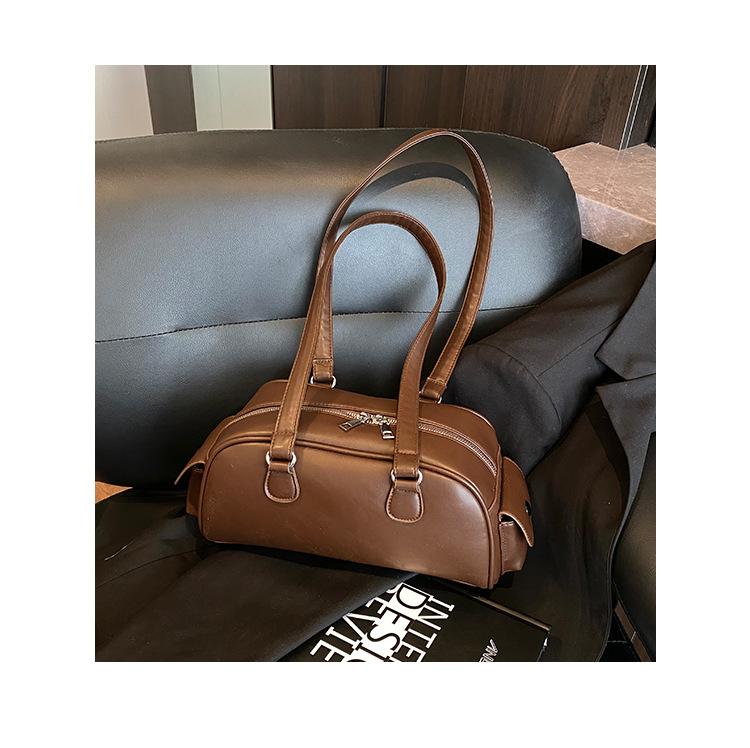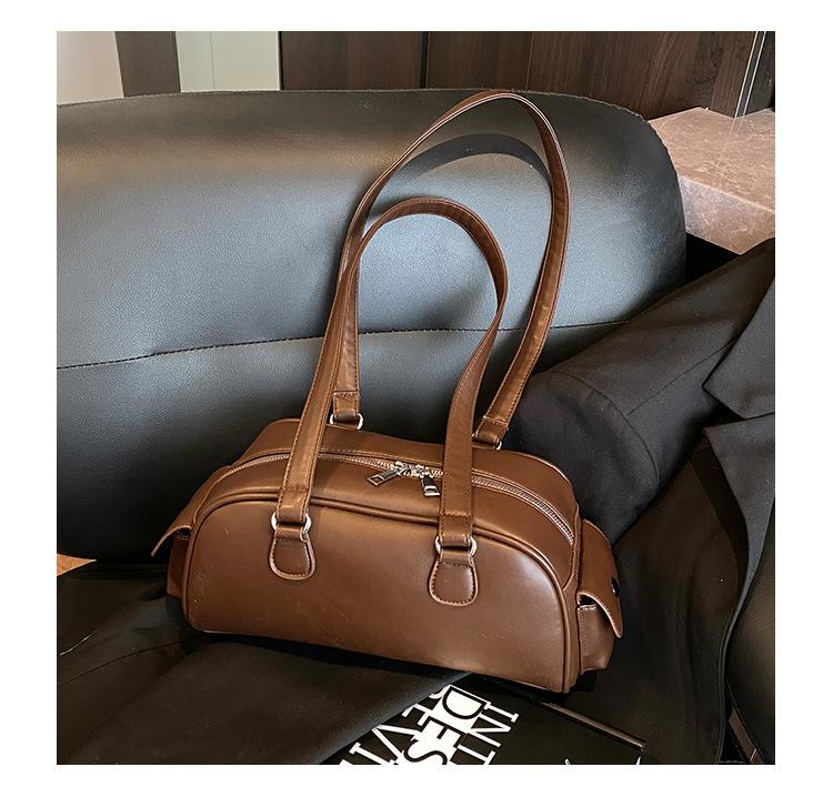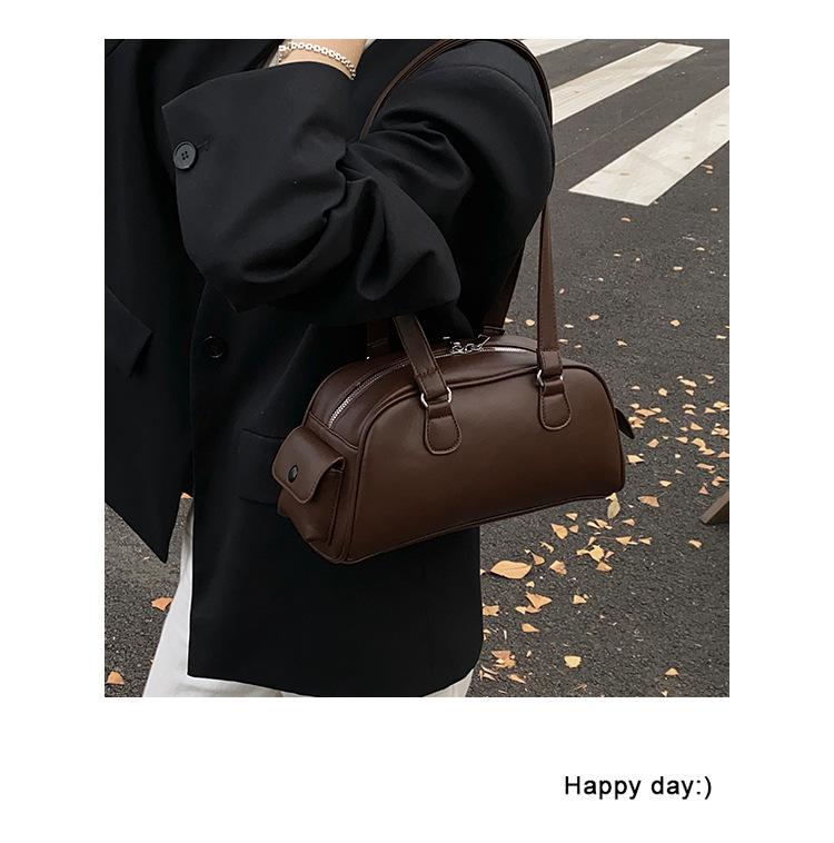 Bolso Bowling con Textura Retro Otoñal Bolso de Mano para Mujer 2025 Nuevo Simple de Un Hombro Bolso Almohada Versátil para el Trabajo