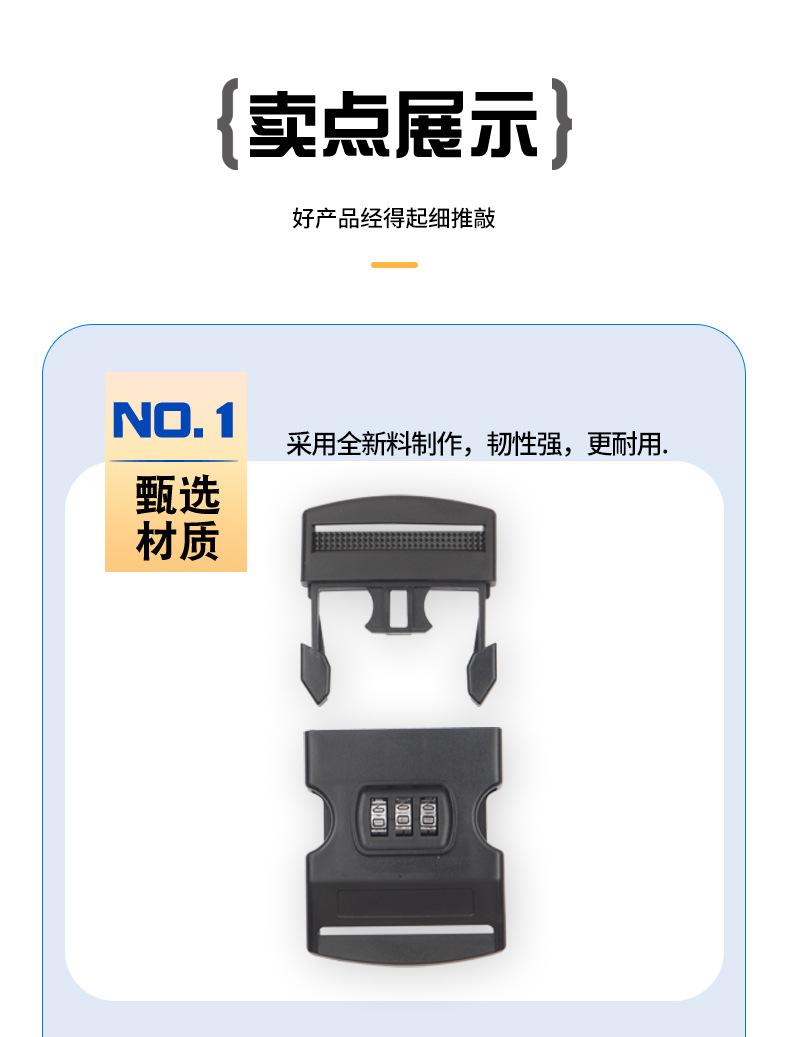Hebilla con Candado de Combinación Contraseña de Tres Dígitos Hebilla de Plástico Candado para Maleta Candado de Seguridad con Contraseña Correa de Viaje con Hebilla 50MM