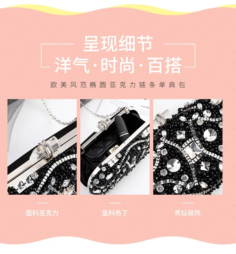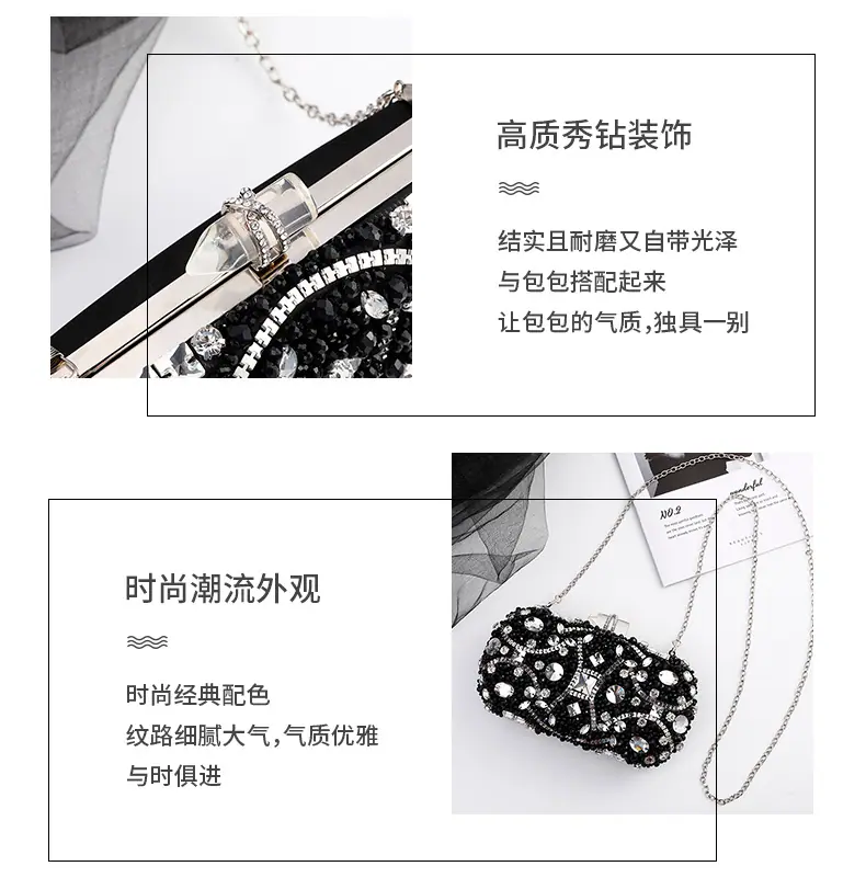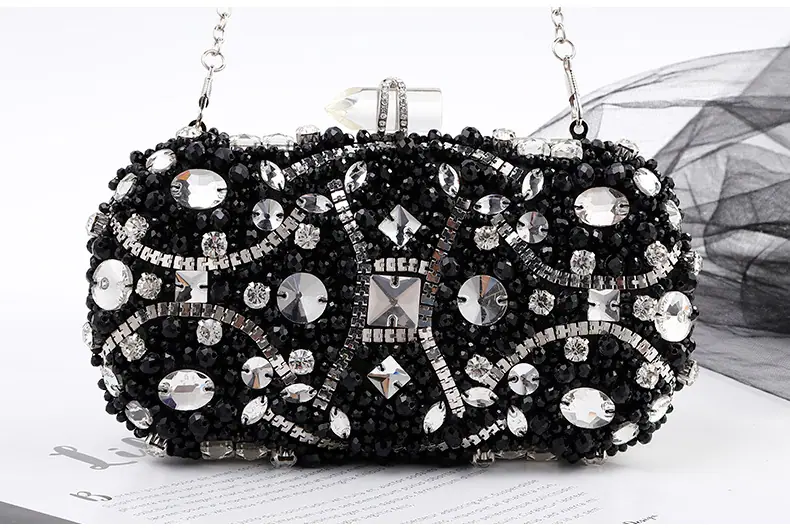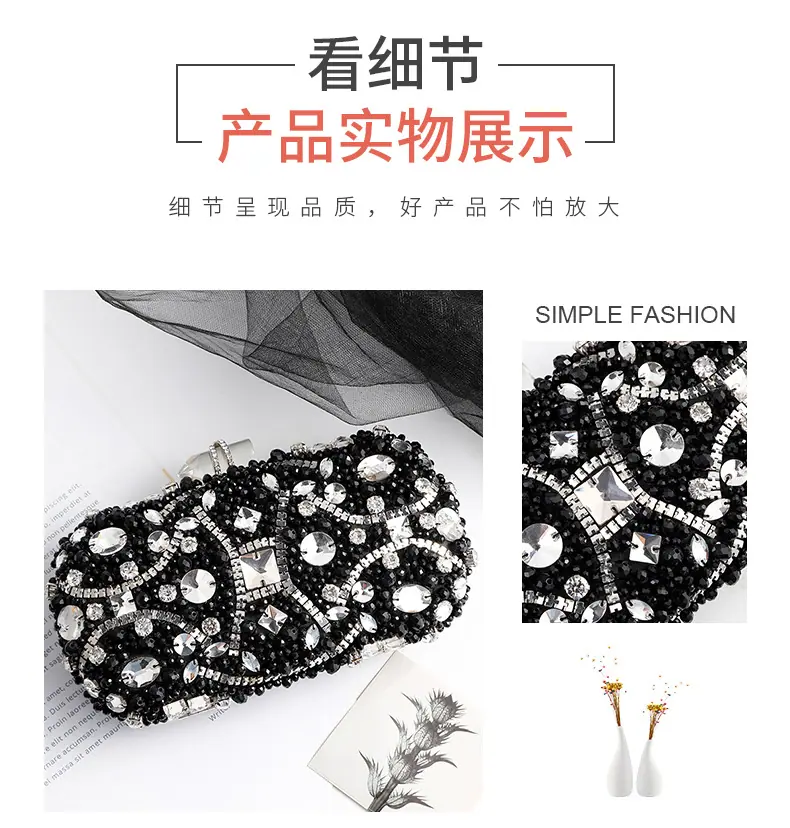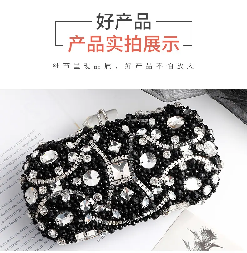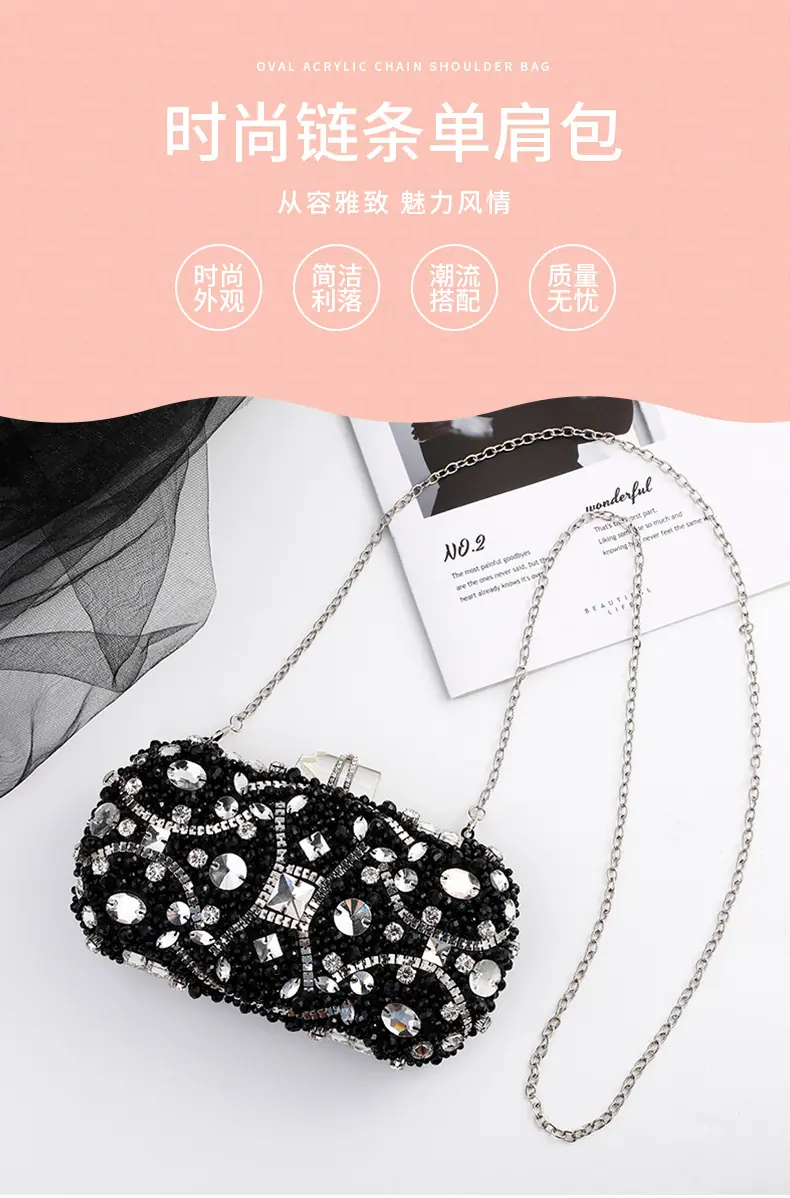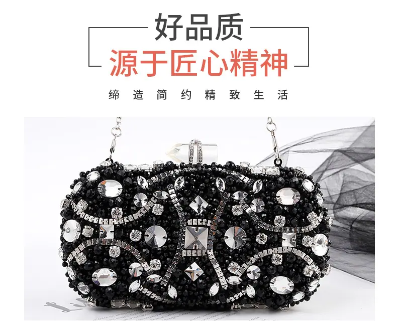 Bolso de Banquete con Diamantes Incrustados de Temperamento Europeo y Americano Hecho a Mano con Cuentas Estilo Fiesta Celebridad Combinable Bolso de Hombro Bolso para Vestido Cheongsam