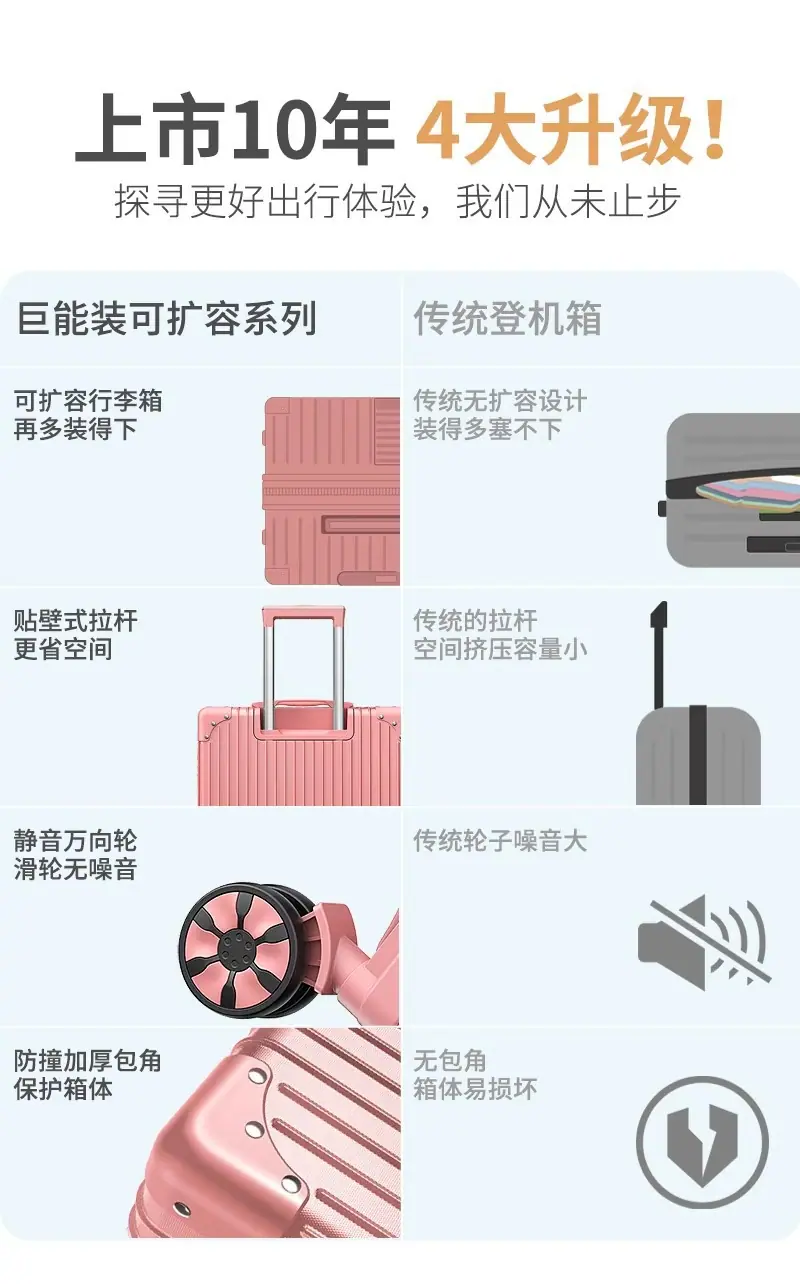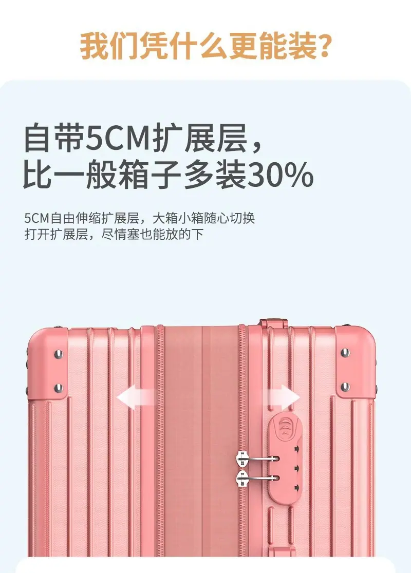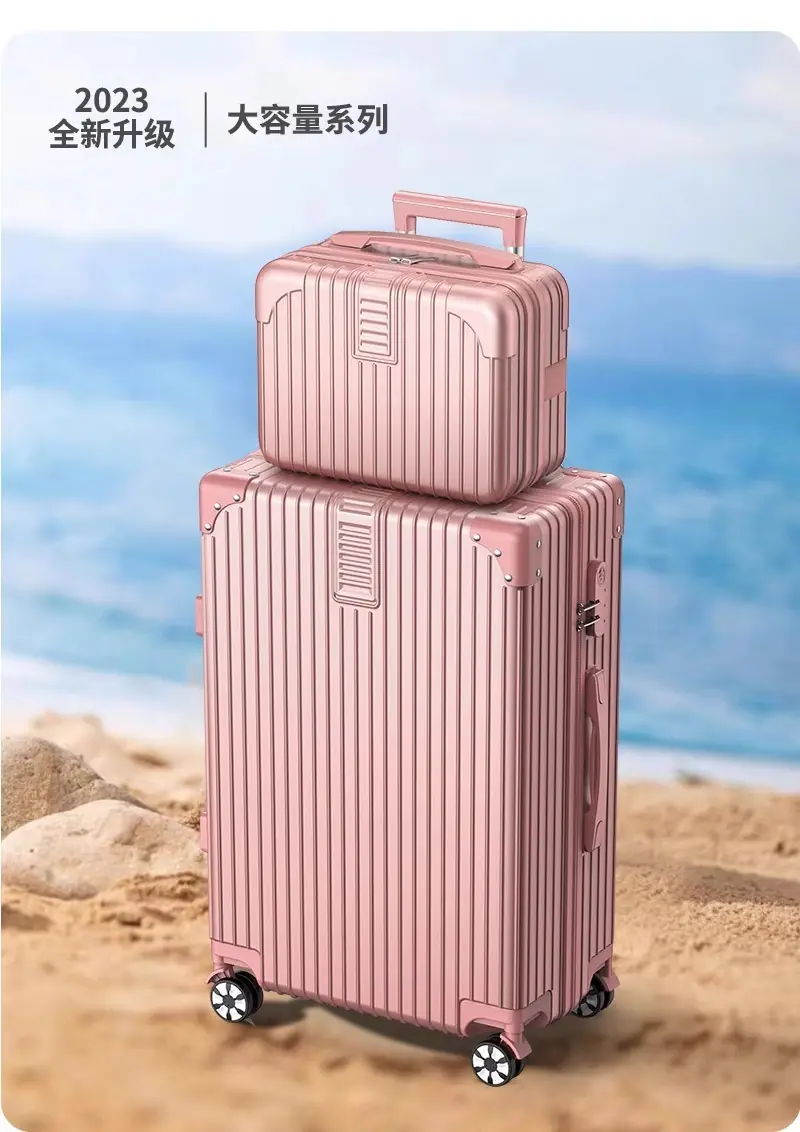 Maleta con Marco de Aluminio para Mujer de Gran Capacidad de 24 pulgadas Maleta de Viaje con Carro para Hombre Rueda Universal Silenciosa Cerradura de Combinación Maleta de Cuero Nuevo 20