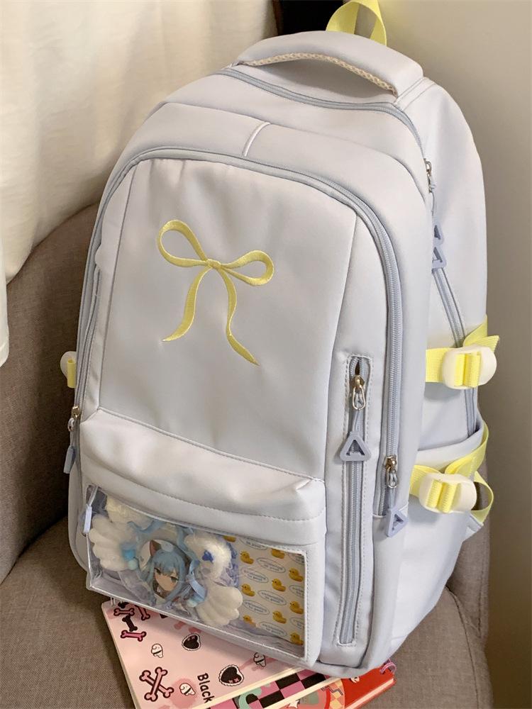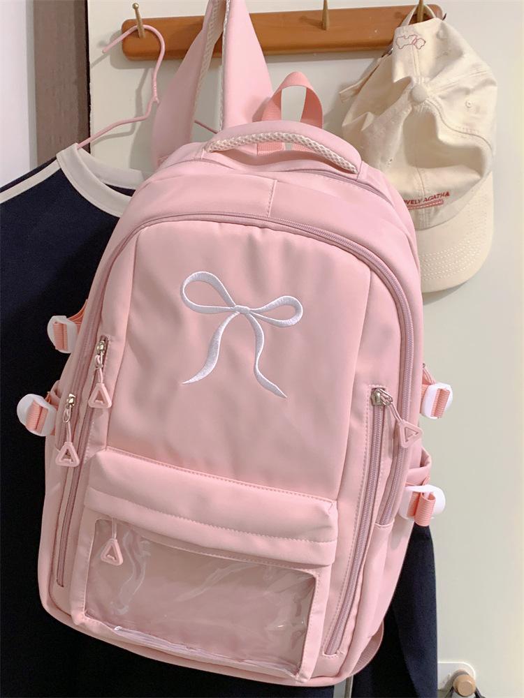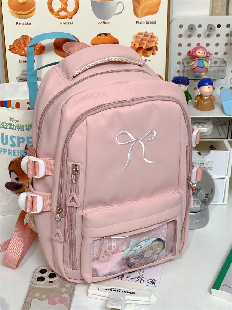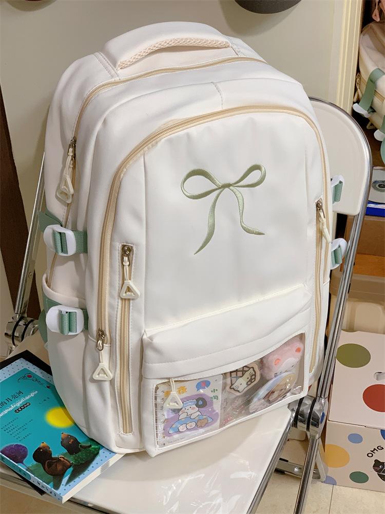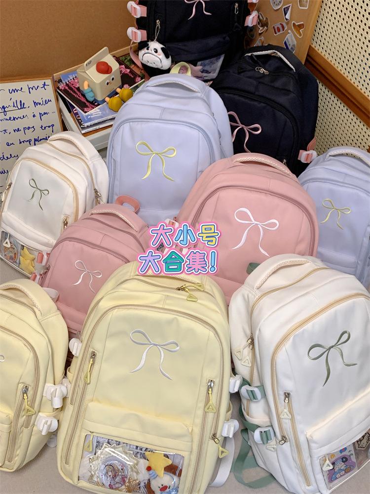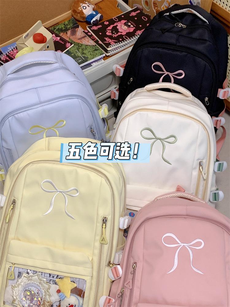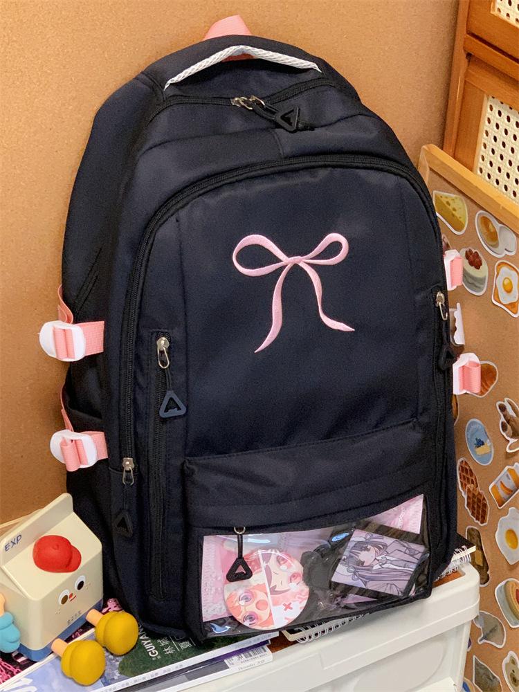Mochila de estilo ins de alto valor para niña japonesa versátil de gran capacidad para estudiante de secundaria bordada con lazo para mujer
