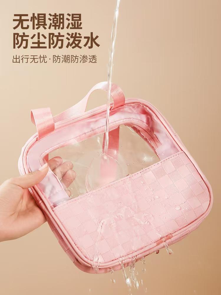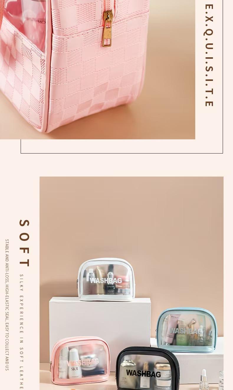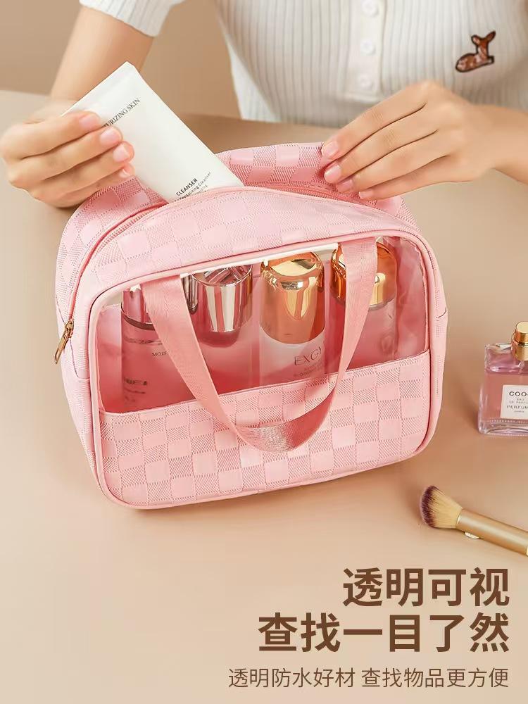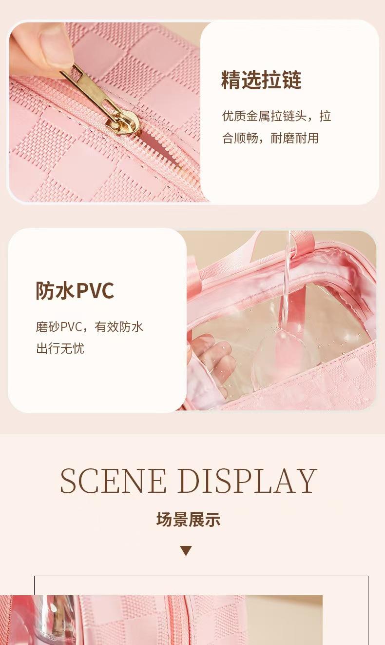 Set de Tres Piezas de Bolsa de Cosméticos Transparente de Alto Valor Gran Capacidad Bolsa de Aseo de Viaje Bolsa Organizadora de Cosméticos a Cuadros PVC