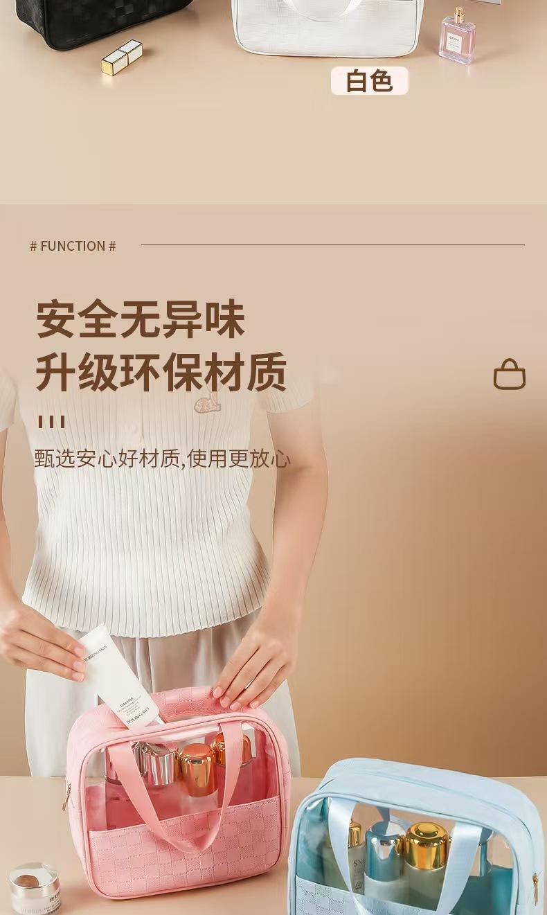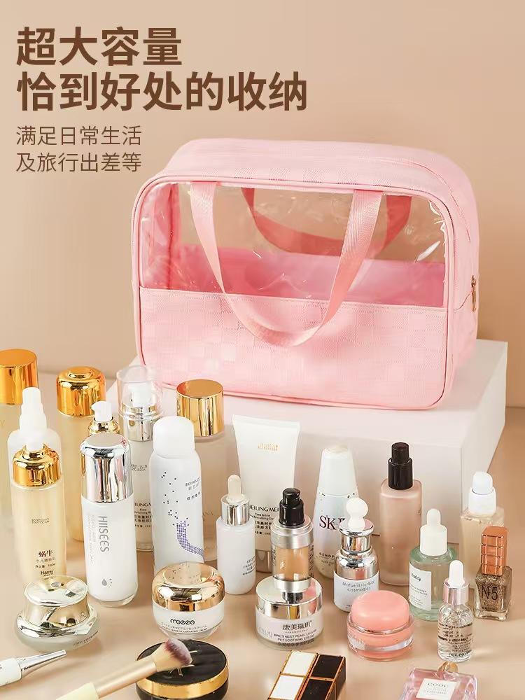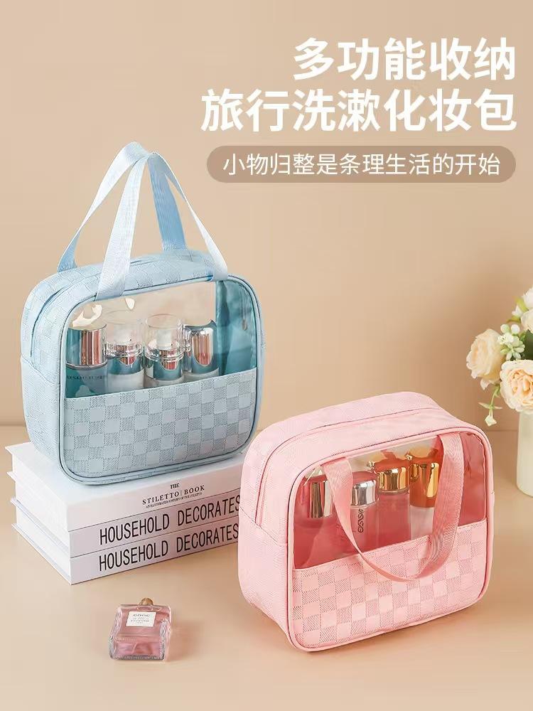 Compra Set de Tres Piezas de Bolsa de Cosméticos Transparente de Alto Valor Gran Capacidad Bolsa de Aseo de Viaje Bolsa Organizadora de Cosméticos a Cuadros PVC al por mayor en Joom.pro